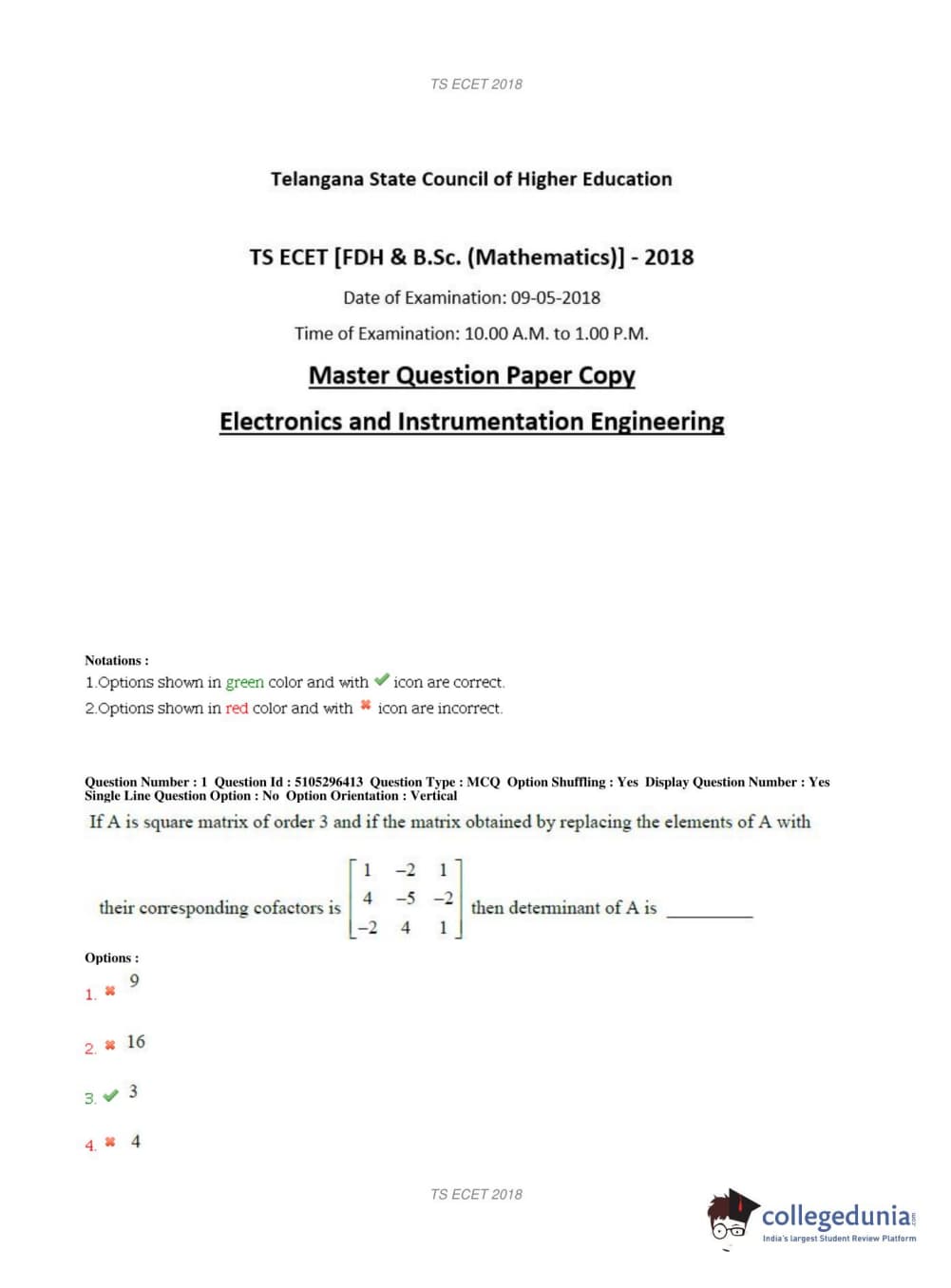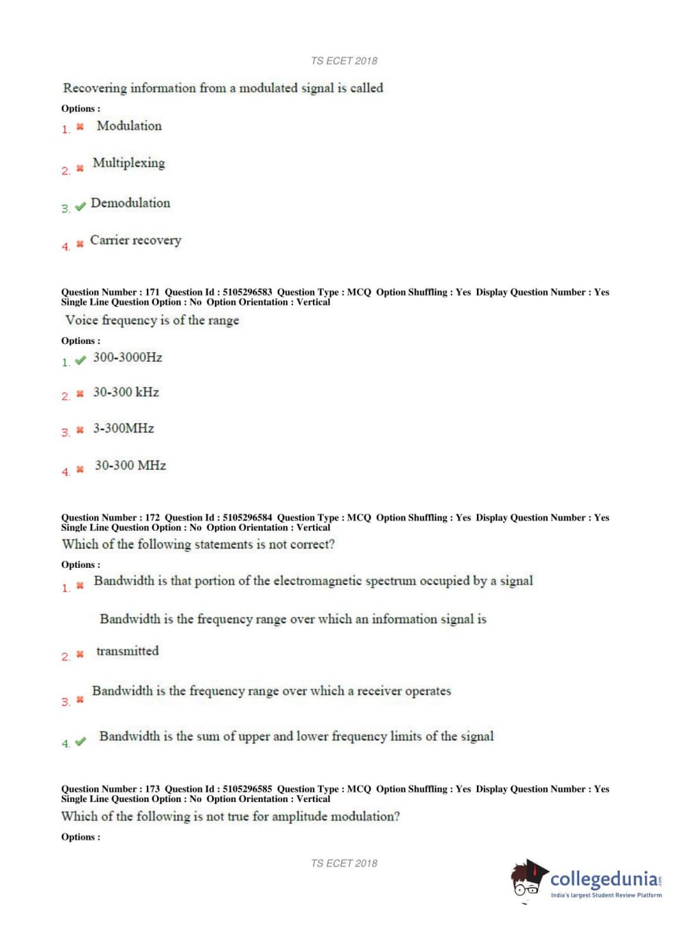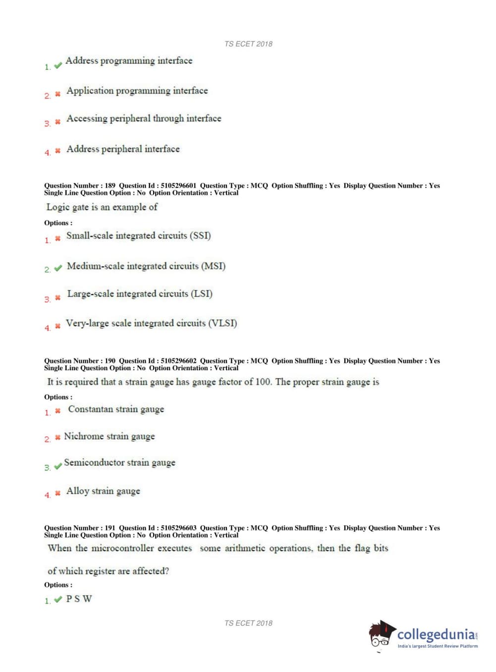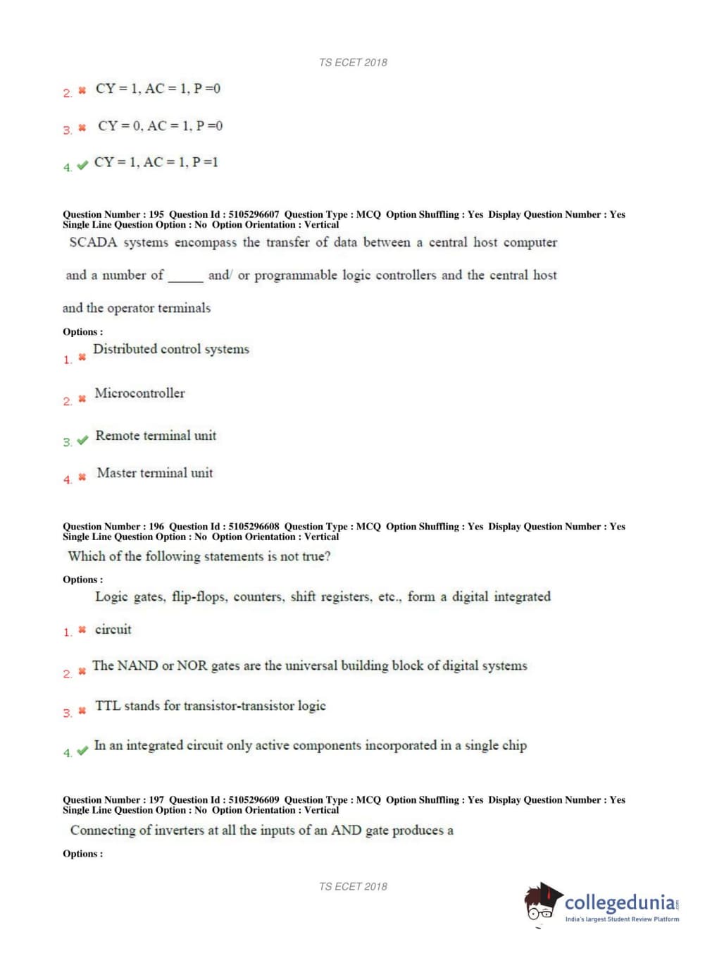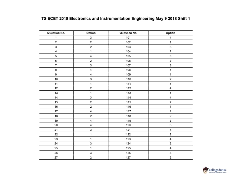 | TS ECET 2018 ELECTRONICS & COMMUNICATION ENGINEERING Question Paper PDF | TS ECET 2018 ELECTRONICS & COMMUNICATION ENGINEERING Answer Key PDF |