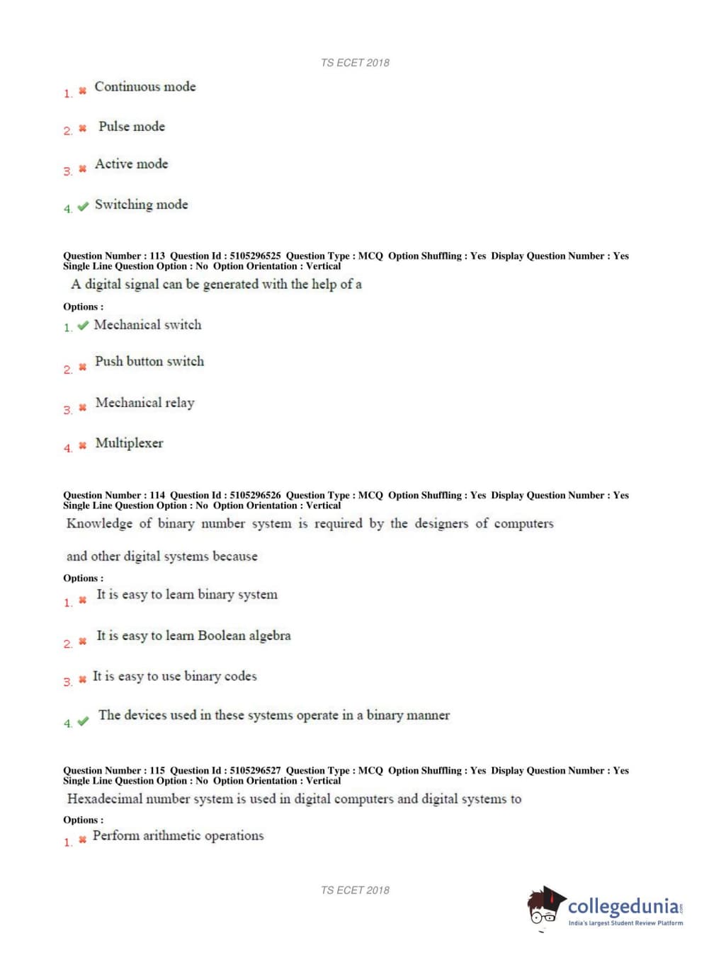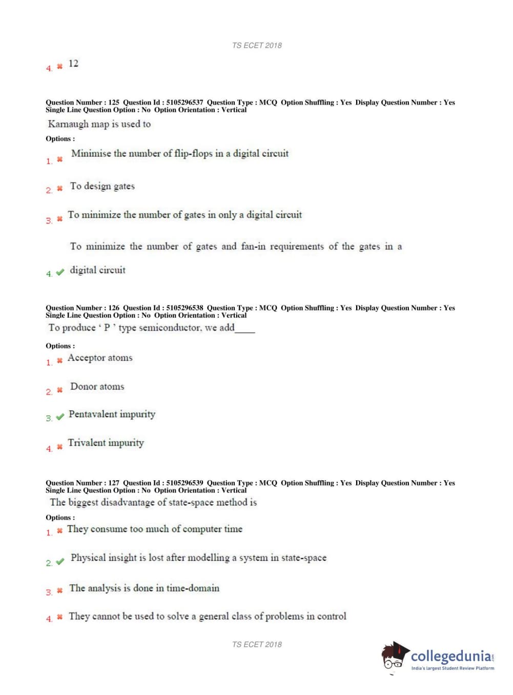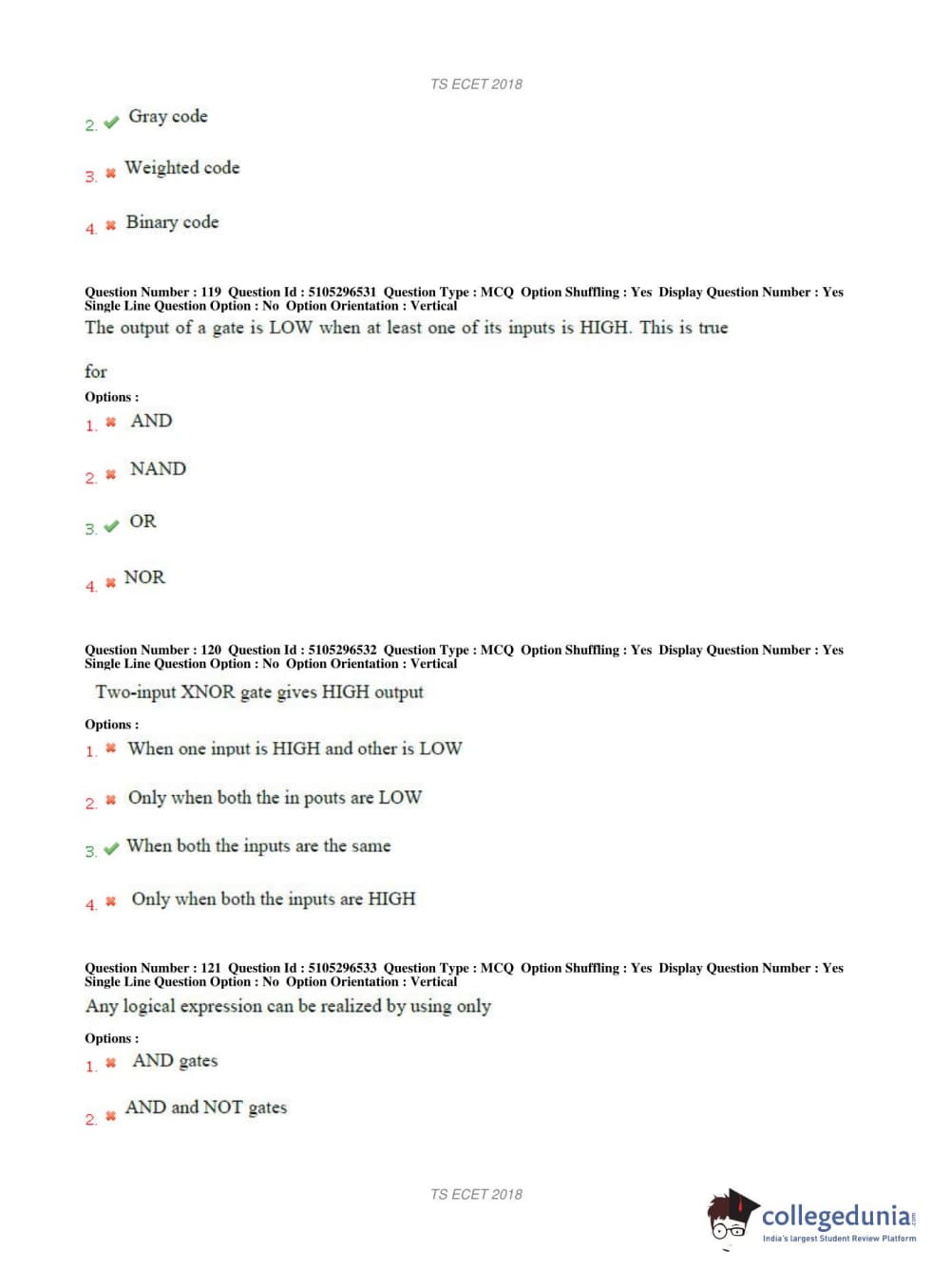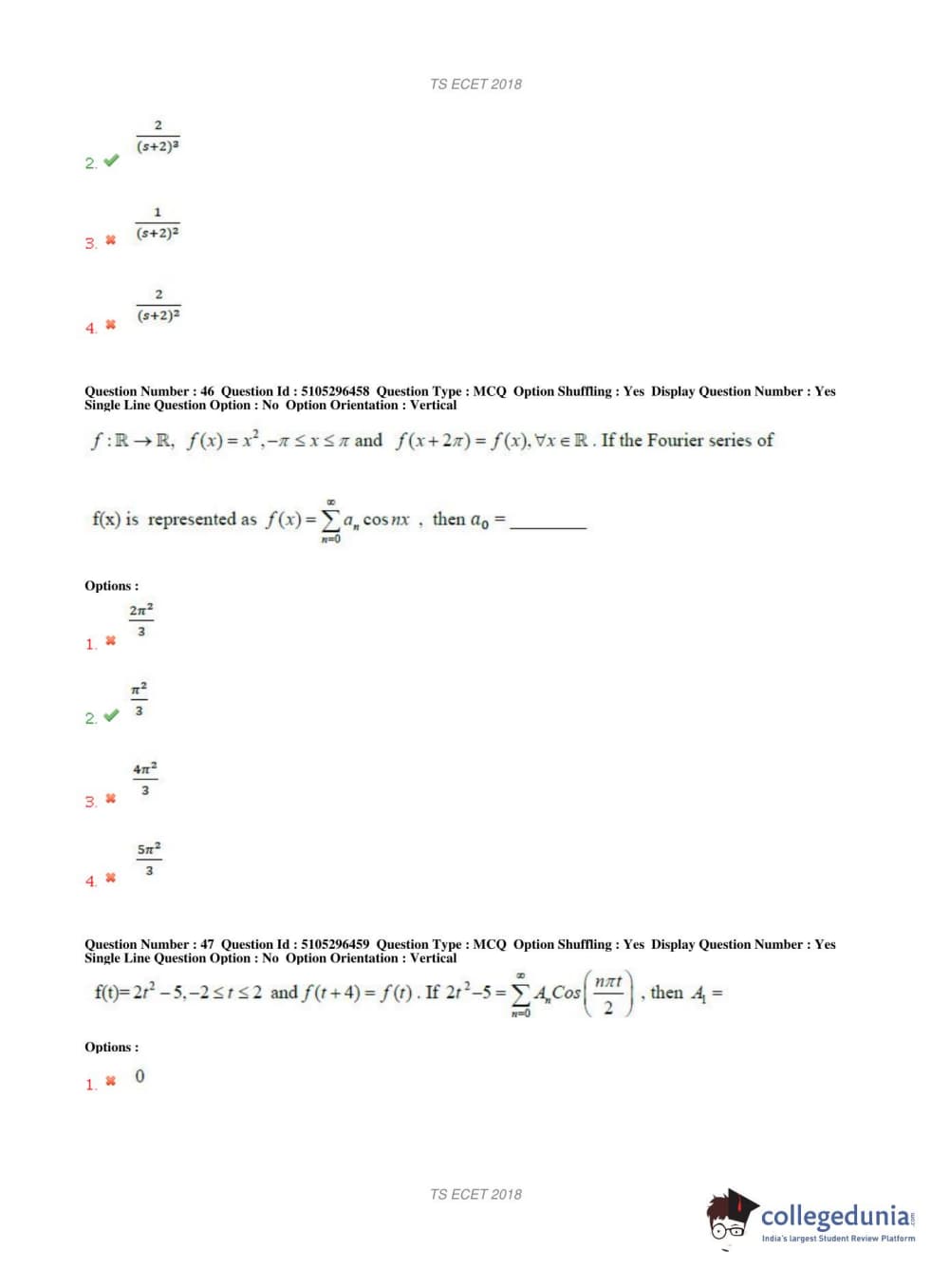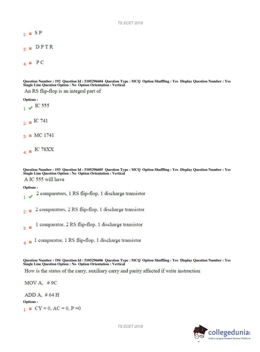 | TS ECET 2018 ELECTRONICS & COMMUNICATION ENGINEERING Question Paper PDF | TS ECET 2018 ELECTRONICS & COMMUNICATION ENGINEERING Answer Key PDF |