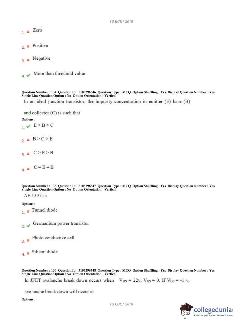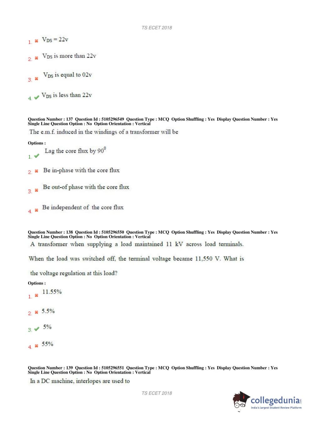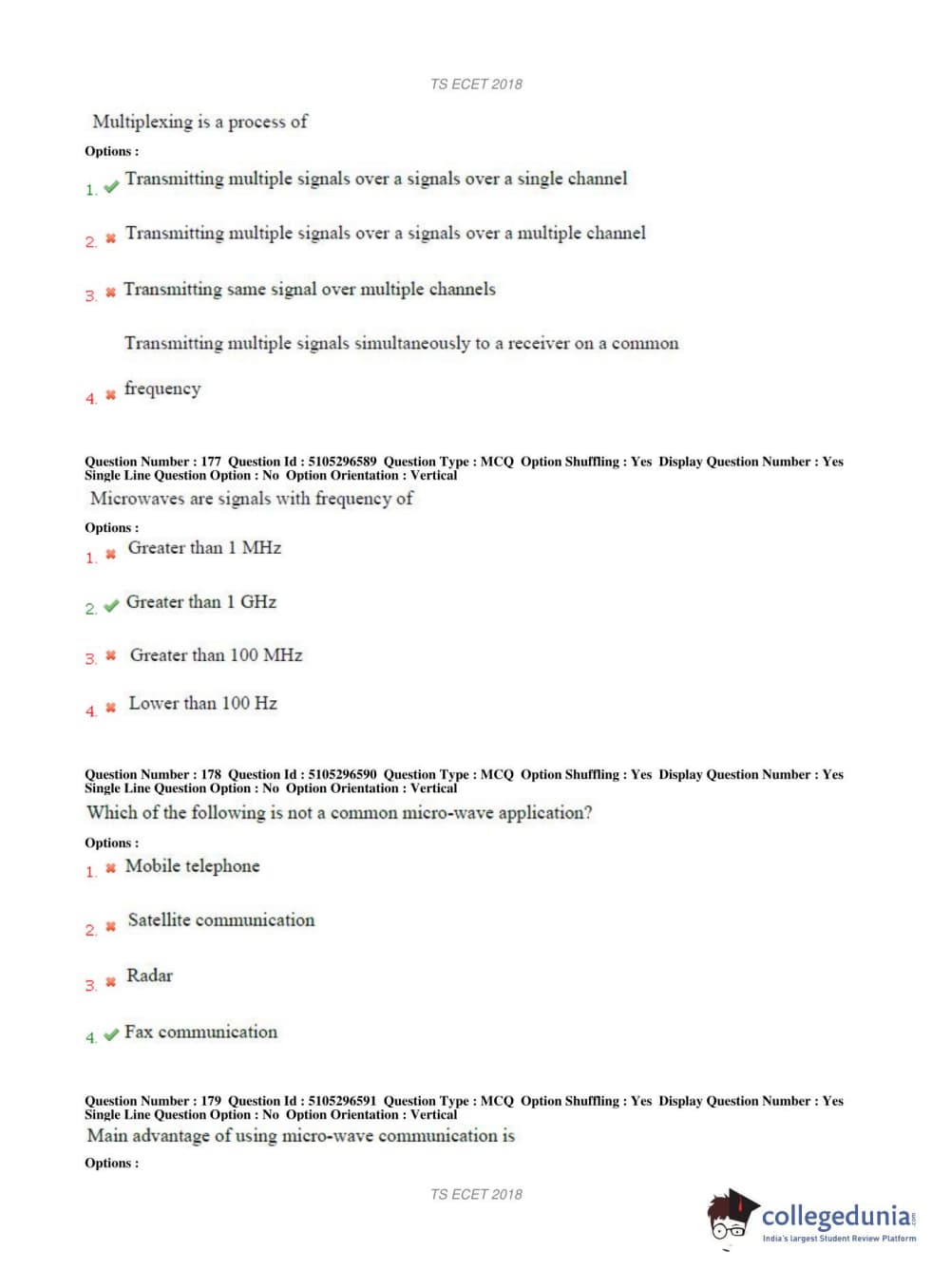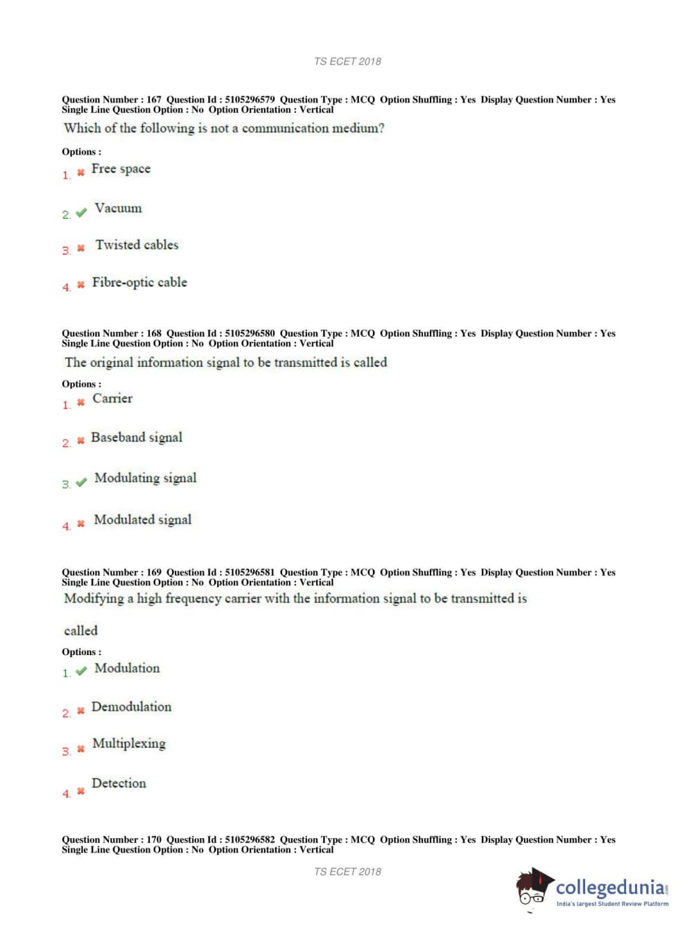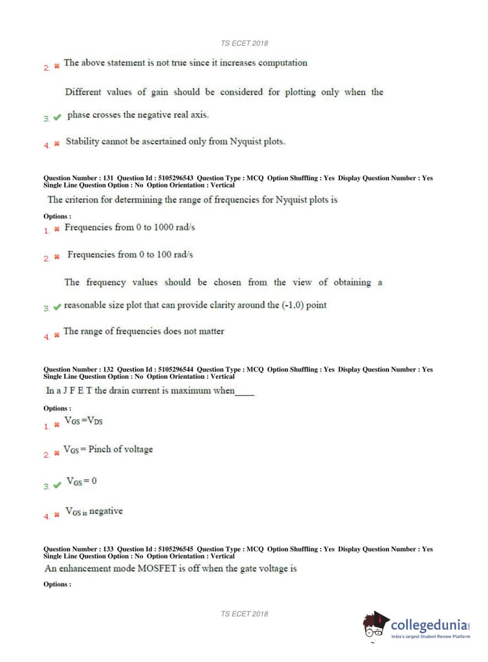 TS ECET 2018 ELECTRONICS & COMMUNICATION ENGINEERING Question Paper with Answer Key PDFs Shift 1