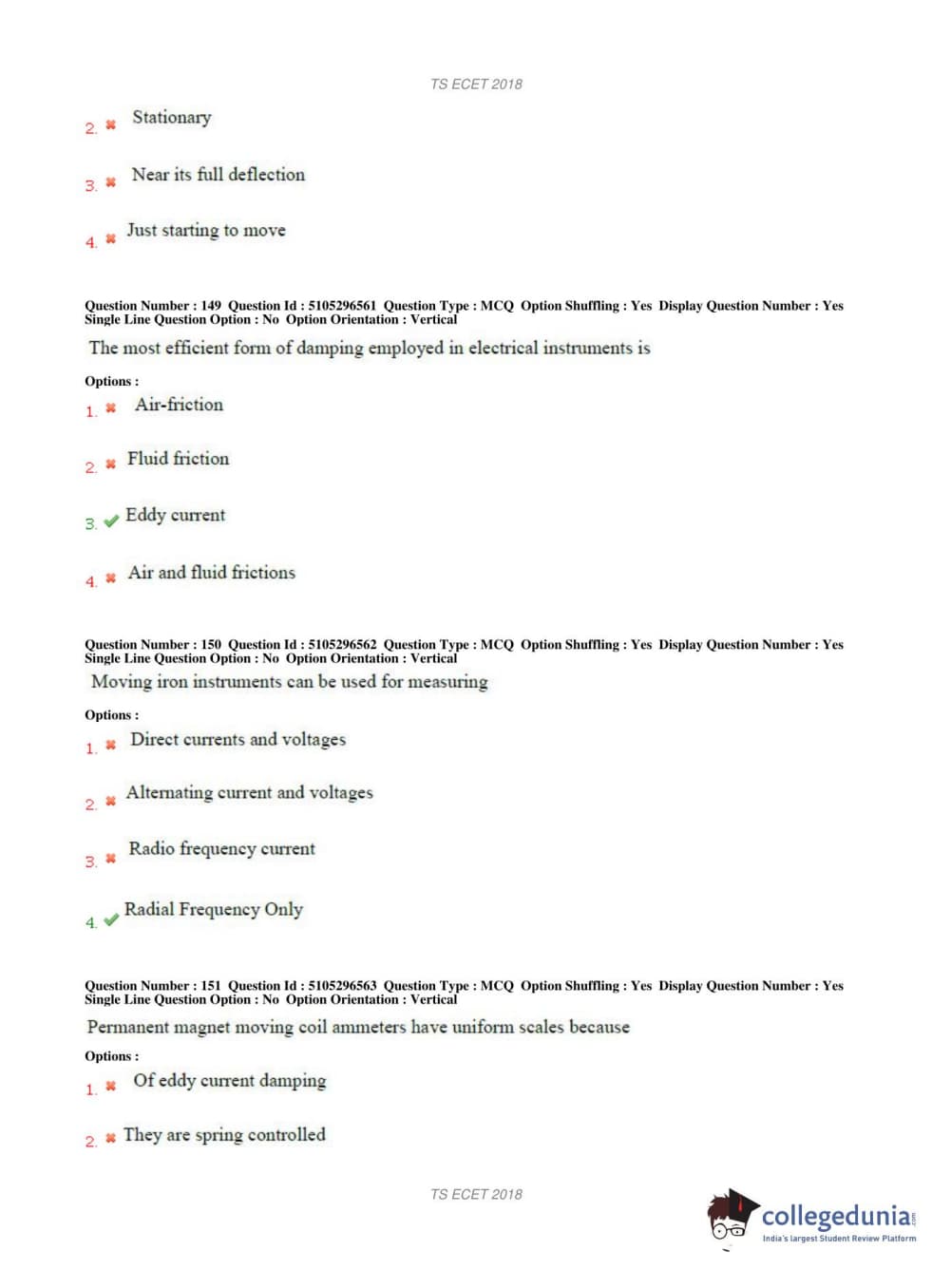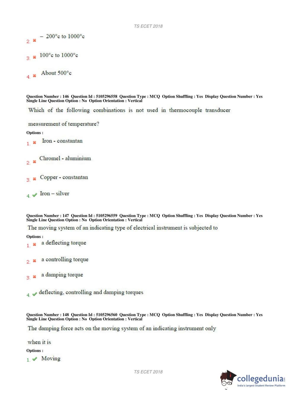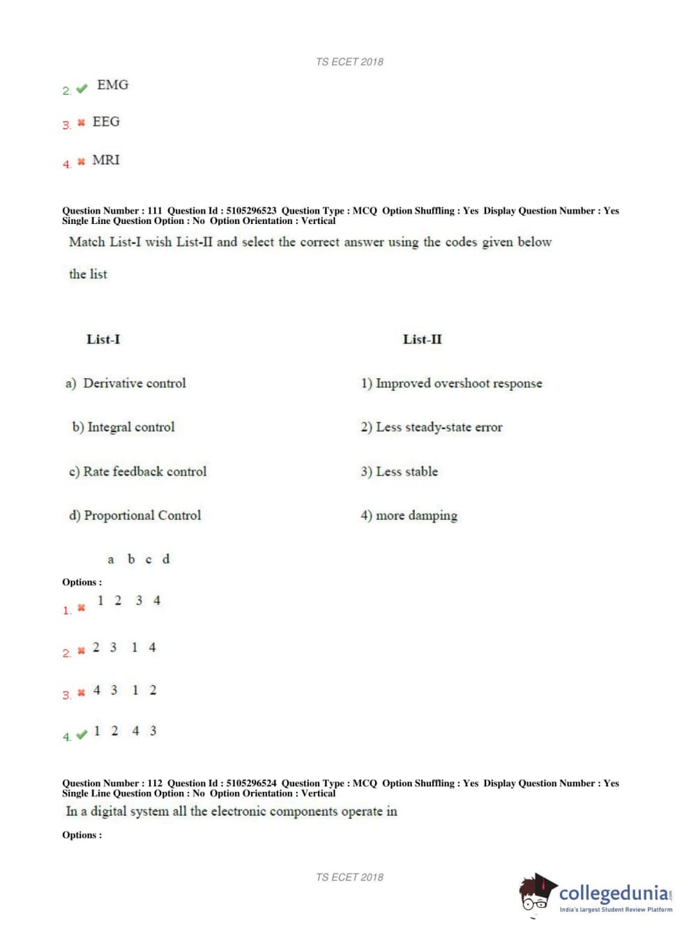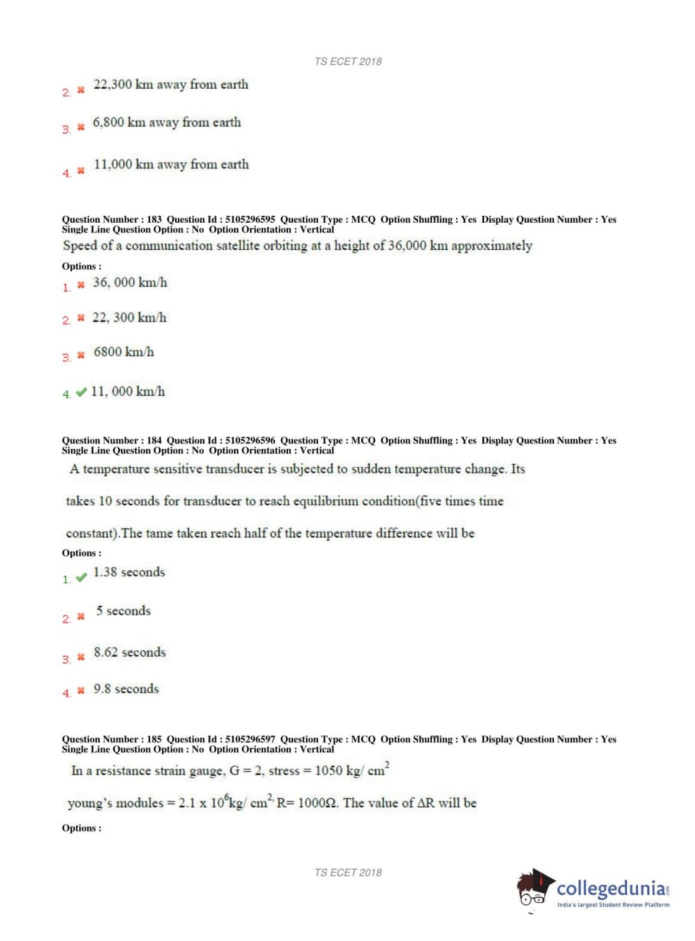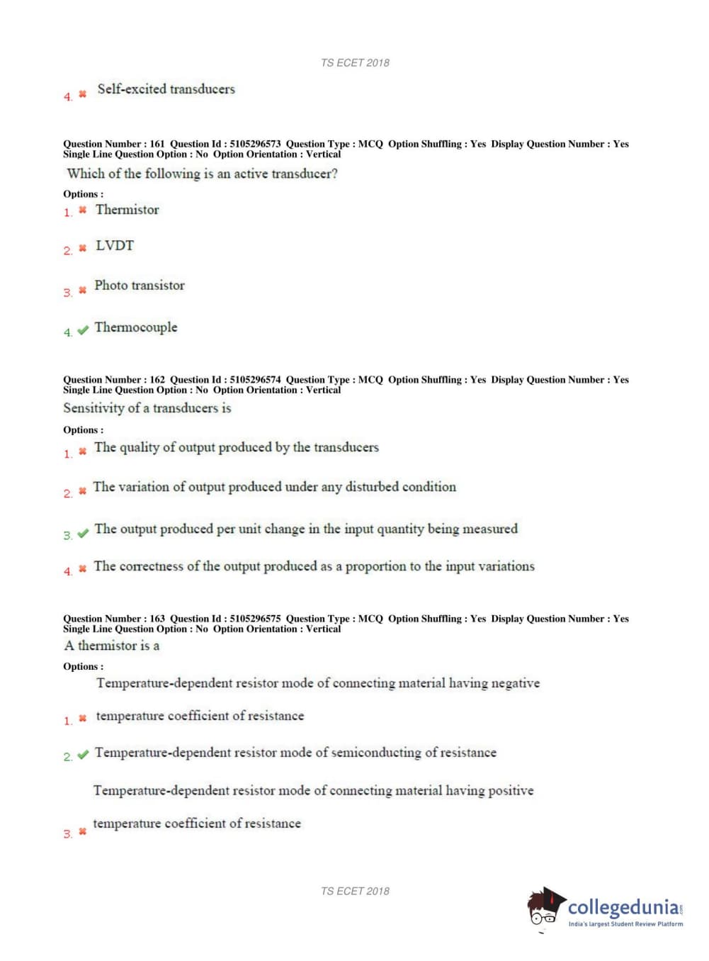TS ECET 2018 ELECTRONICS & COMMUNICATION ENGINEERING Question Paper with Answer Key PDFs Shift 1