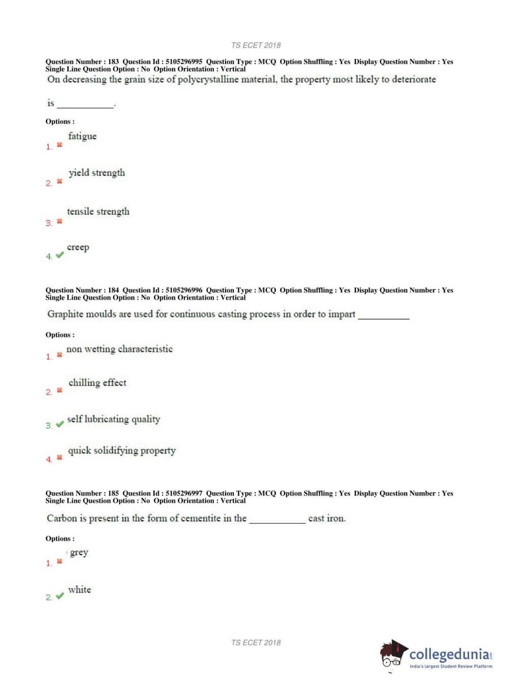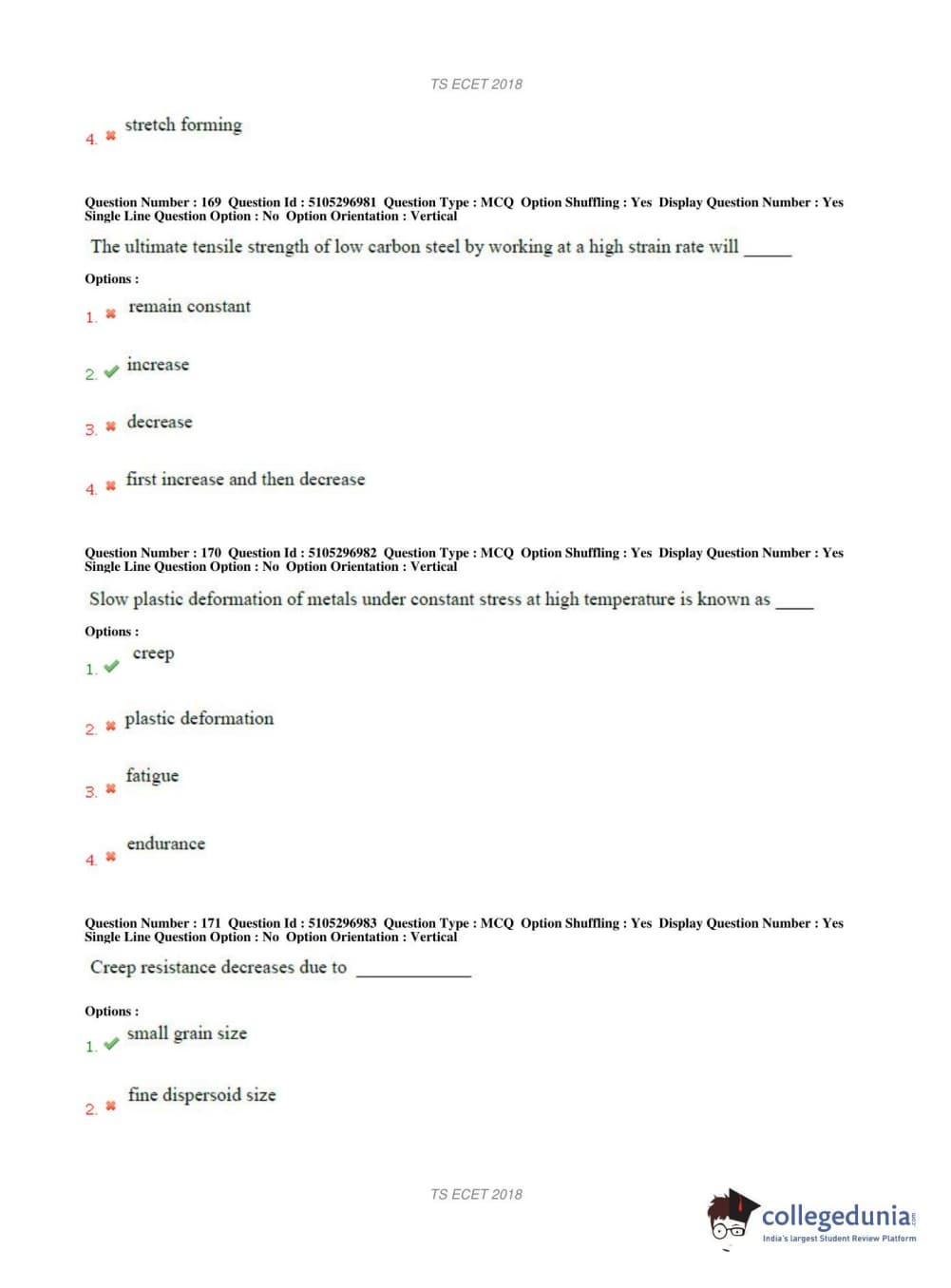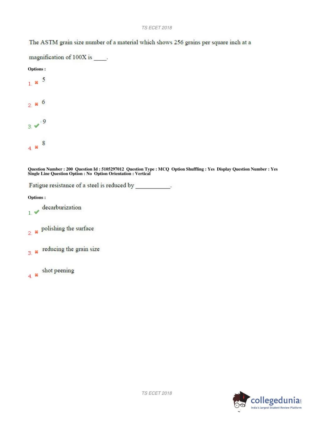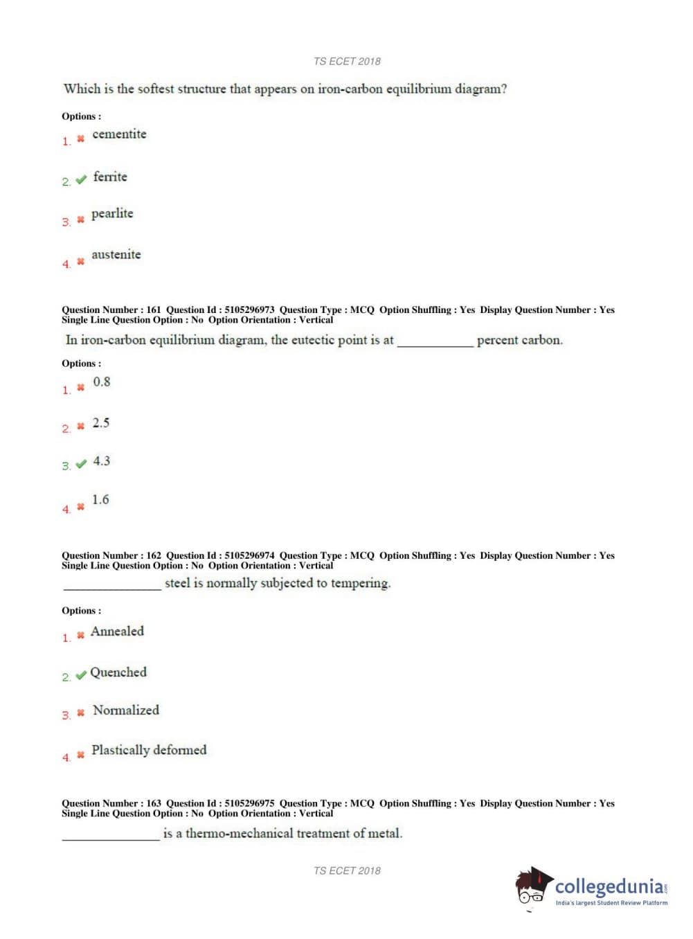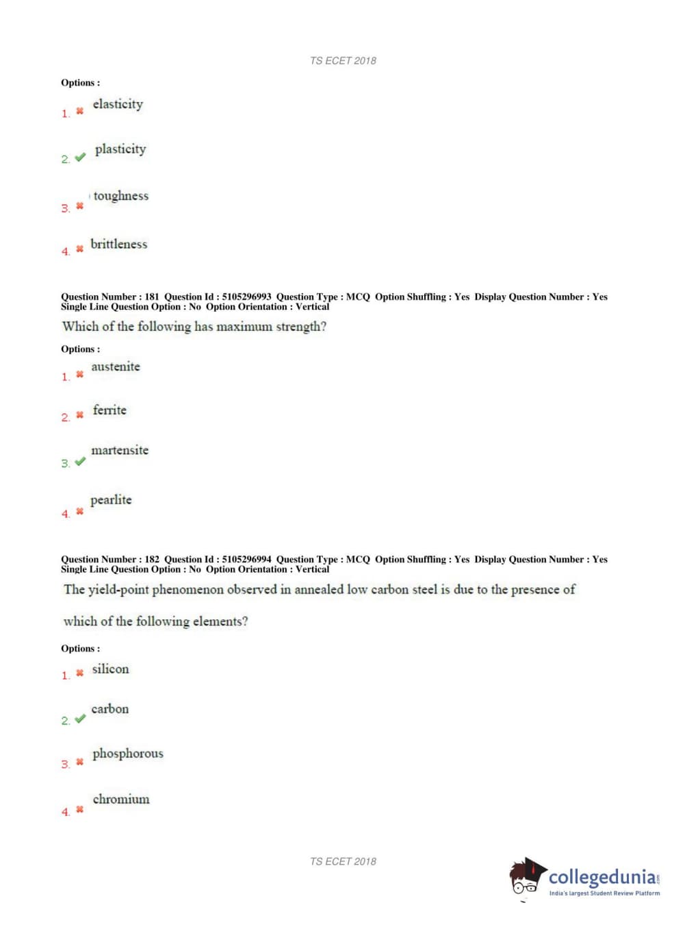 TS ECET 2018 METALLURGICAL ENGINEERING Question Paper with Answer Key PDFs Shift 1