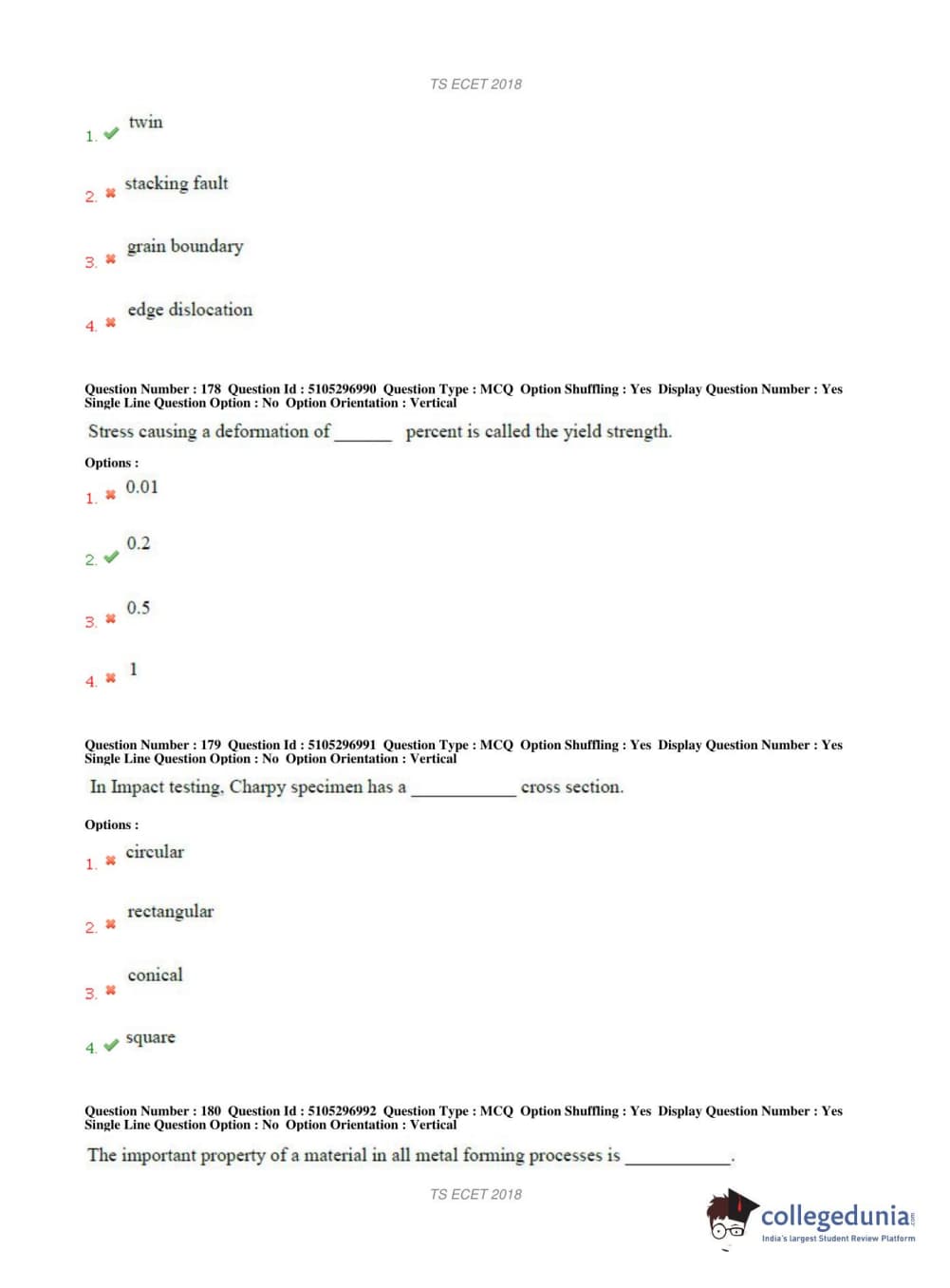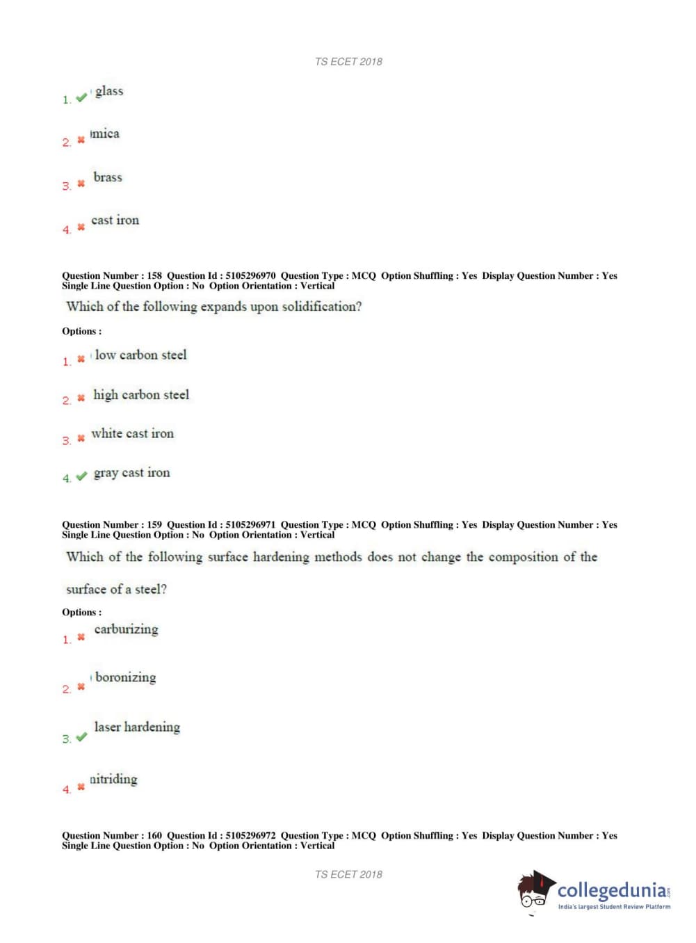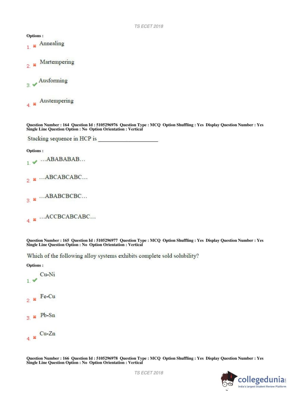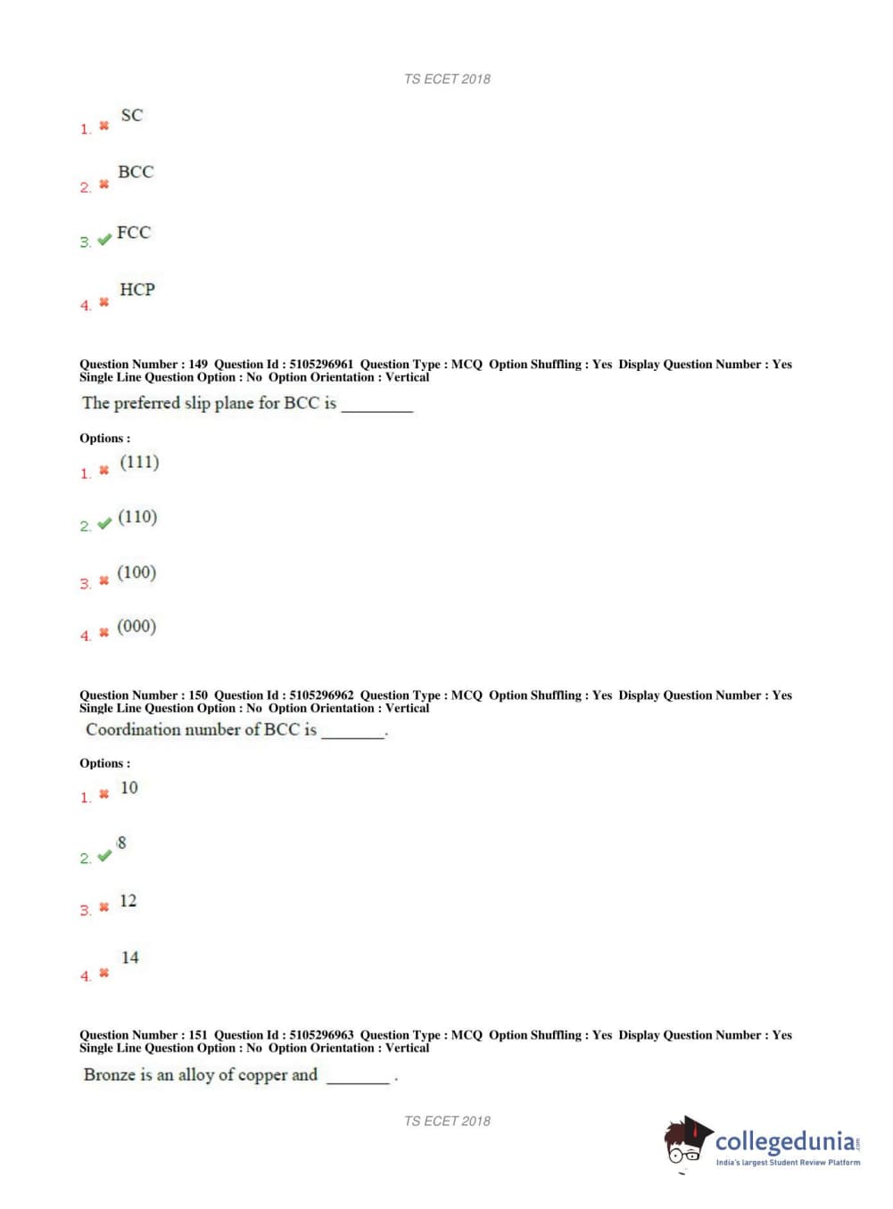TS ECET 2018 METALLURGICAL ENGINEERING Question Paper with Answer Key PDFs Shift 1