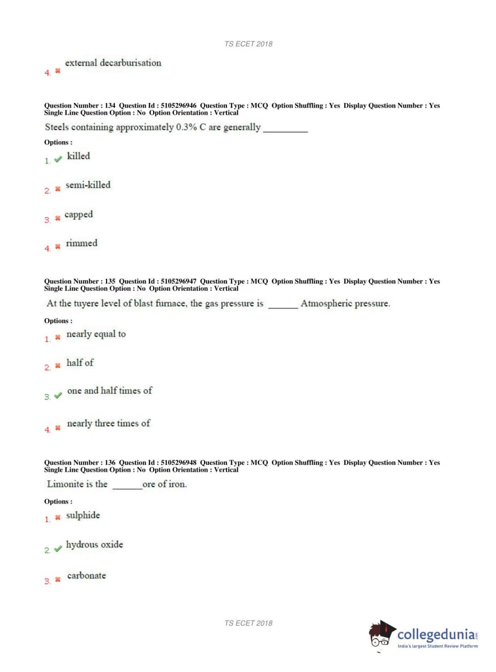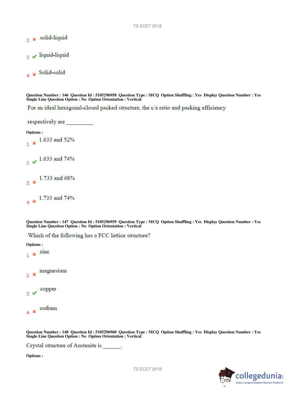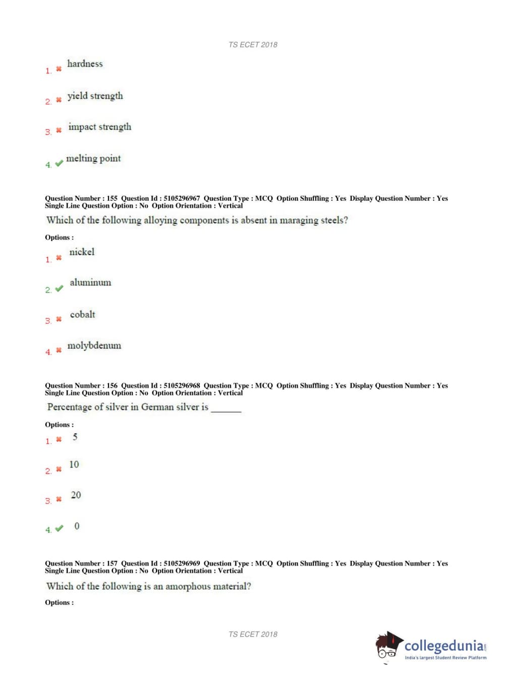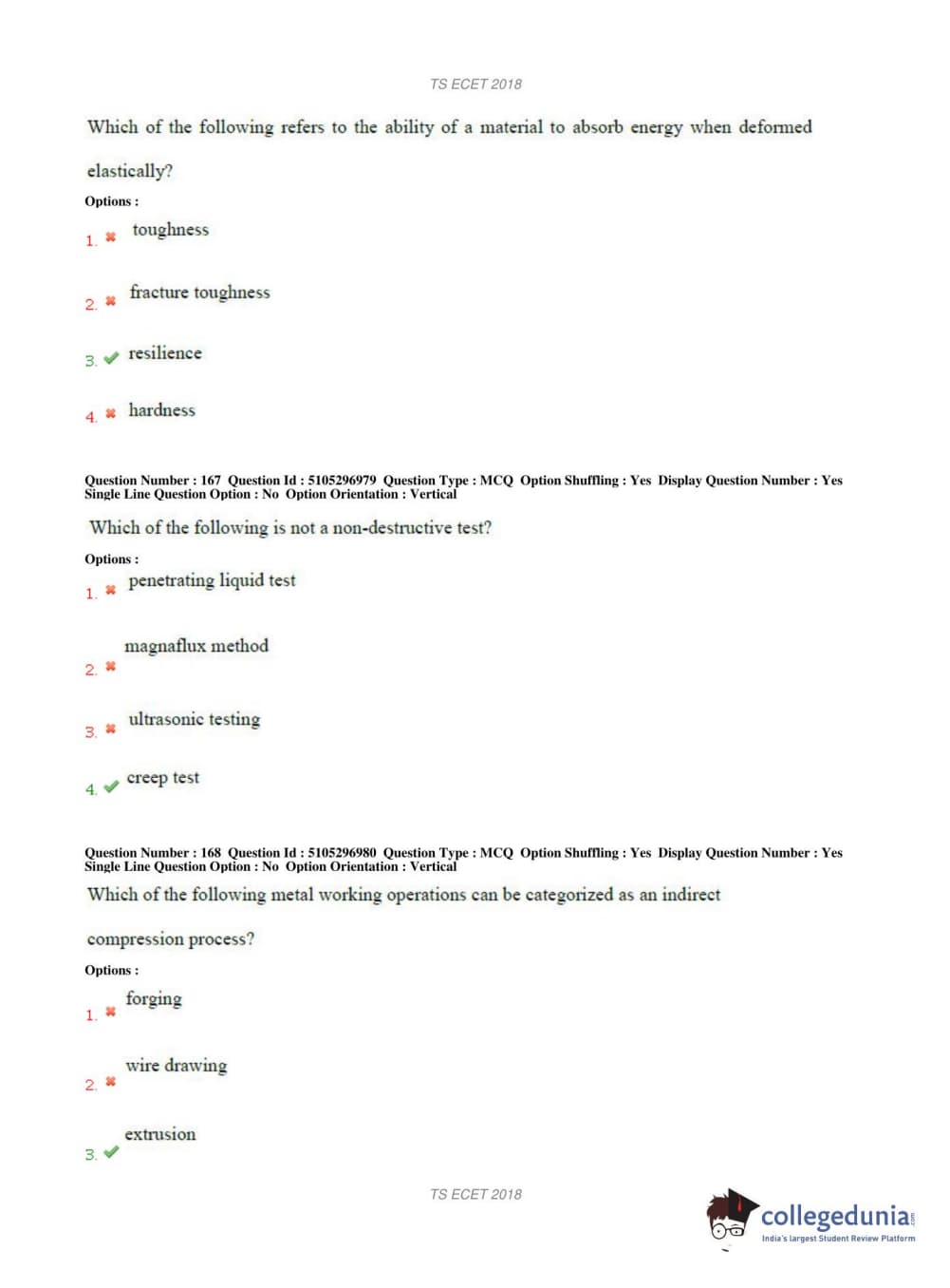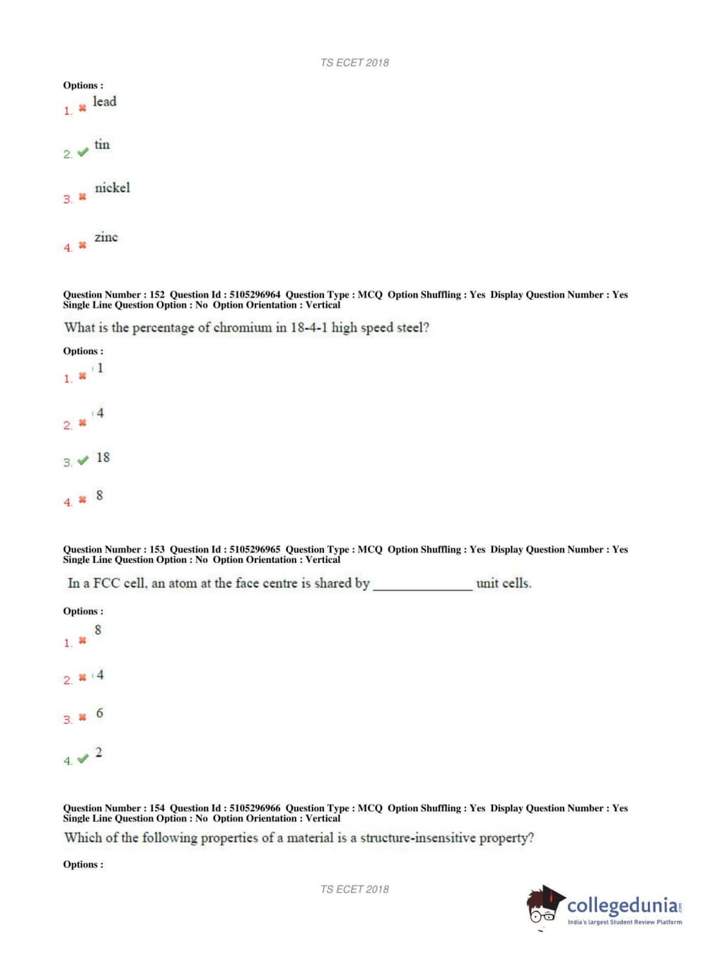 TS ECET 2018 METALLURGICAL ENGINEERING Question Paper with Answer Key PDFs Shift 1