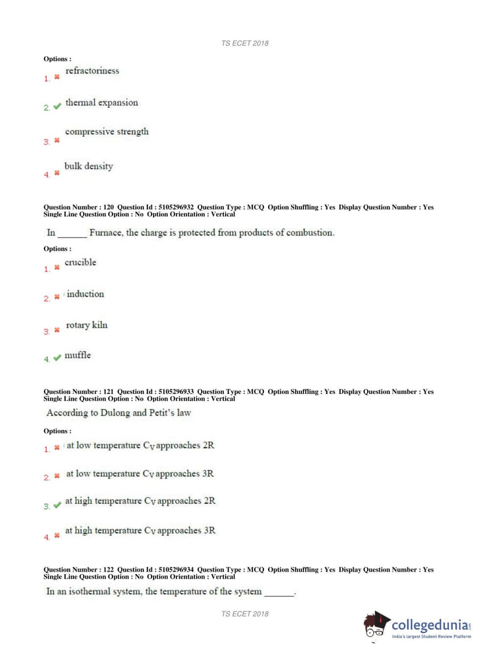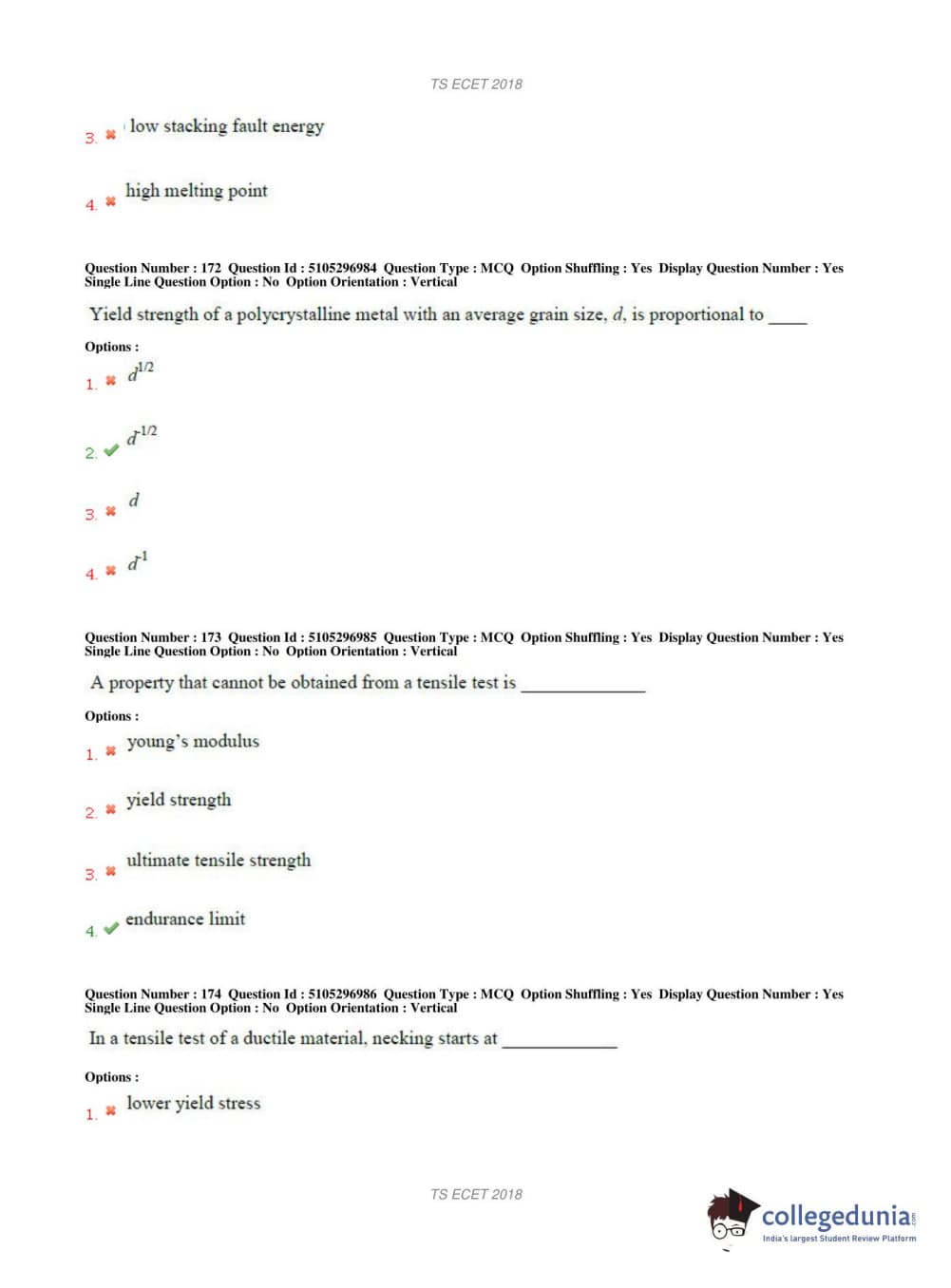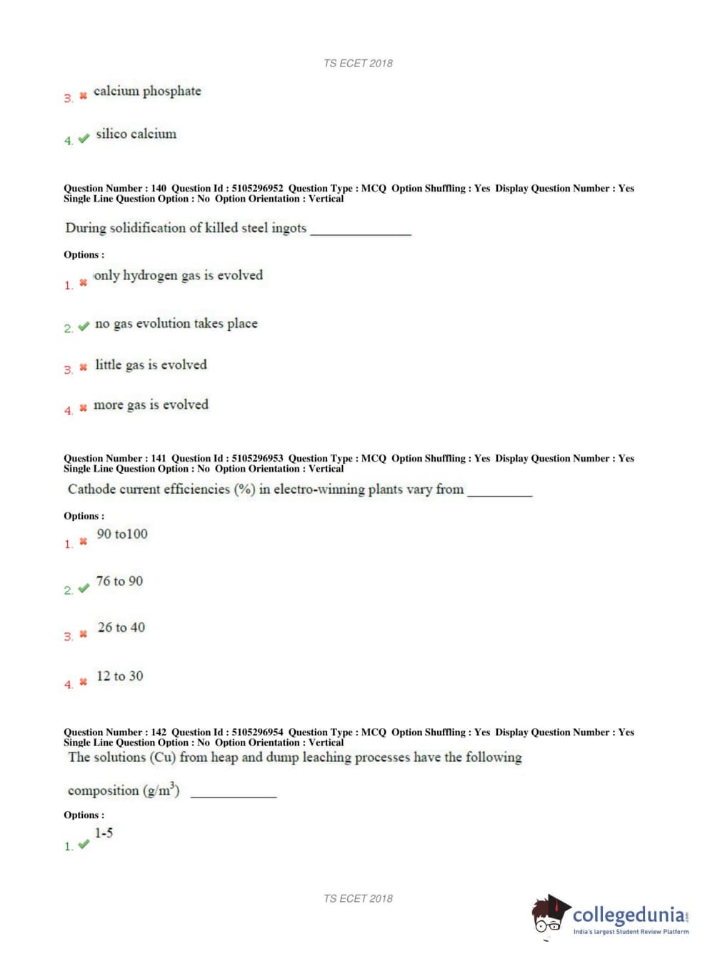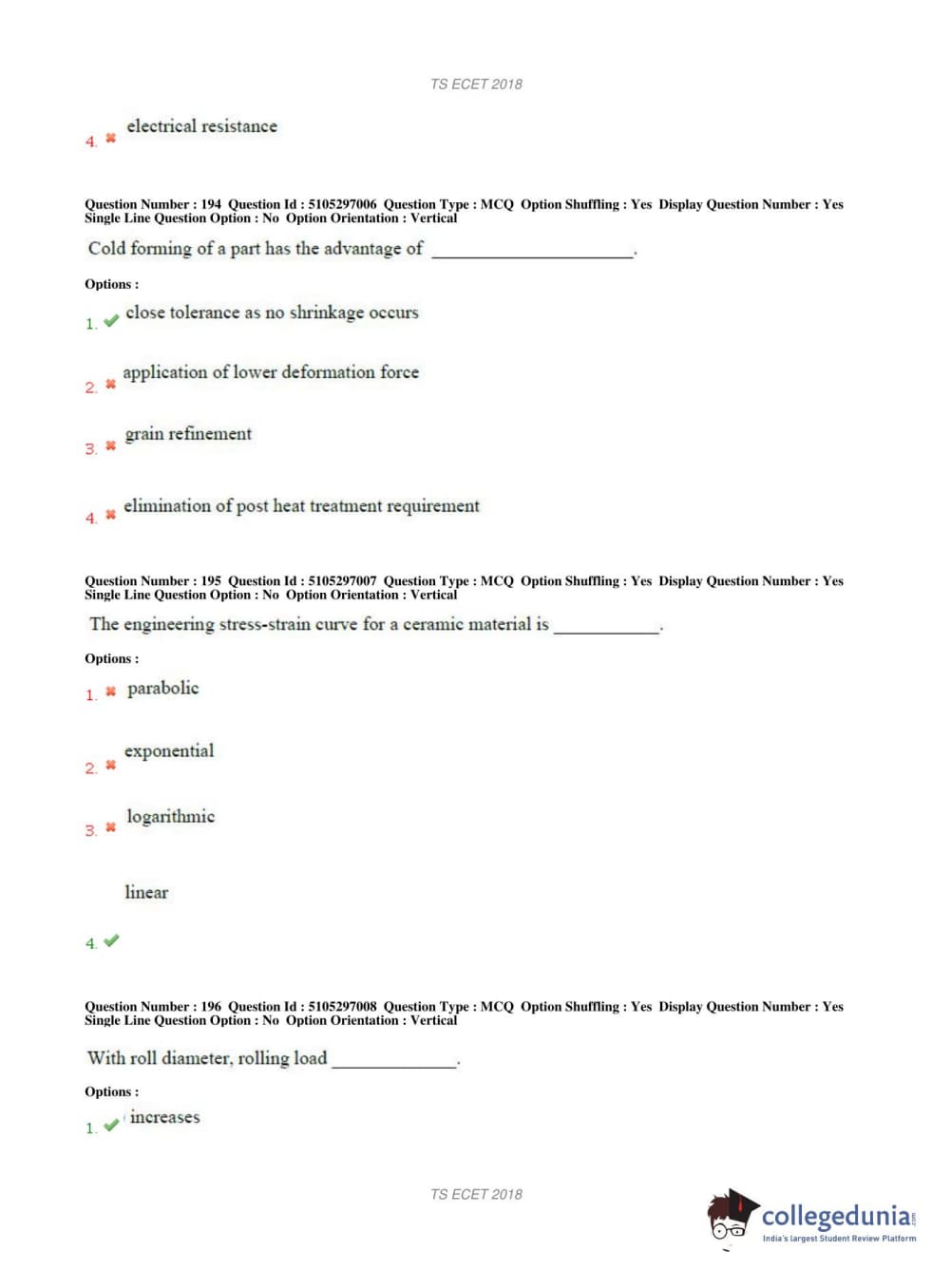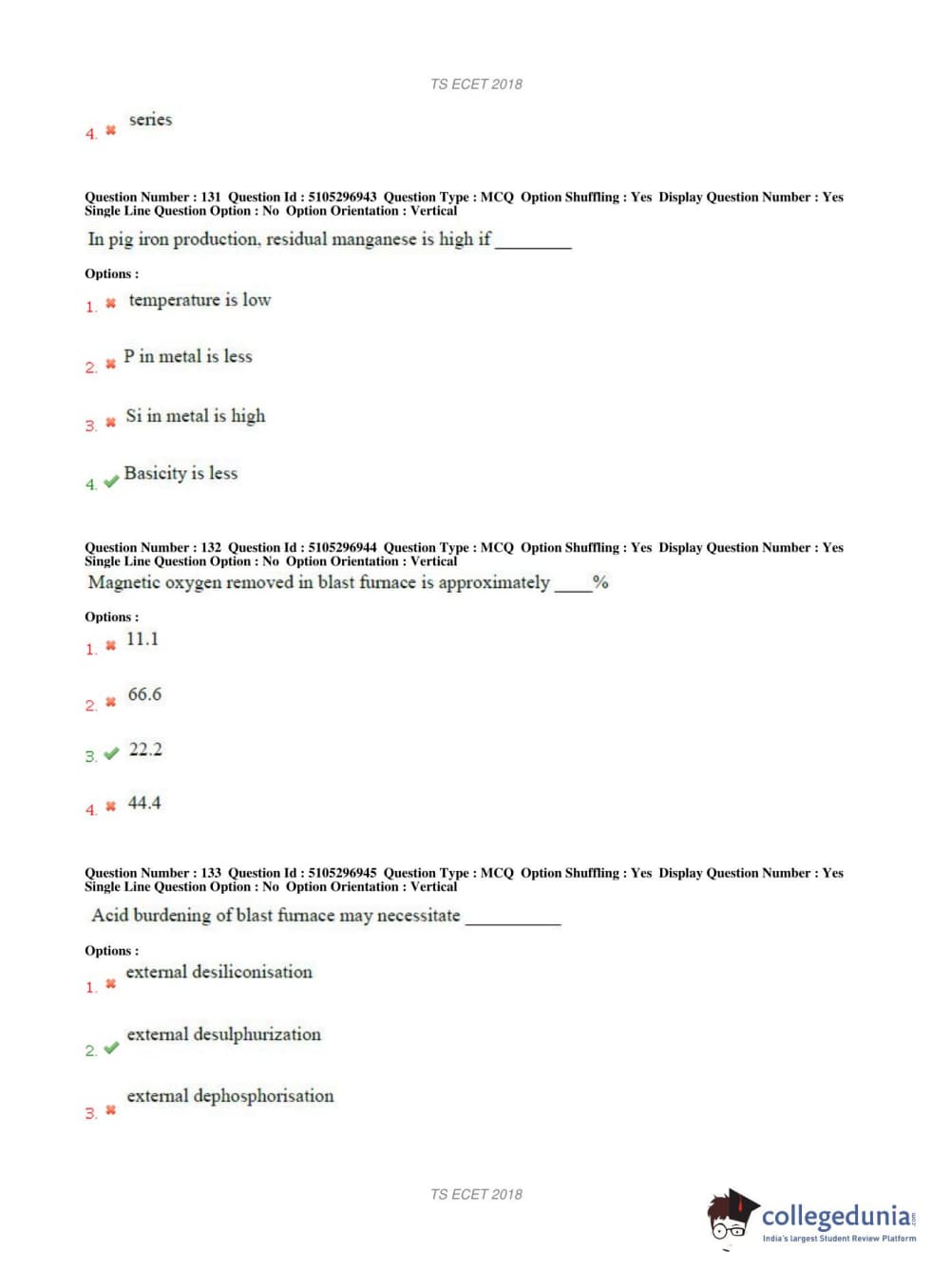 TS ECET 2018 METALLURGICAL ENGINEERING Question Paper with Answer Key PDFs Shift 1