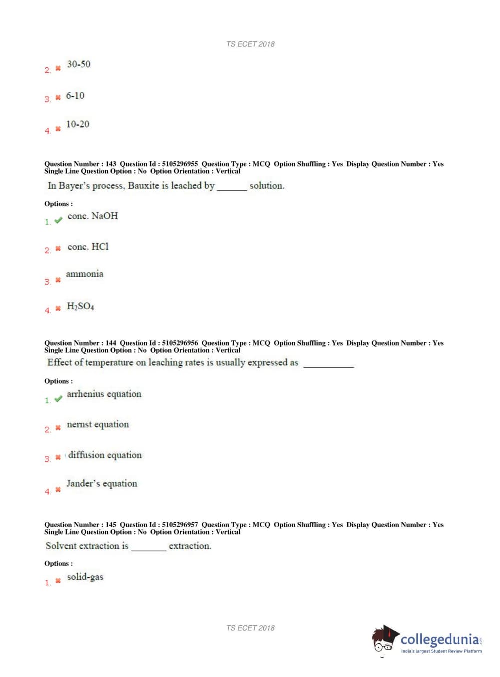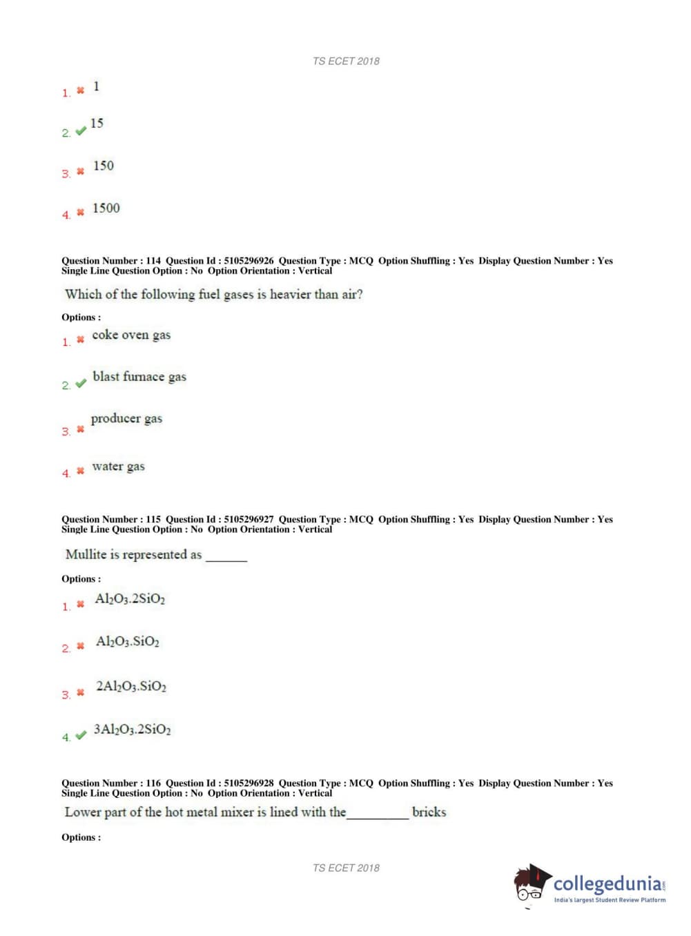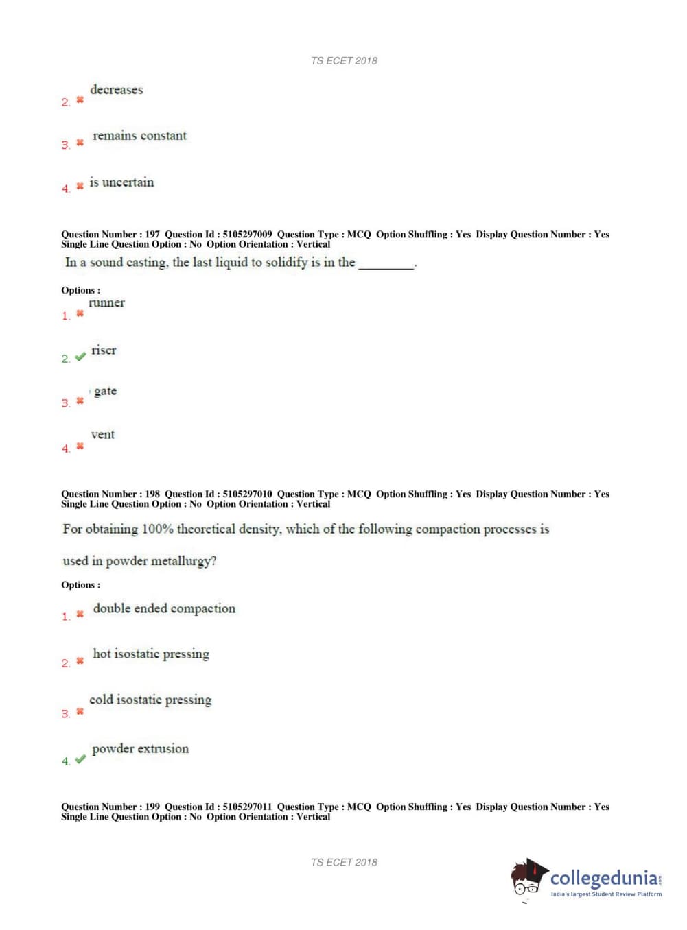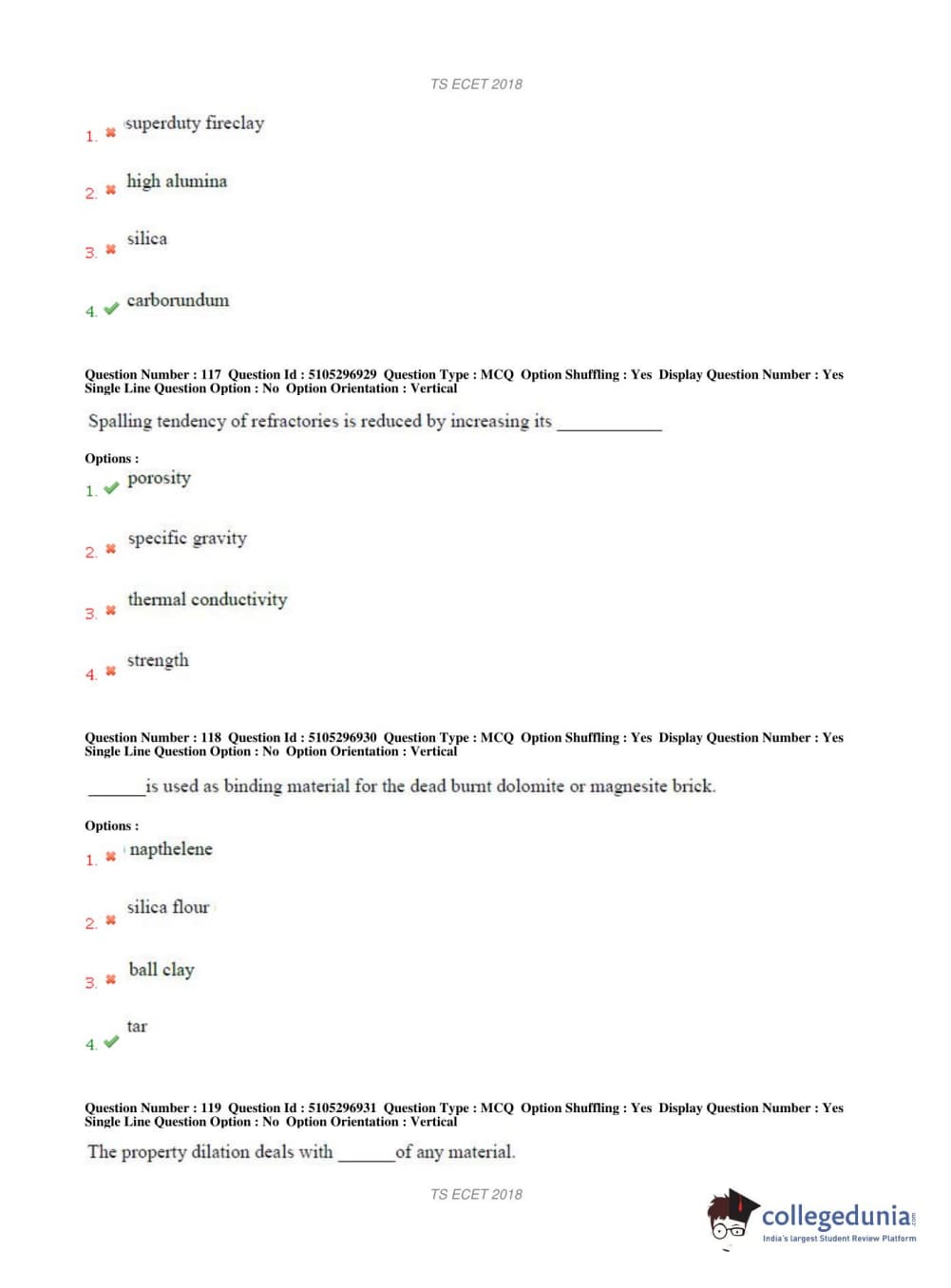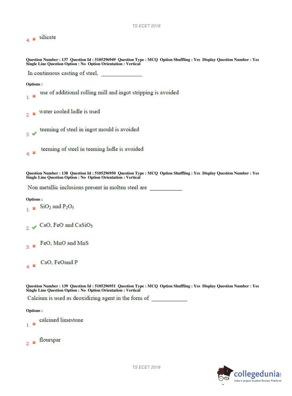 TS ECET 2018 METALLURGICAL ENGINEERING Question Paper with Answer Key PDFs Shift 1