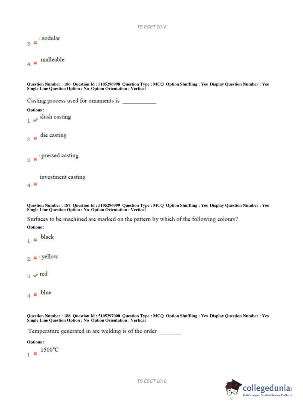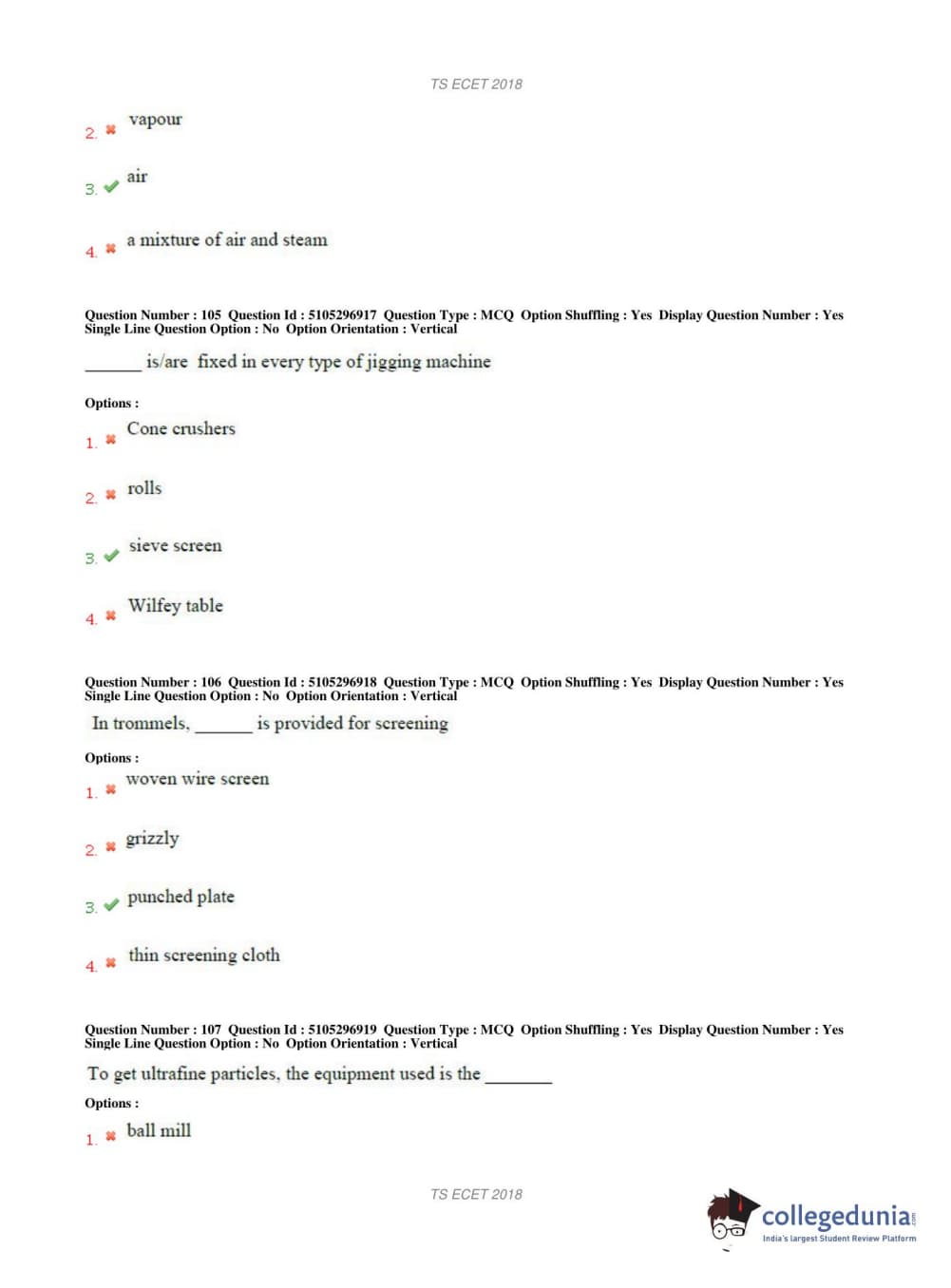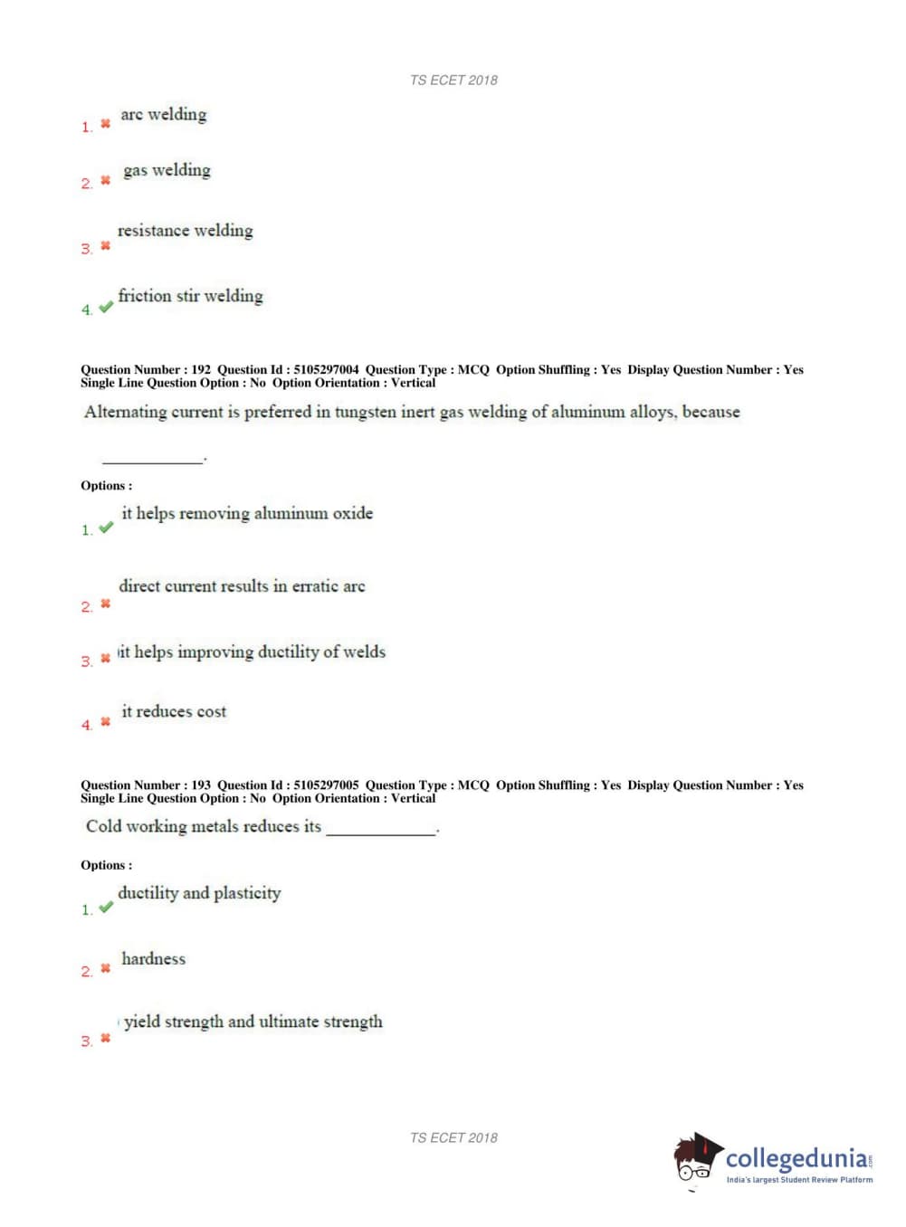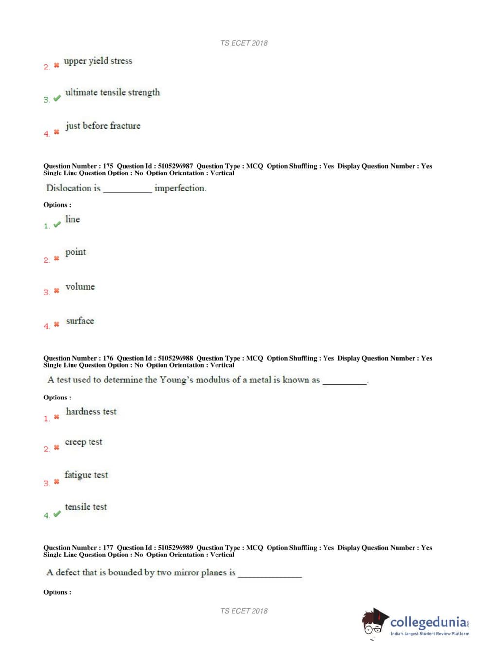 TS ECET 2018 METALLURGICAL ENGINEERING Question Paper with Answer Key PDFs Shift 1