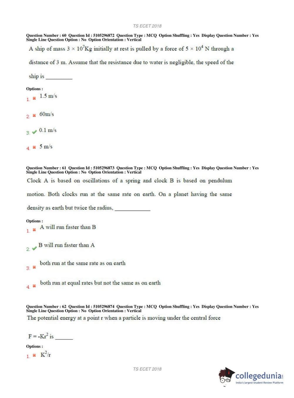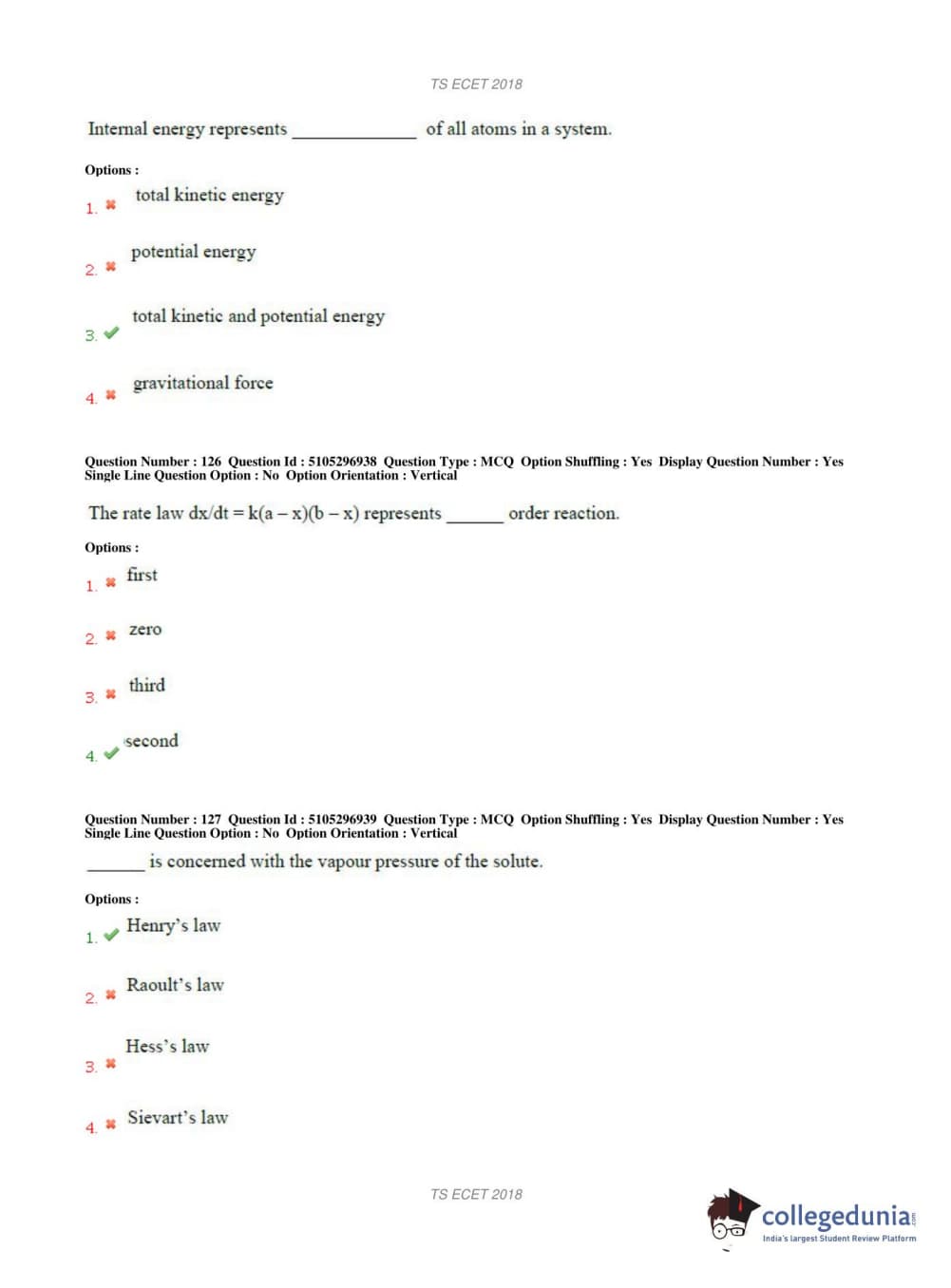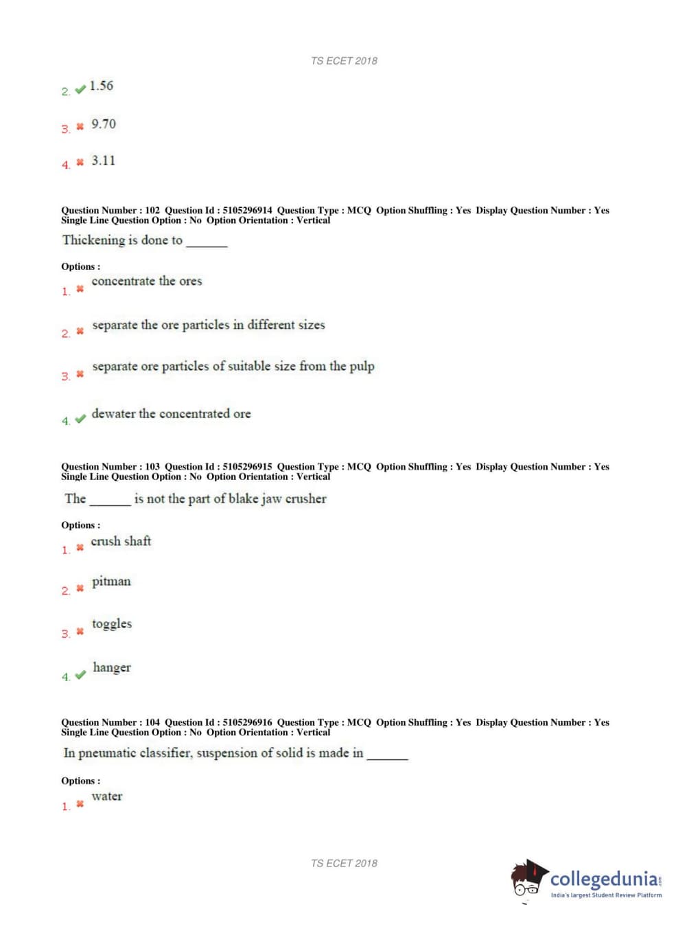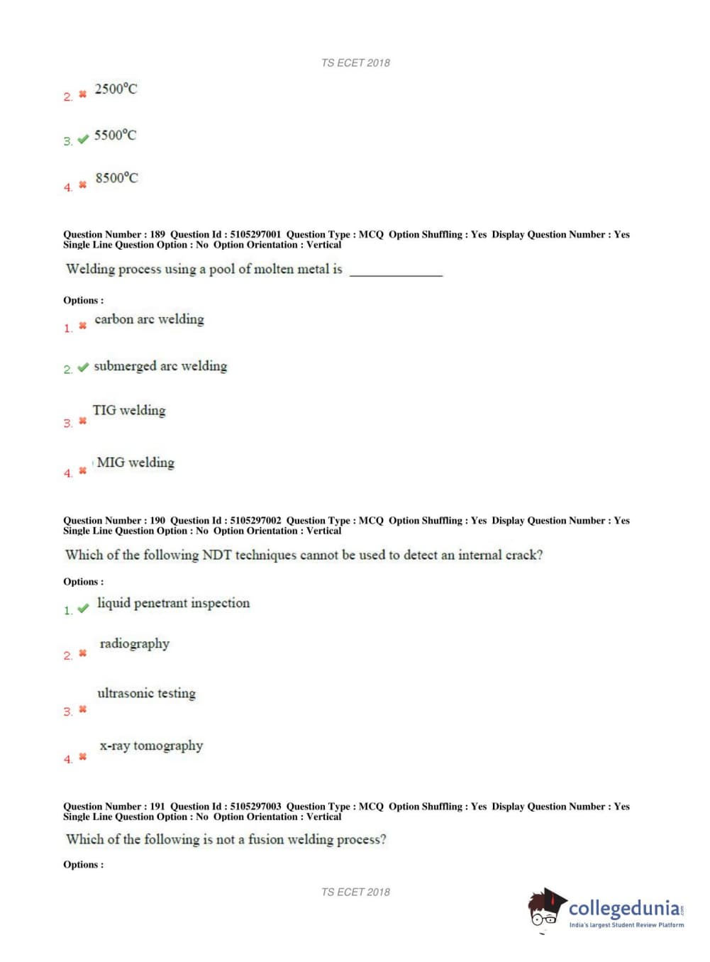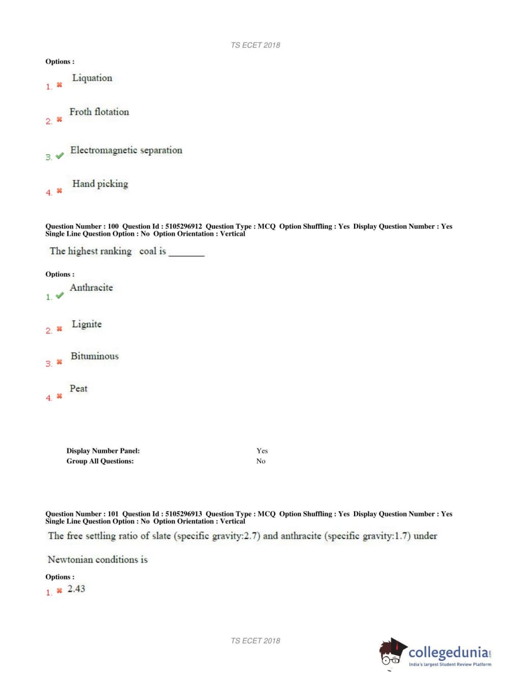 TS ECET 2018 METALLURGICAL ENGINEERING Question Paper with Answer Key PDFs Shift 1
