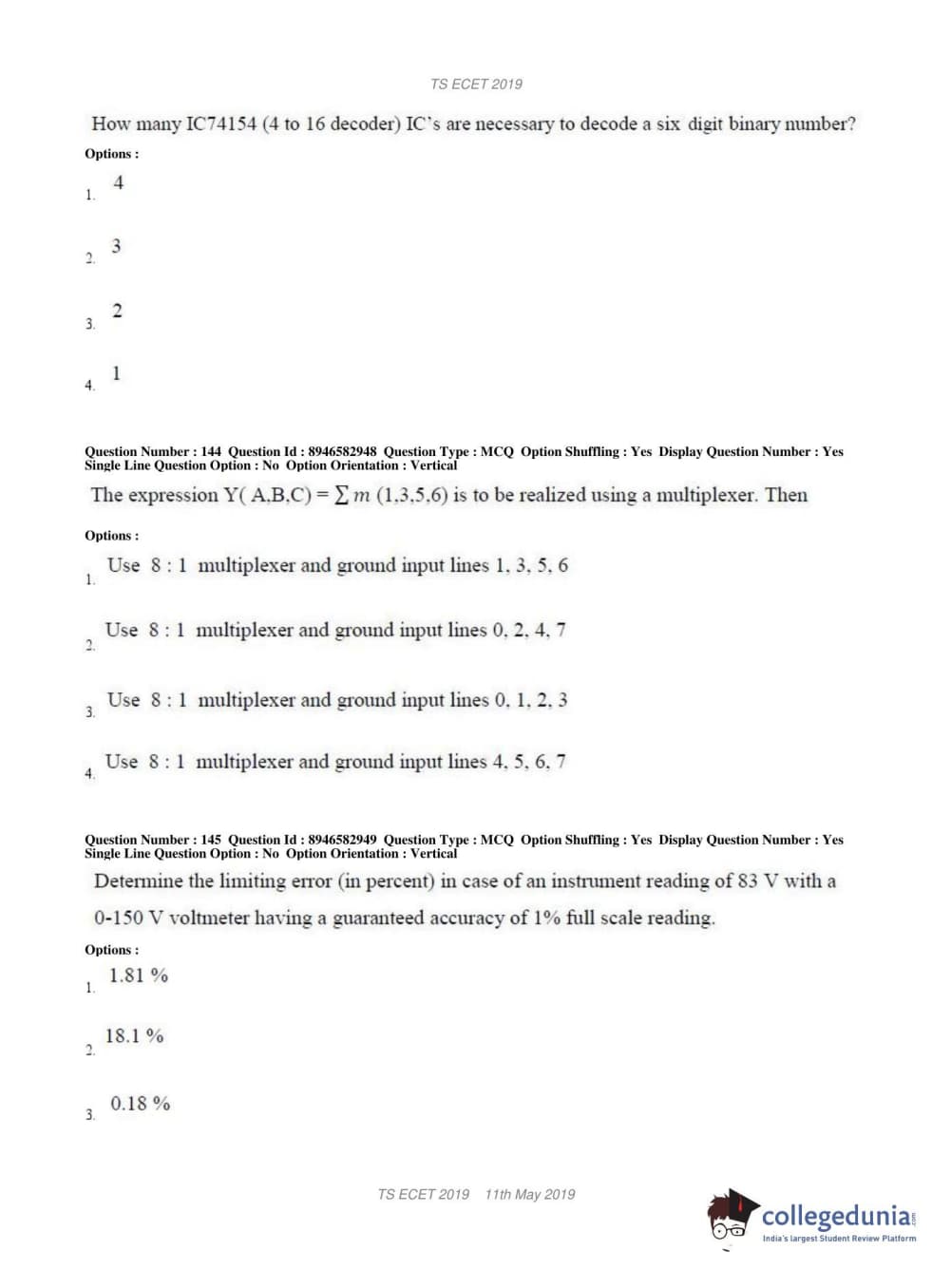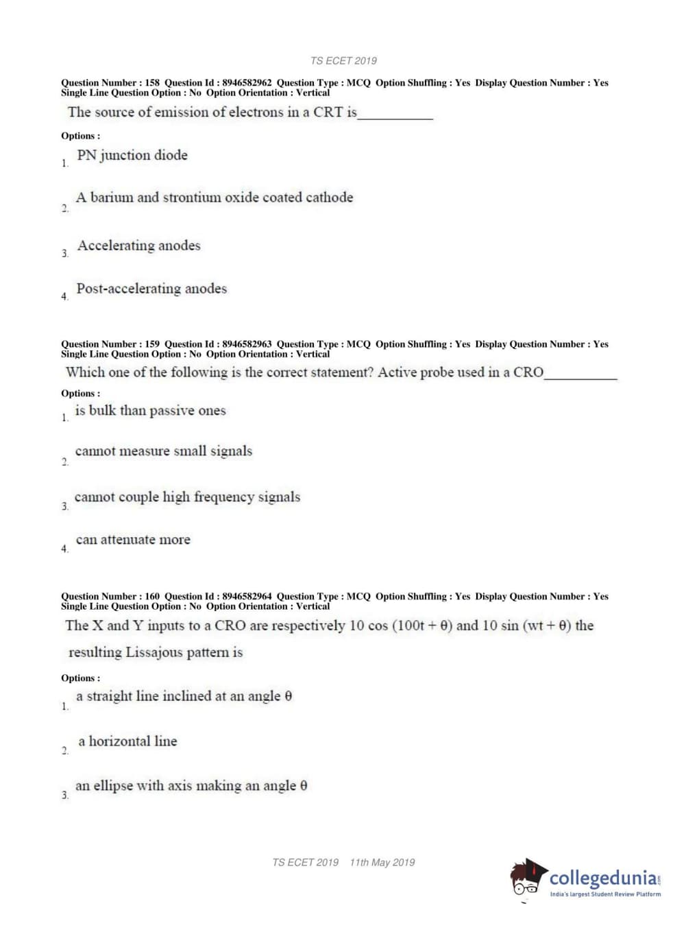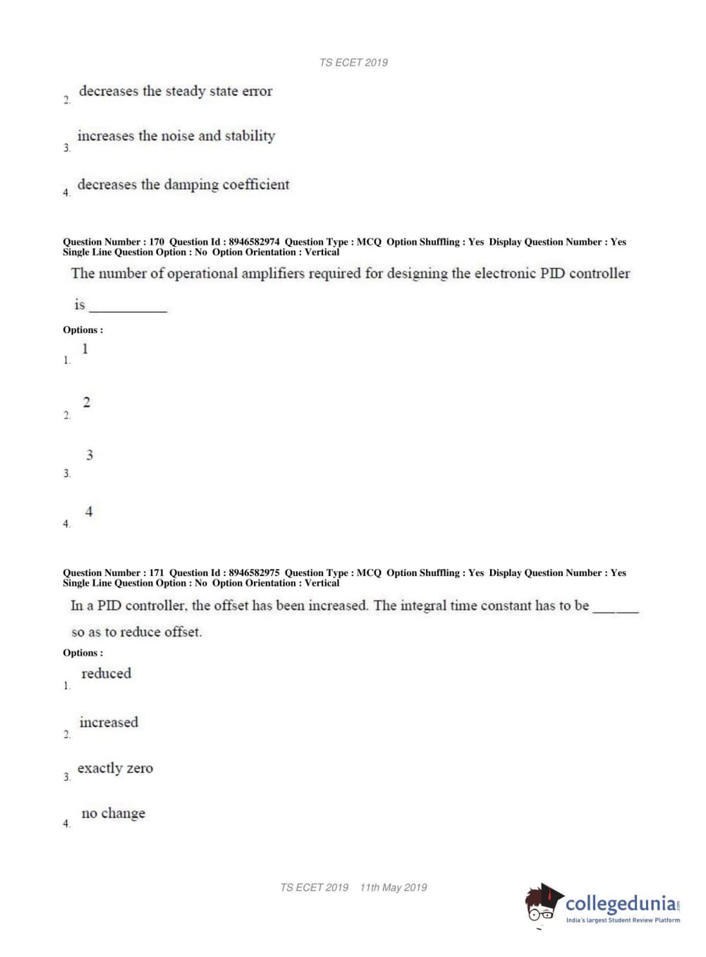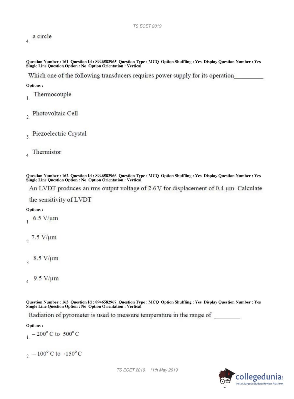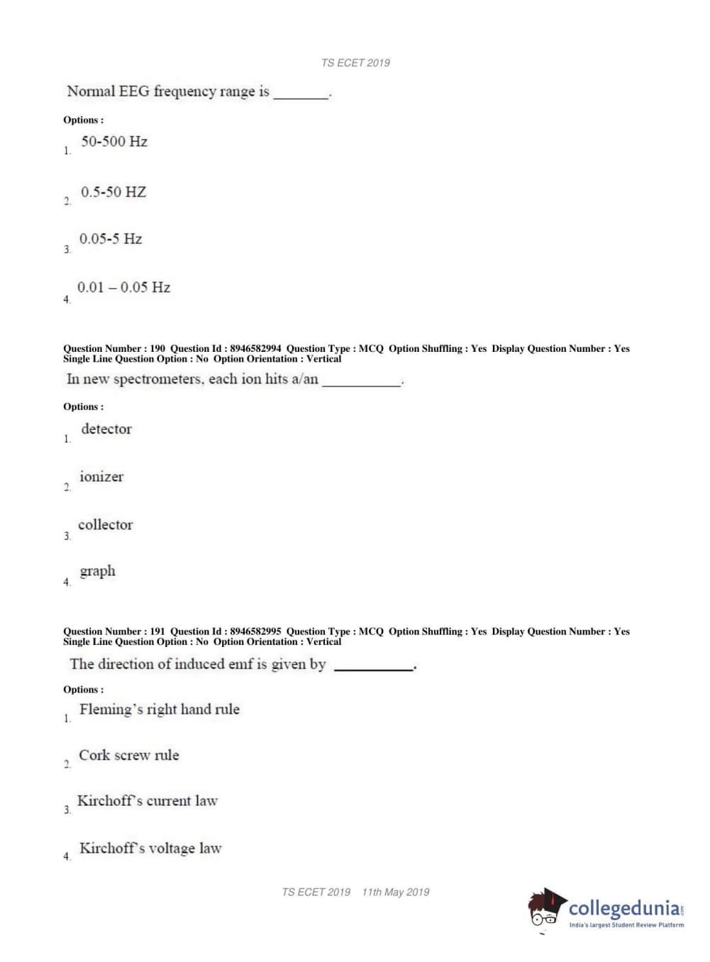 | TS ECET 2019 ELECTRONICS & INSTRUMENTATION ENGINEERING Question Paper PDF | TS ECET 2019 ELECTRONICS & INSTRUMENTATION ENGINEERING Answer Key PDF |