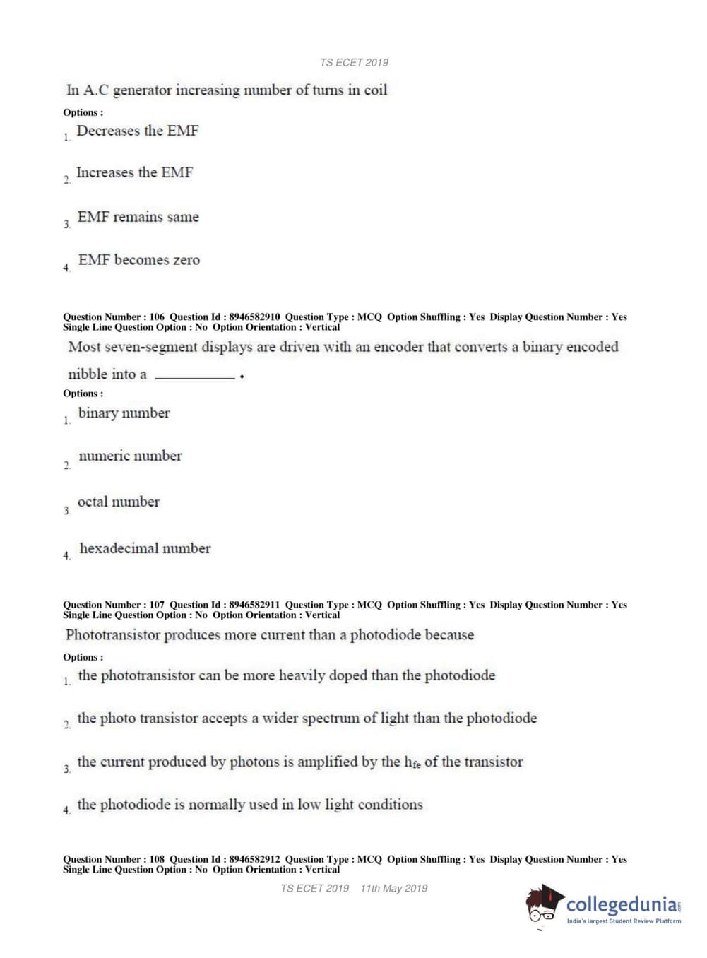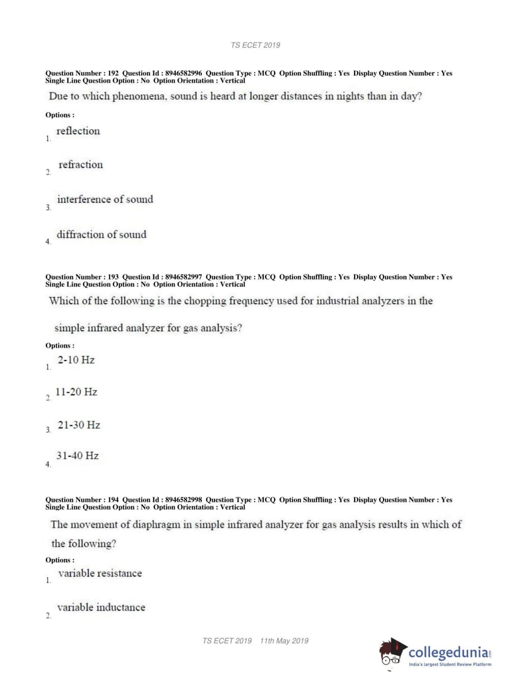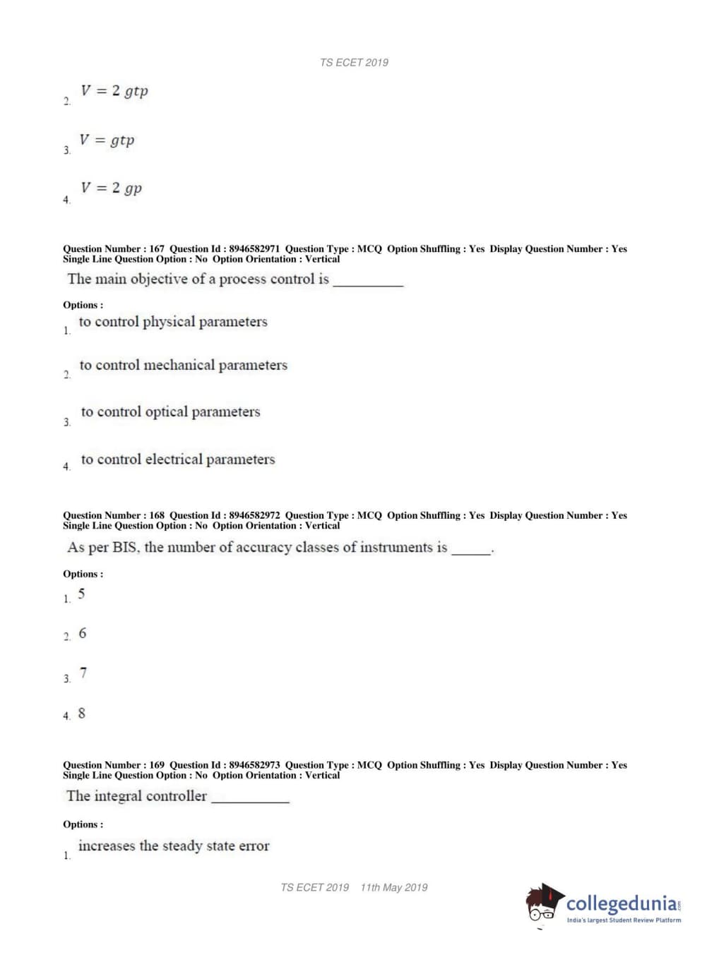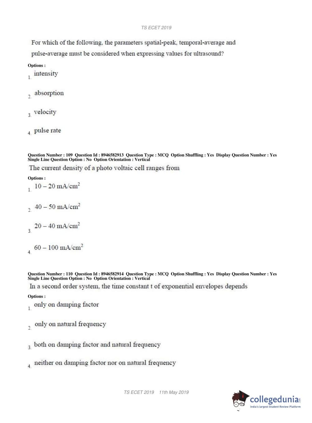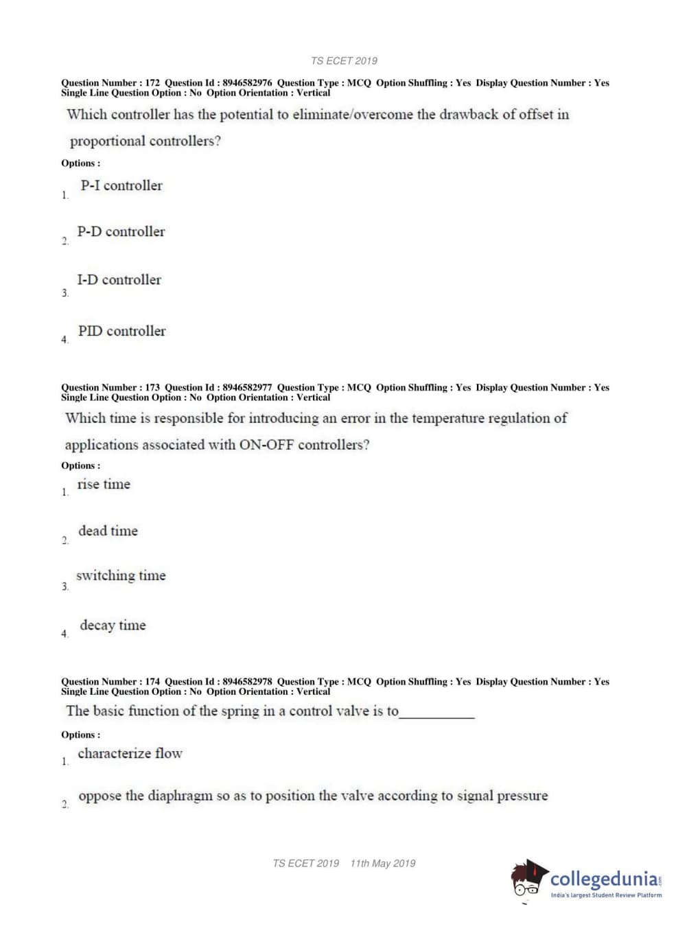| TS ECET 2019 ELECTRONICS & INSTRUMENTATION ENGINEERING Question Paper PDF | TS ECET 2019 ELECTRONICS & INSTRUMENTATION ENGINEERING Answer Key PDF |