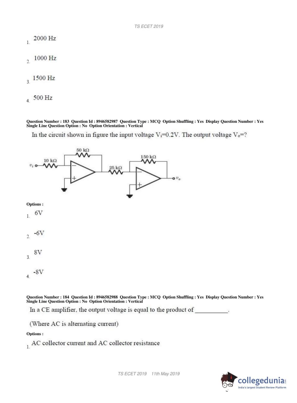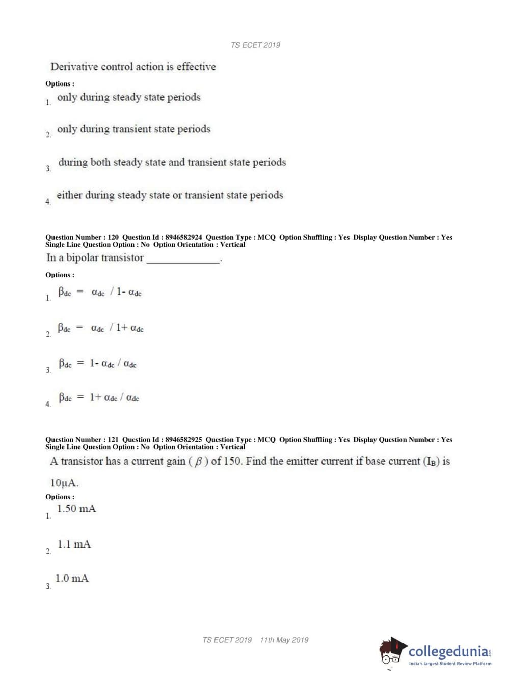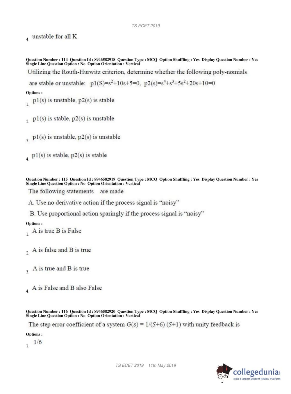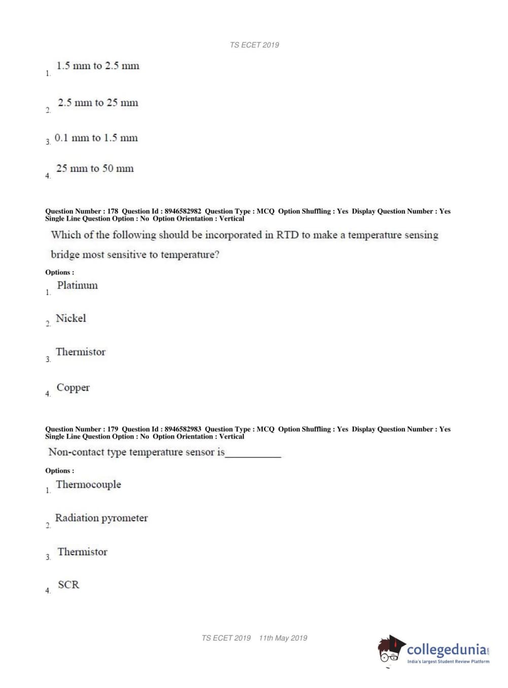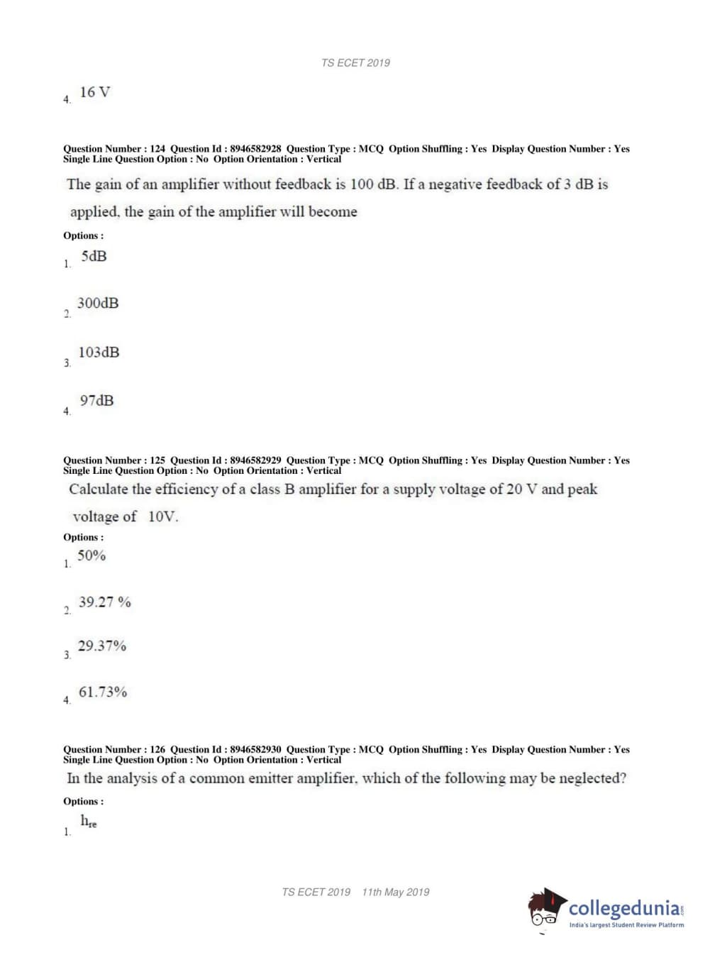 | TS ECET 2019 ELECTRONICS & INSTRUMENTATION ENGINEERING Question Paper PDF | TS ECET 2019 ELECTRONICS & INSTRUMENTATION ENGINEERING Answer Key PDF |