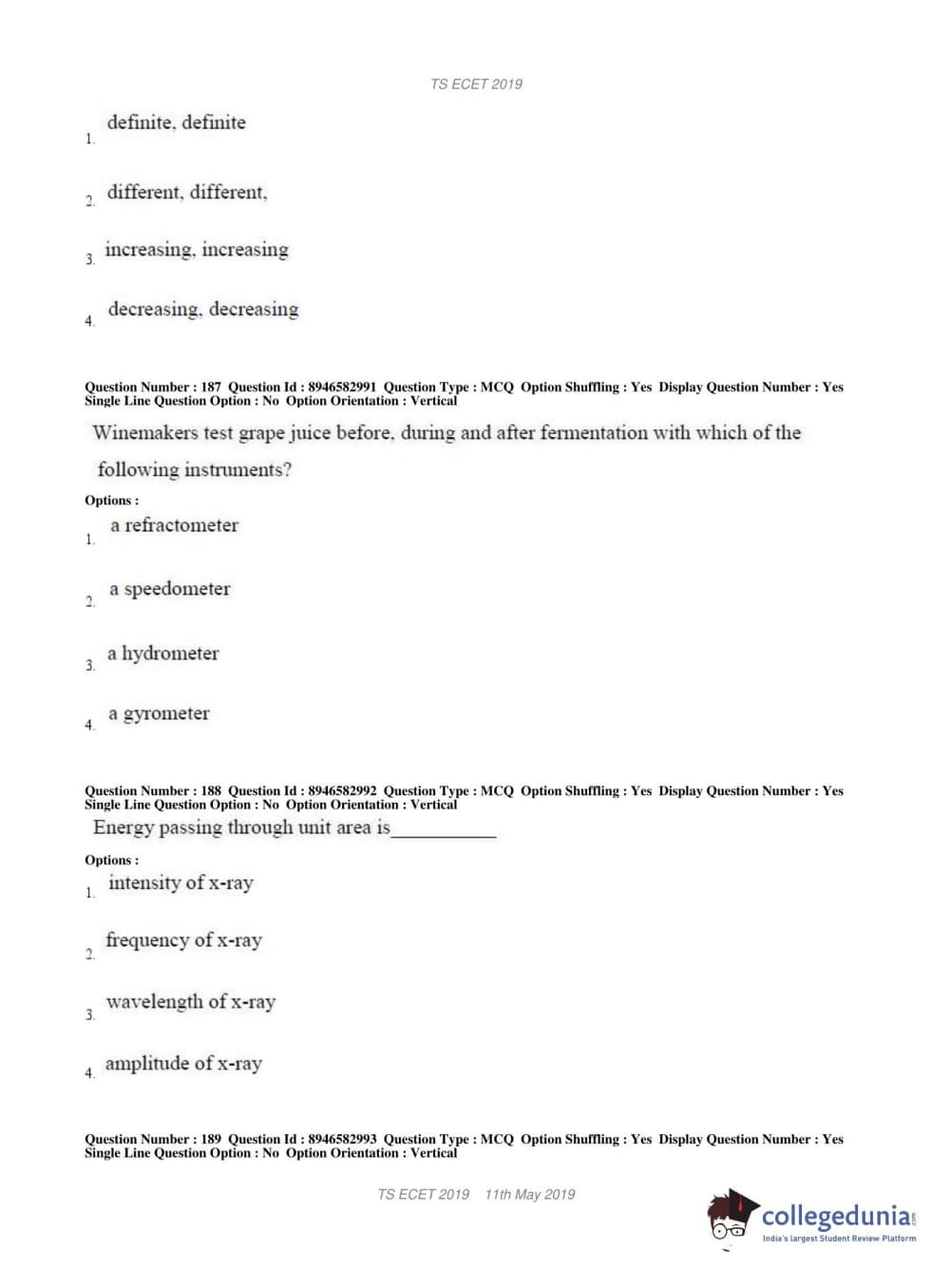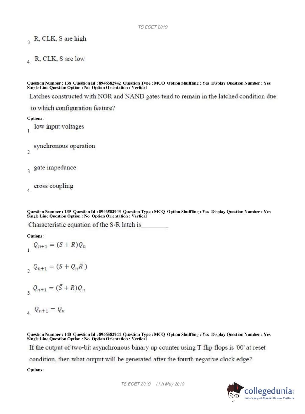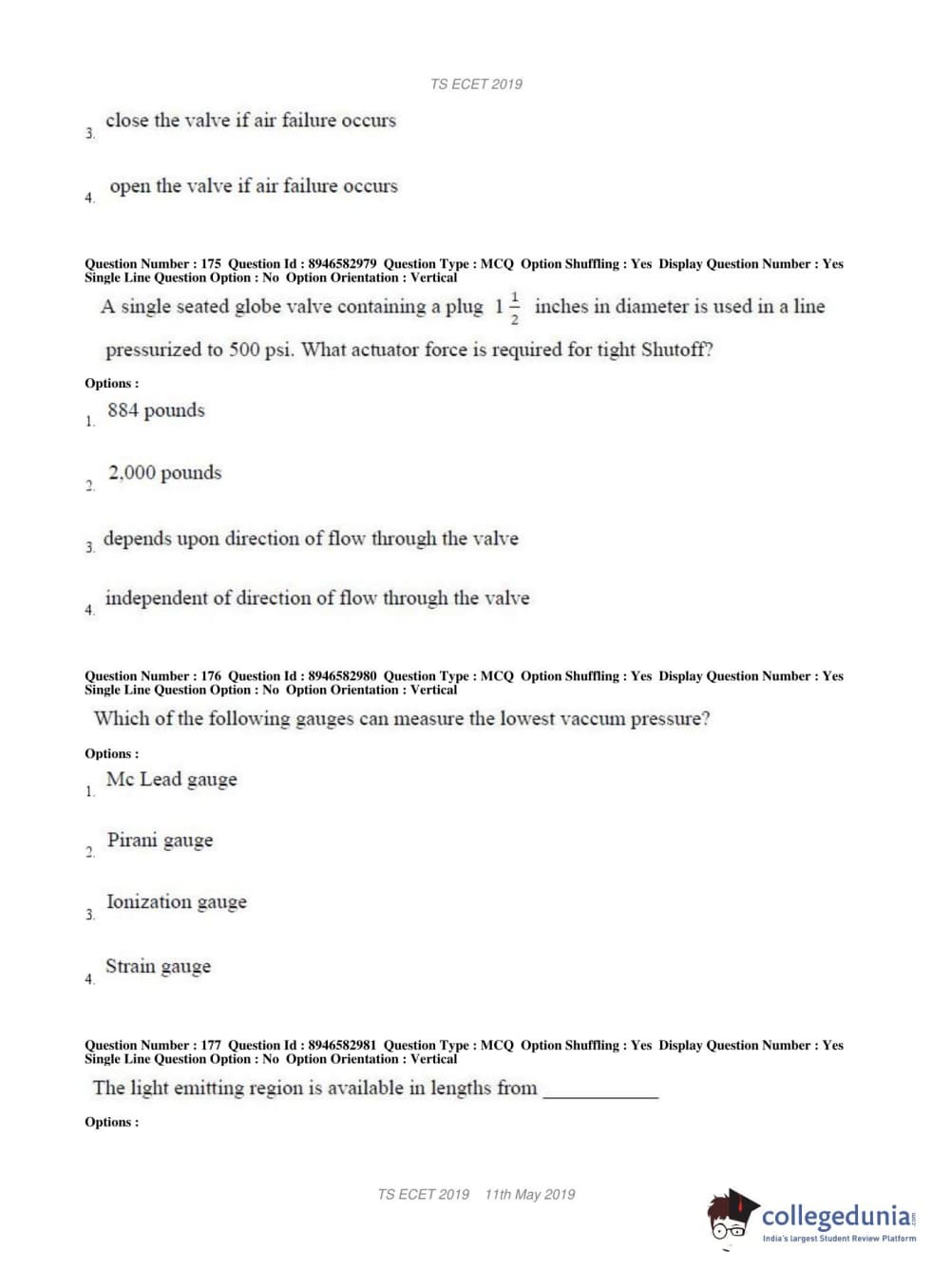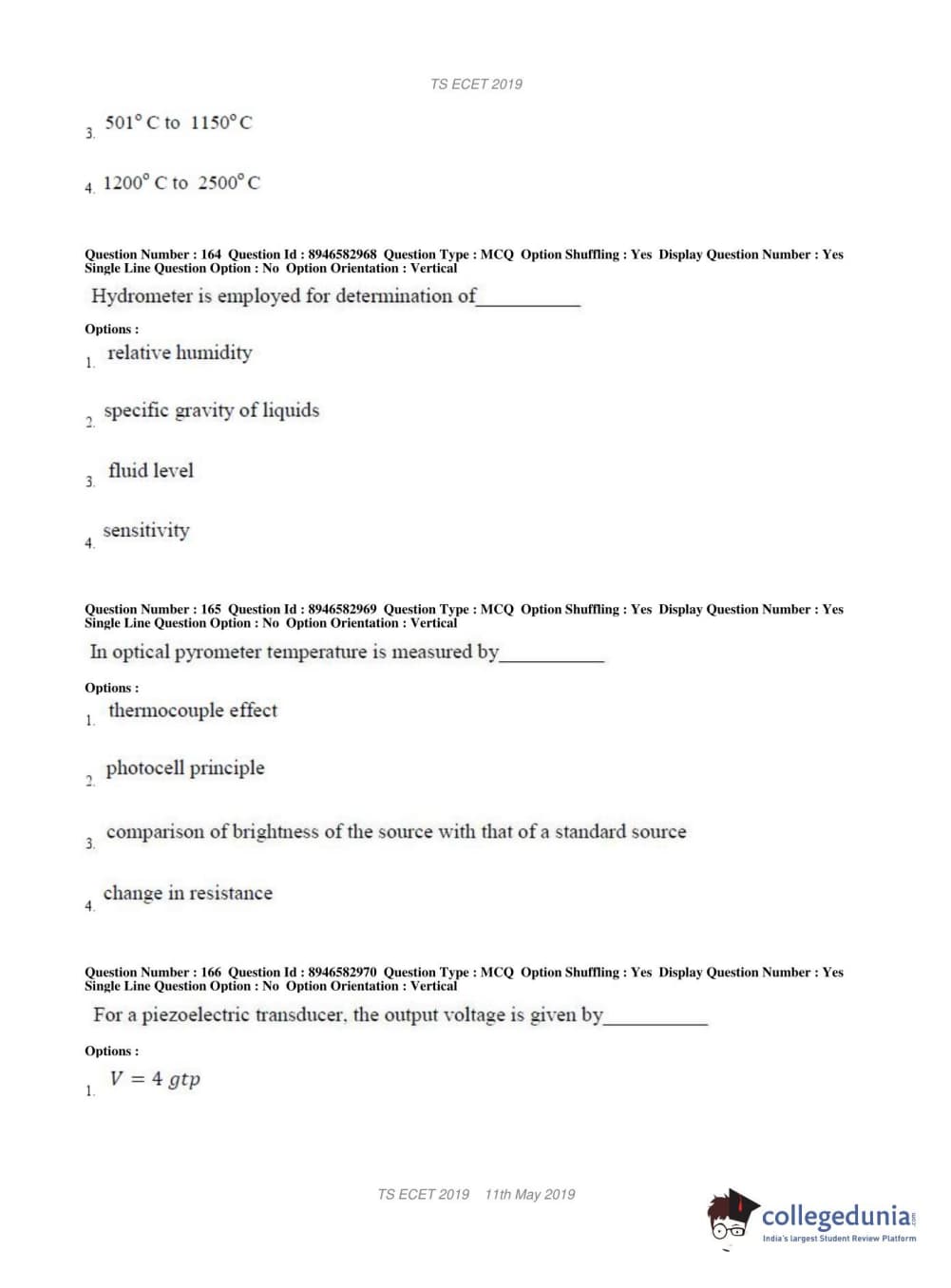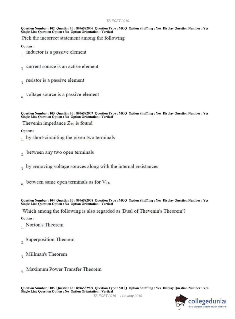 | TS ECET 2019 ELECTRONICS & INSTRUMENTATION ENGINEERING Question Paper PDF | TS ECET 2019 ELECTRONICS & INSTRUMENTATION ENGINEERING Answer Key PDF |