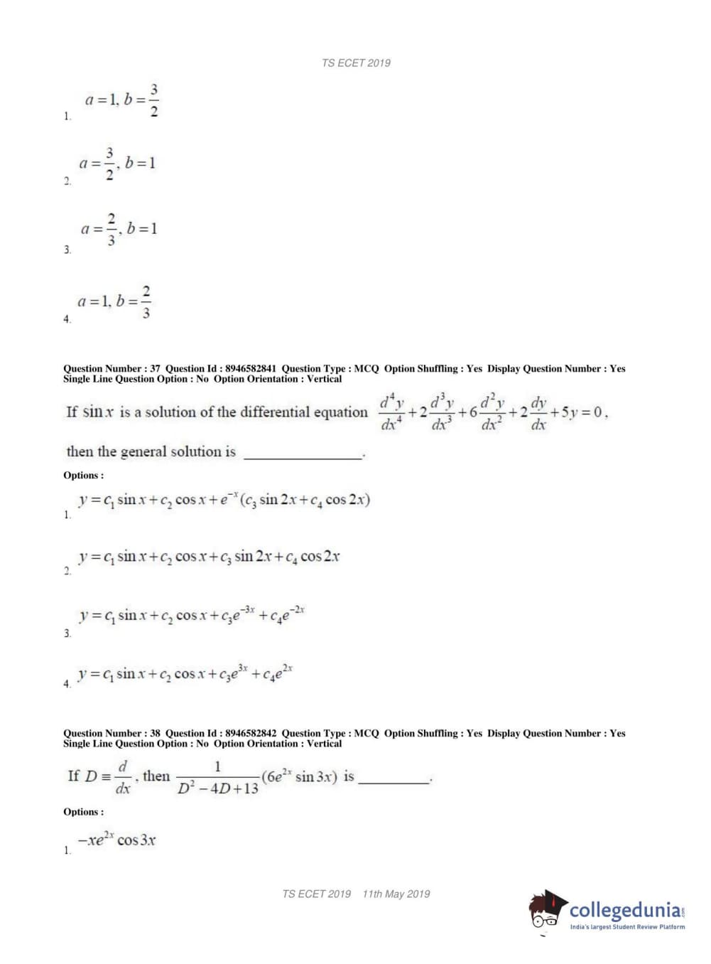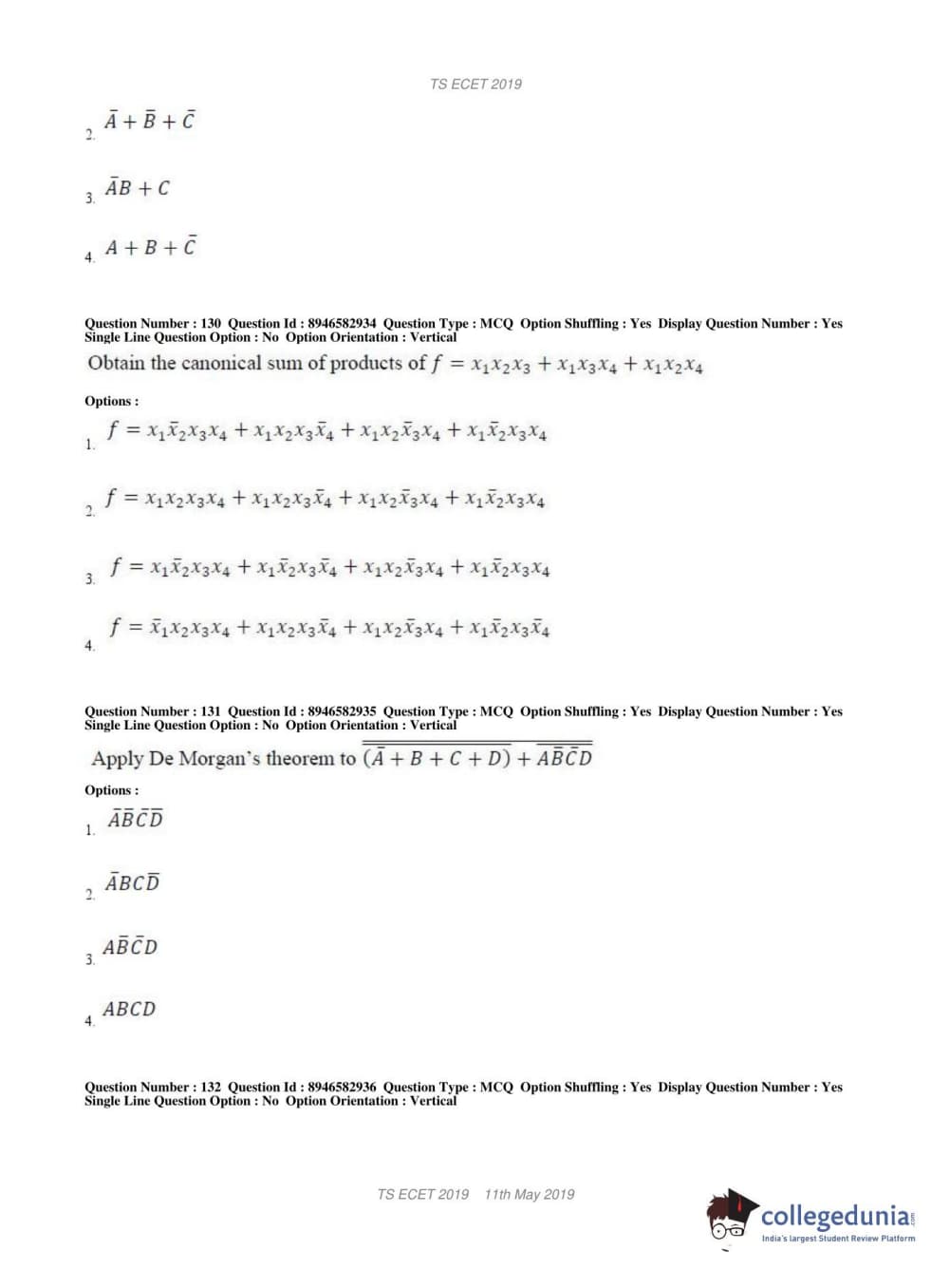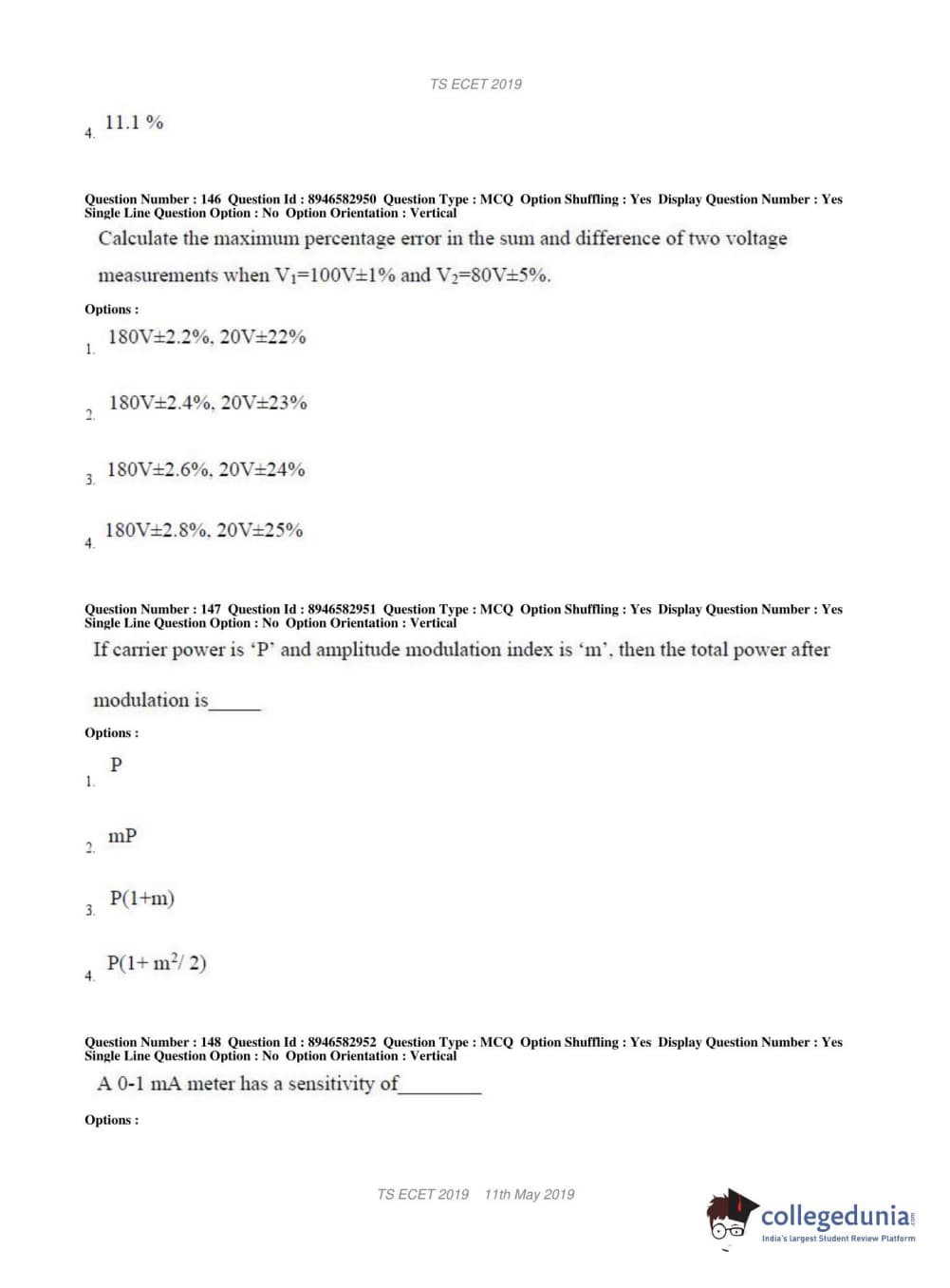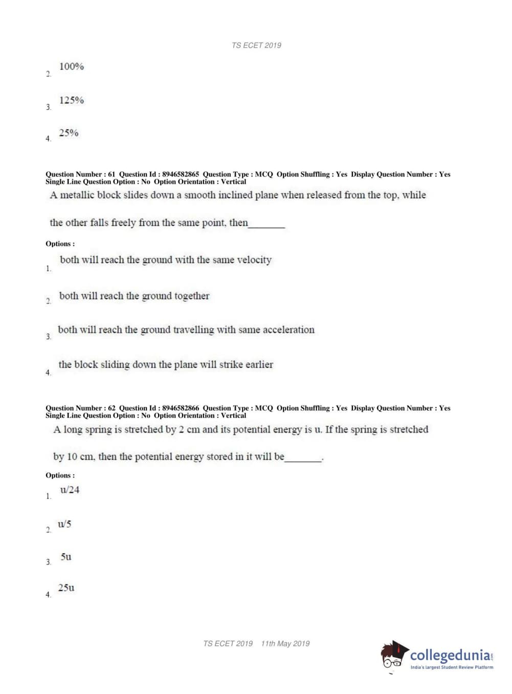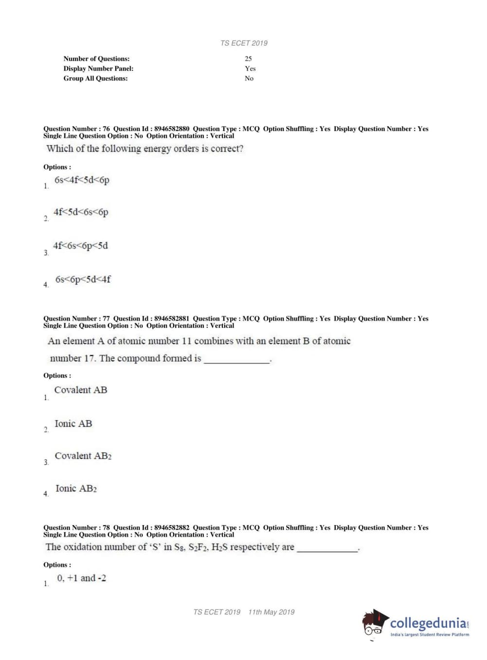 | TS ECET 2019 ELECTRONICS & INSTRUMENTATION ENGINEERING Question Paper PDF | TS ECET 2019 ELECTRONICS & INSTRUMENTATION ENGINEERING Answer Key PDF |