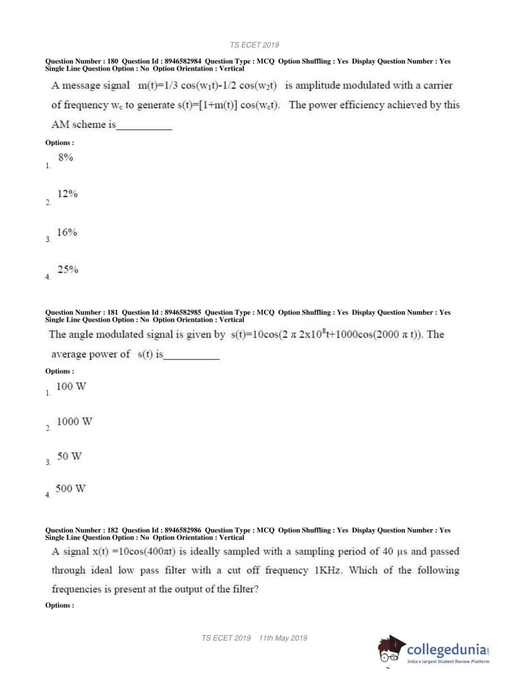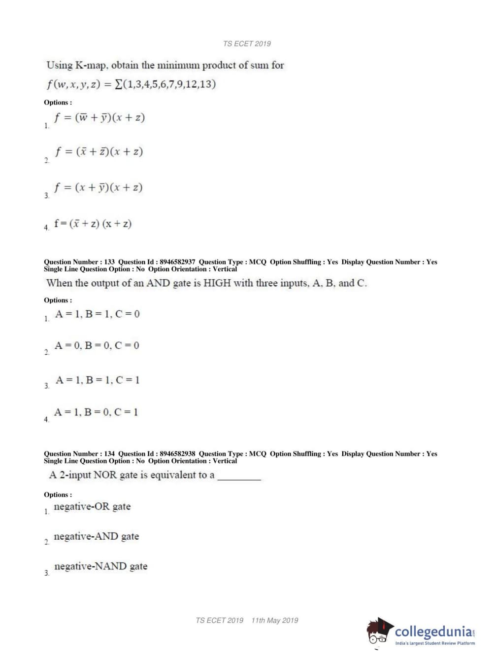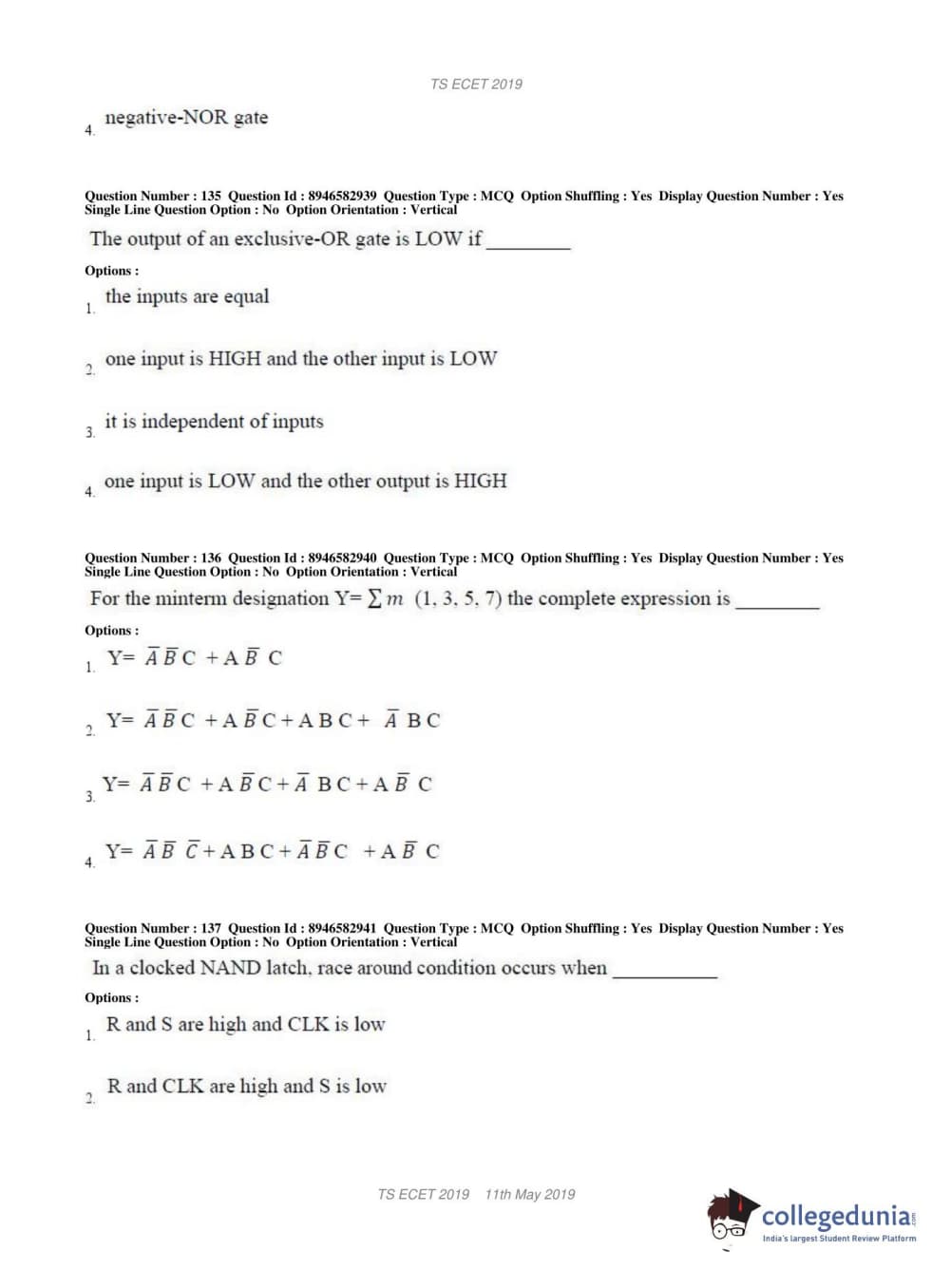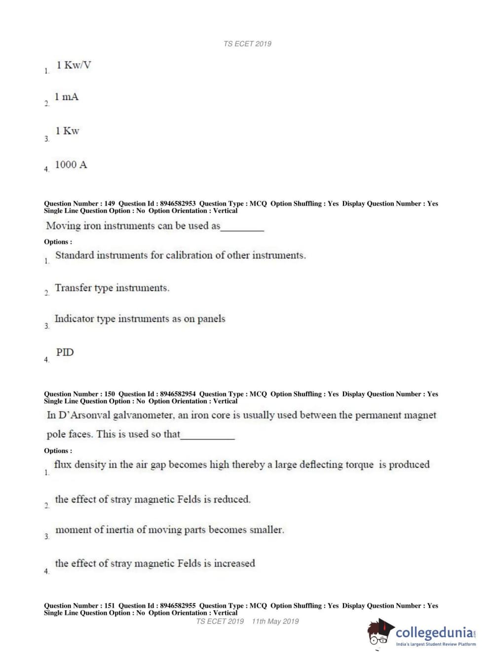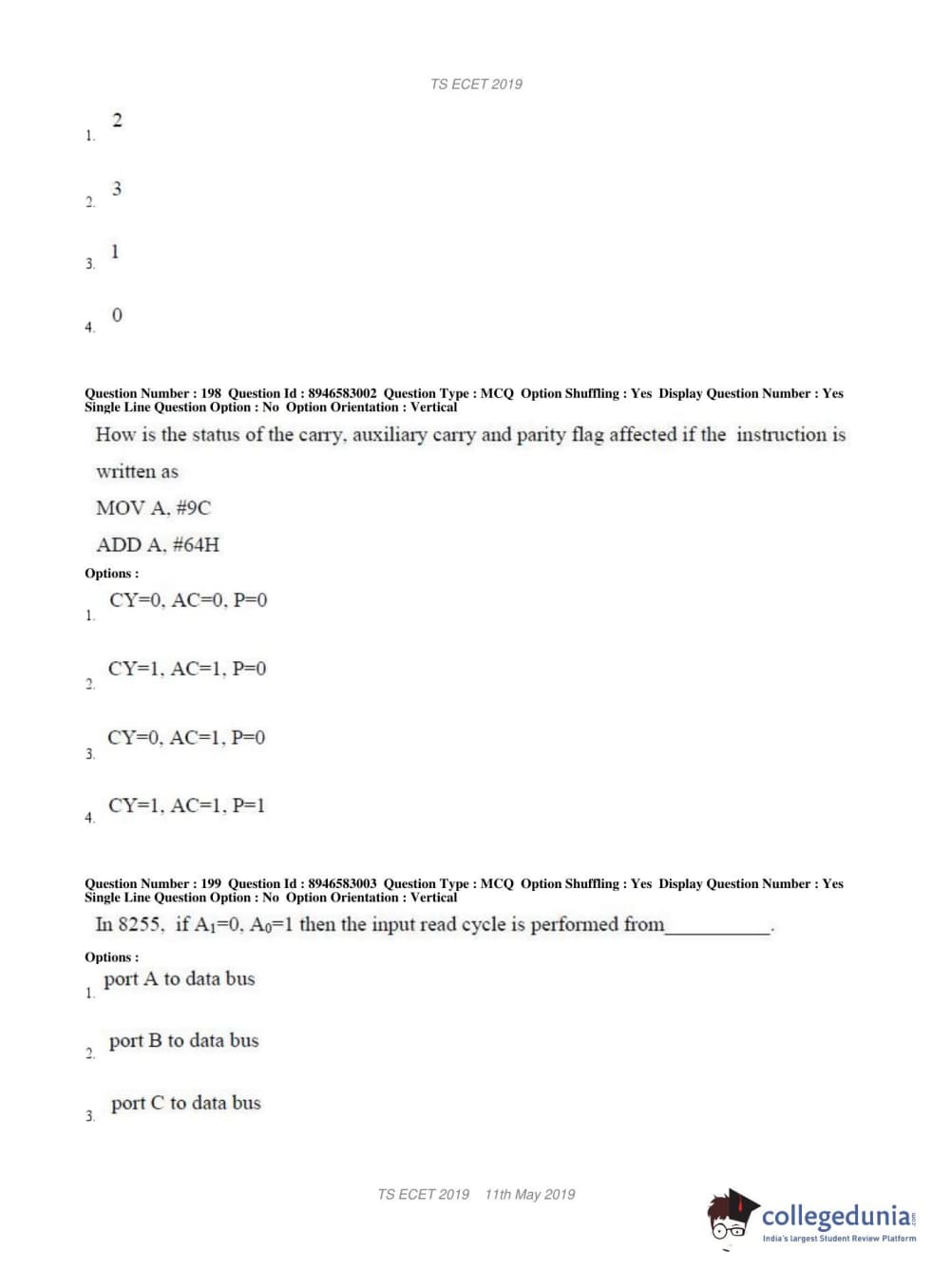 TS ECET 2019 ELECTRONICS & INSTRUMENTATION ENGINEERING Question paper with answer key pdf conducted on May 11, 2019 in Shift 1 is available for download. The exam was successfully organized by Jawaharlal Nehru Technological University Hyderabad. The question paper comprised a total of 200 questions.