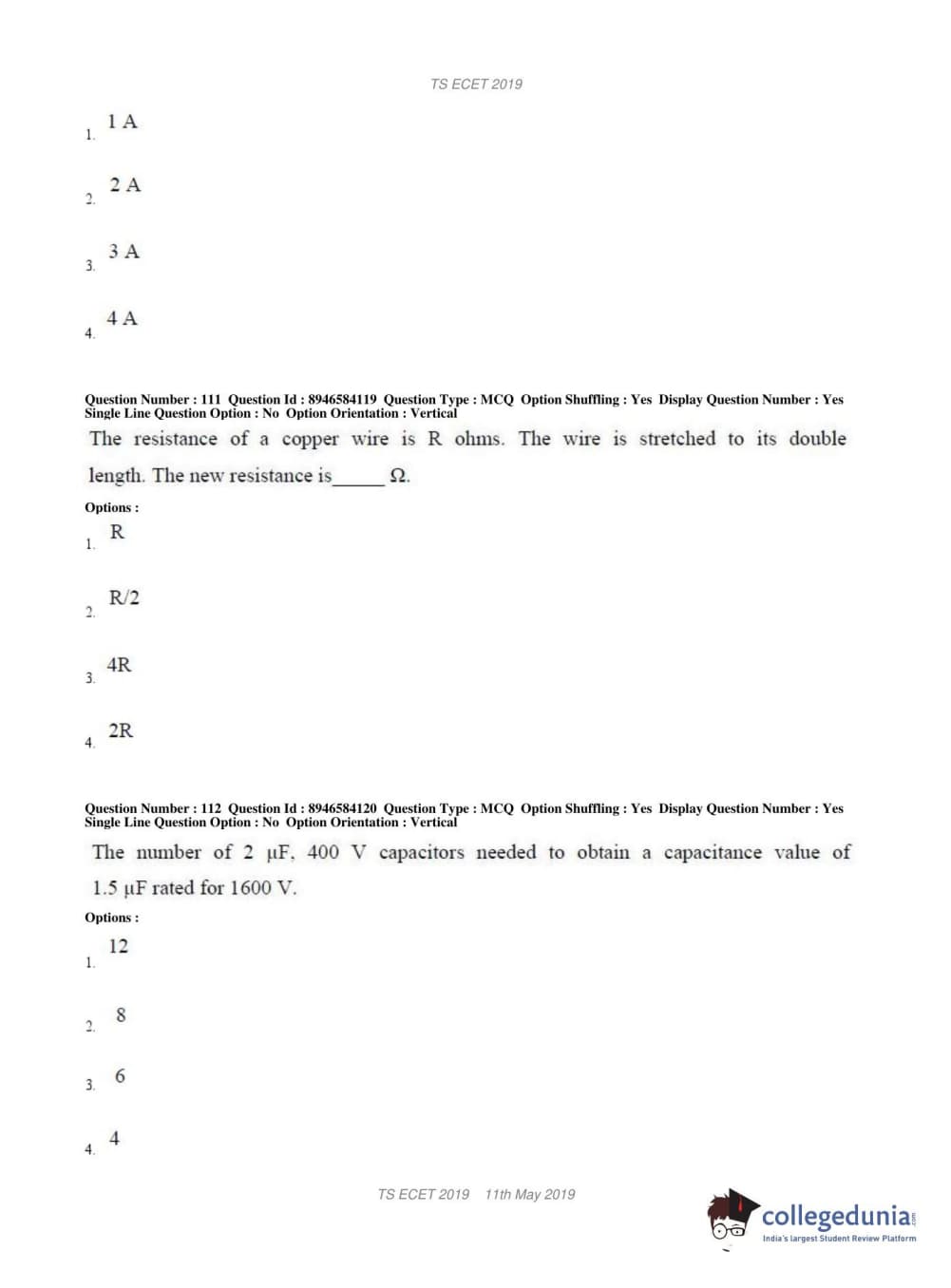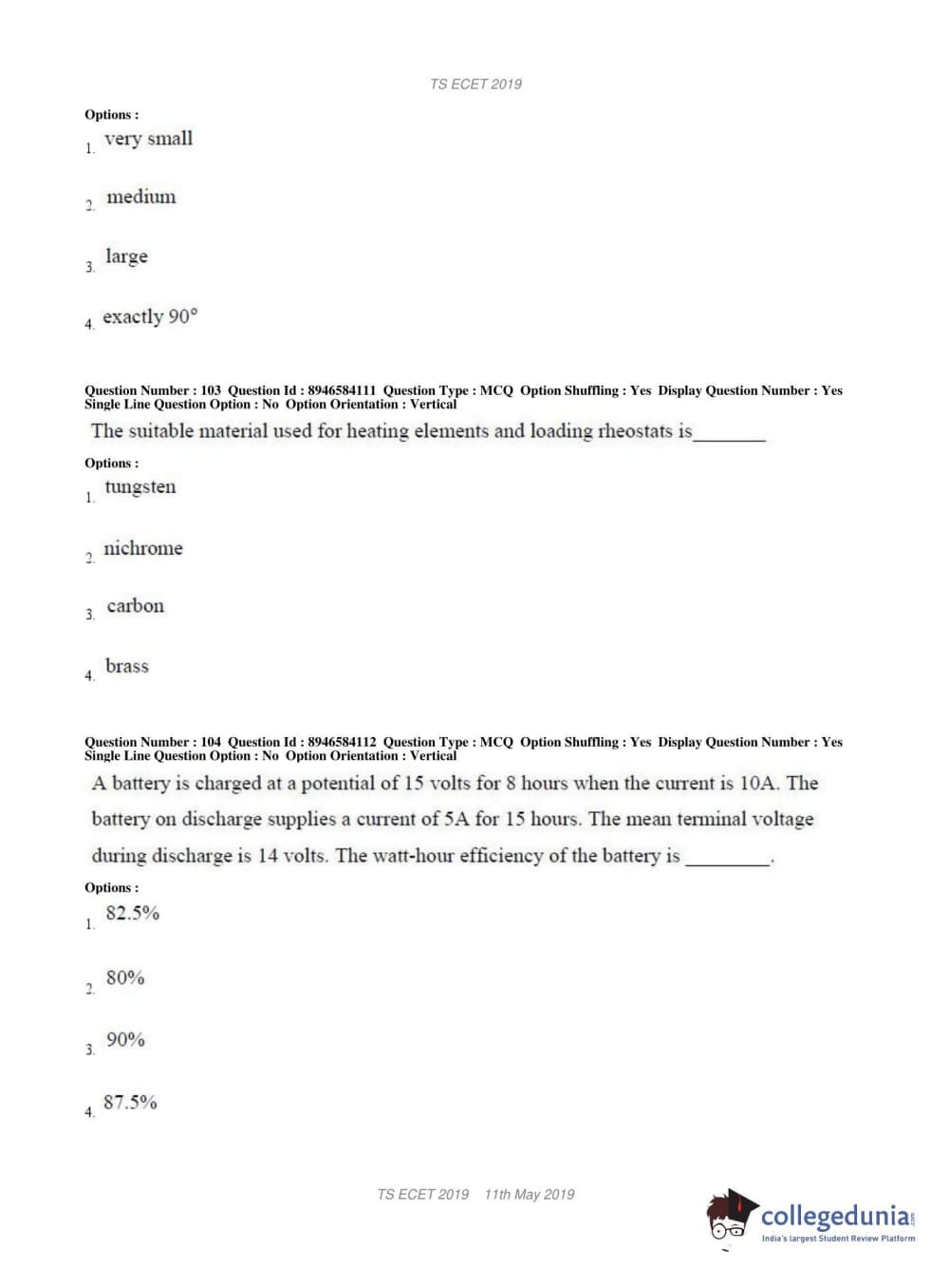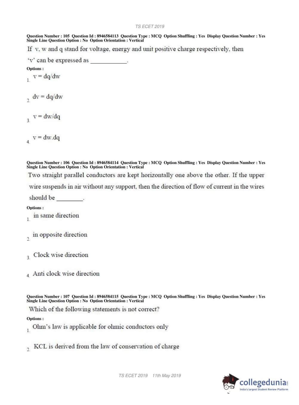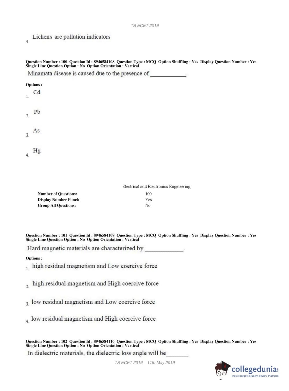 | TS ECET 2019 ELECTRICAL & ELECTRONICS ENGINEERING Question Paper PDF | TS ECET 2019 ELECTRICAL & ELECTRONICS ENGINEERING Answer Key PDF |