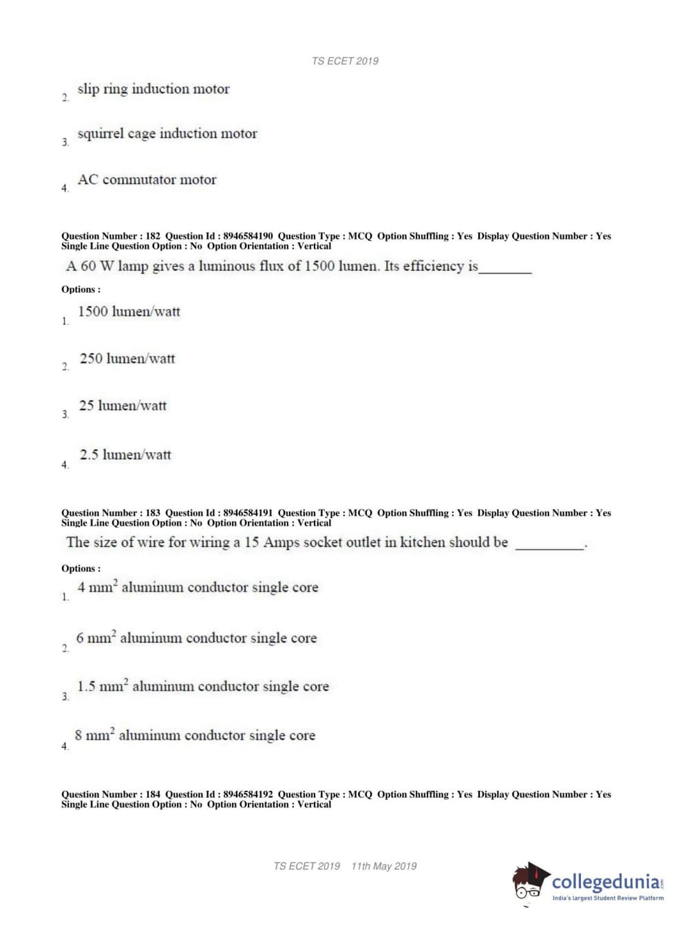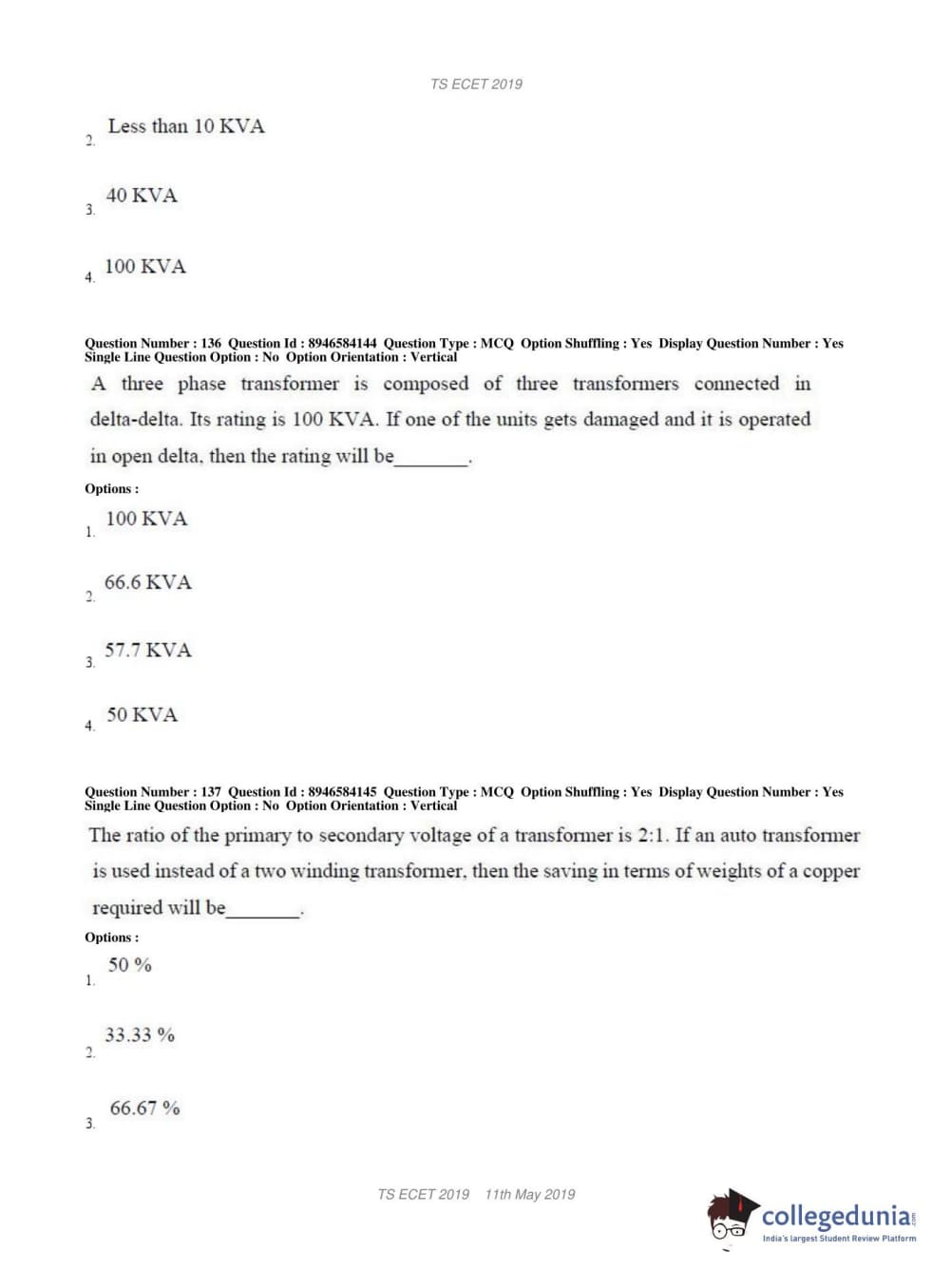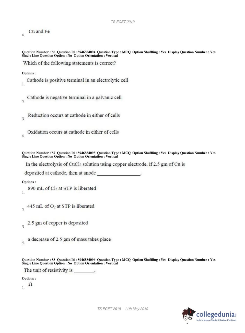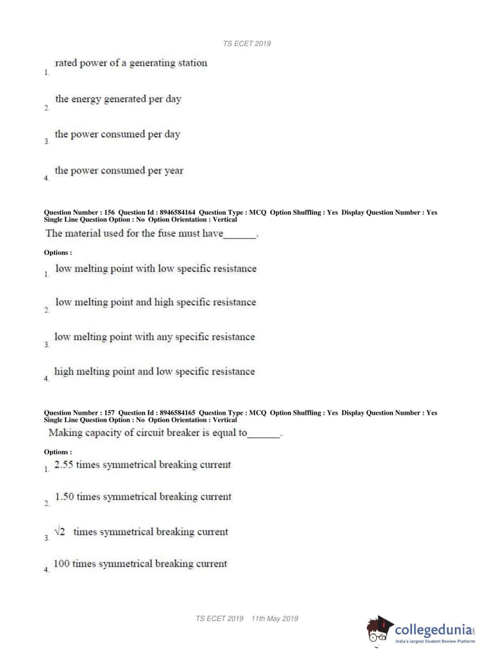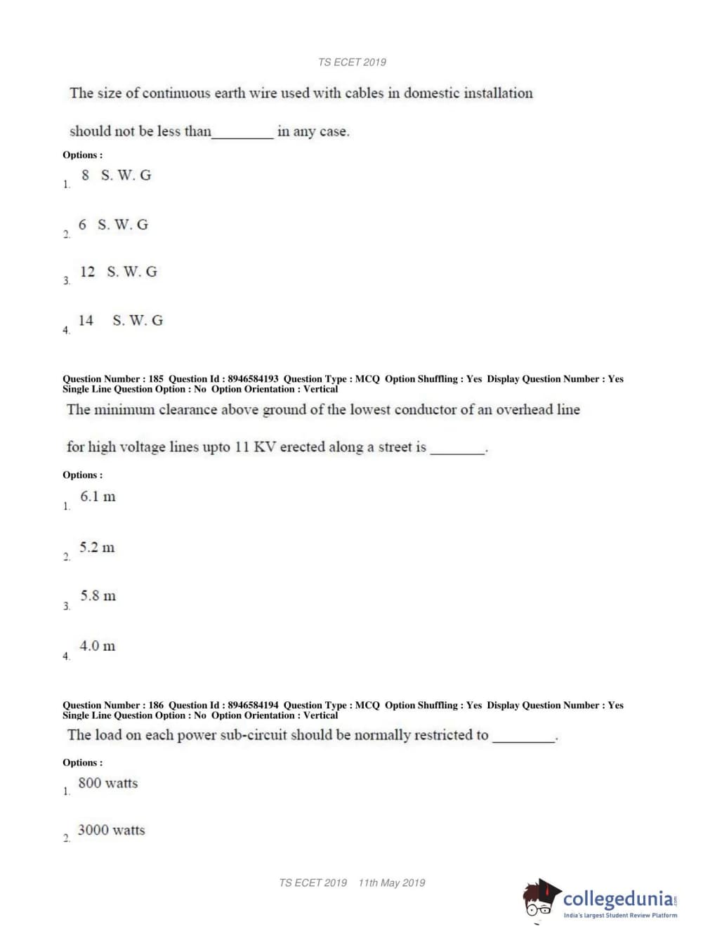 | TS ECET 2019 ELECTRICAL & ELECTRONICS ENGINEERING Question Paper PDF | TS ECET 2019 ELECTRICAL & ELECTRONICS ENGINEERING Answer Key PDF |