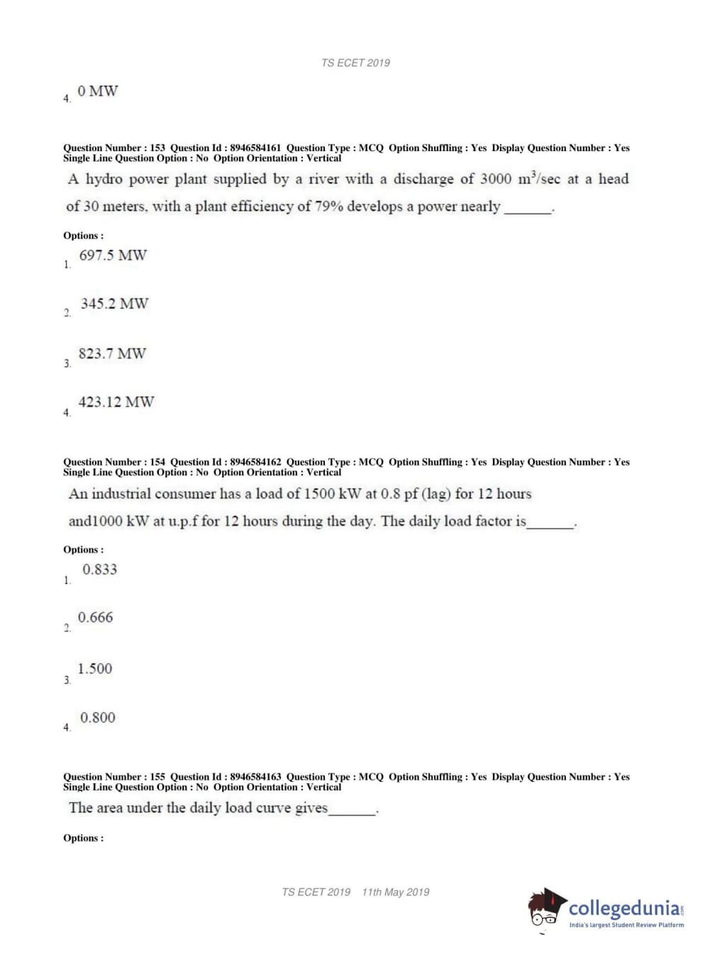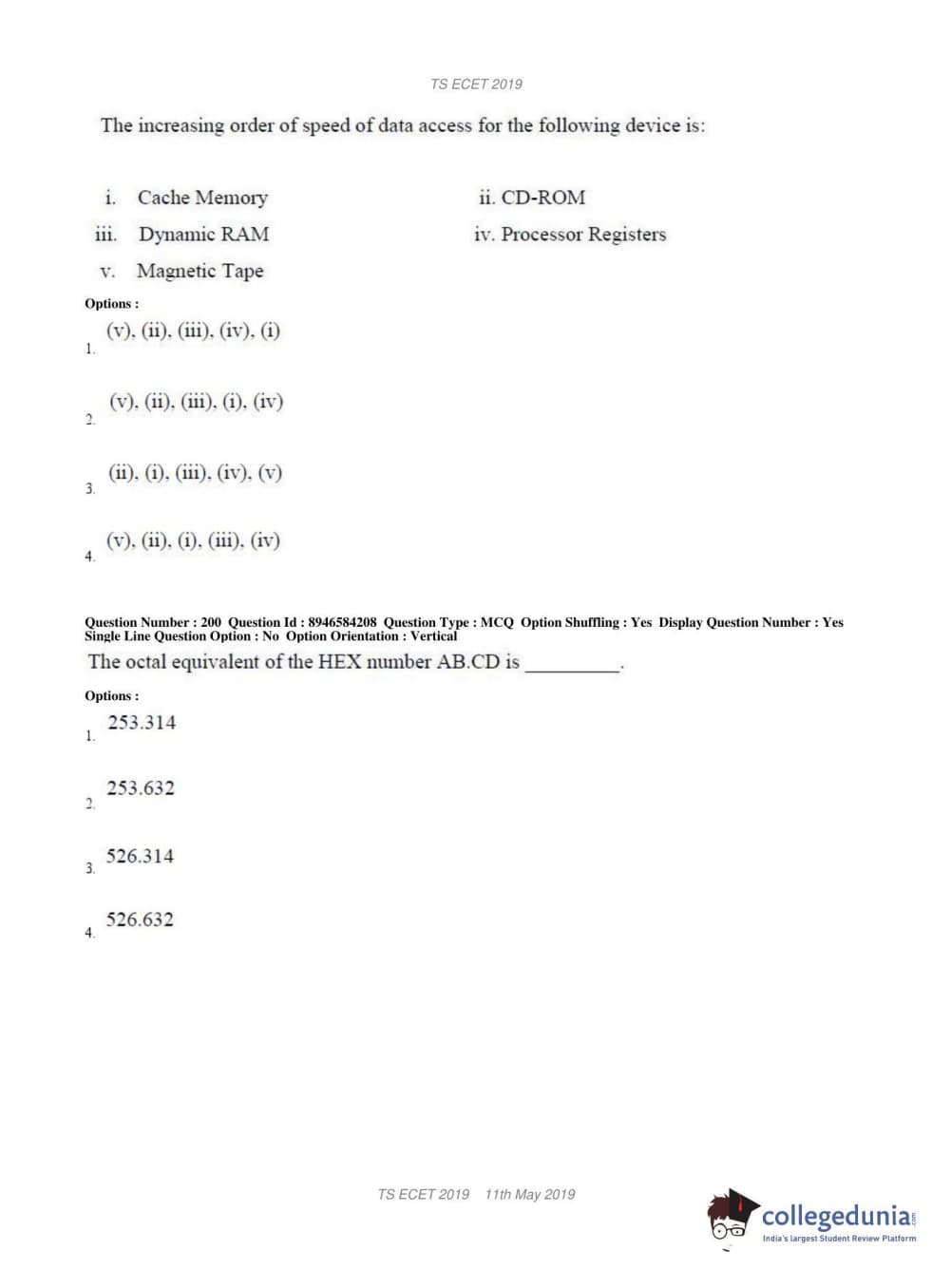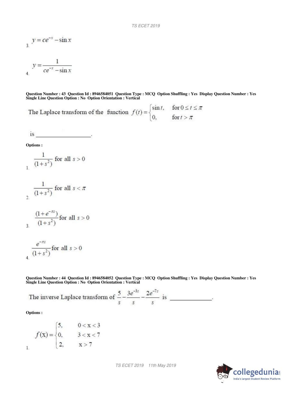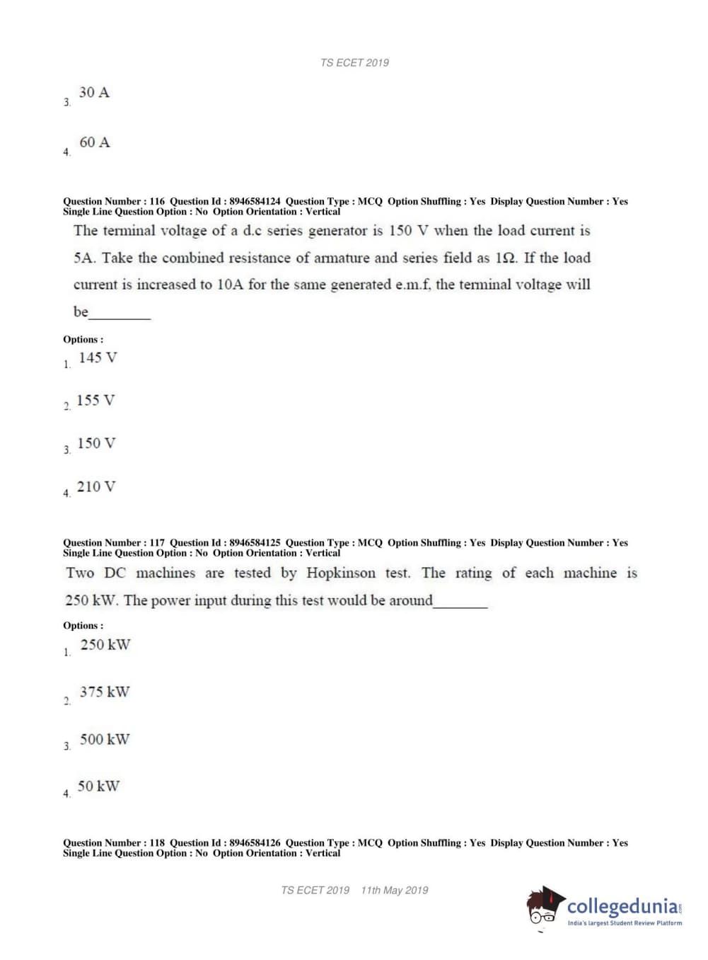 | TS ECET 2019 ELECTRICAL & ELECTRONICS ENGINEERING Question Paper PDF | TS ECET 2019 ELECTRICAL & ELECTRONICS ENGINEERING Answer Key PDF |