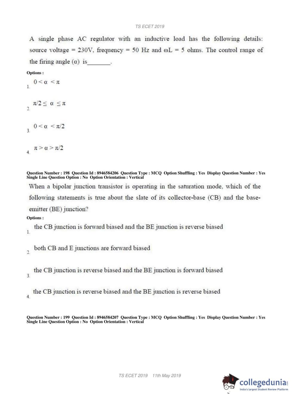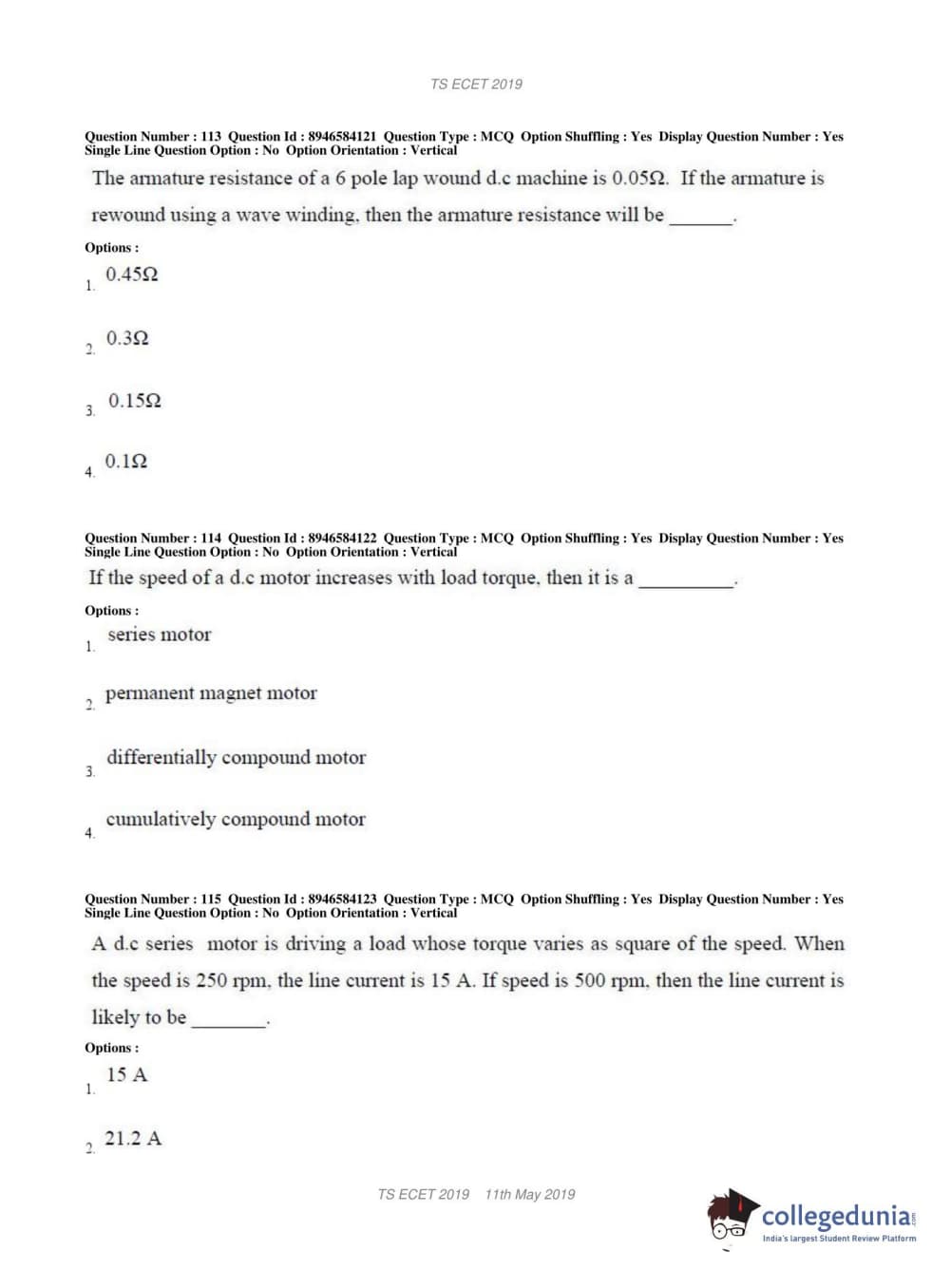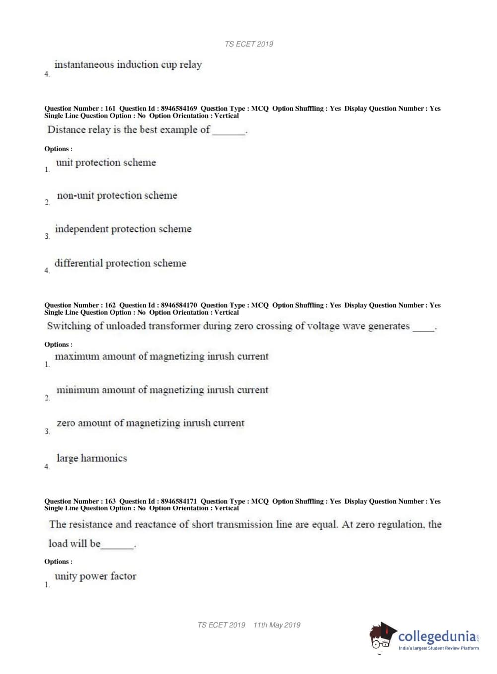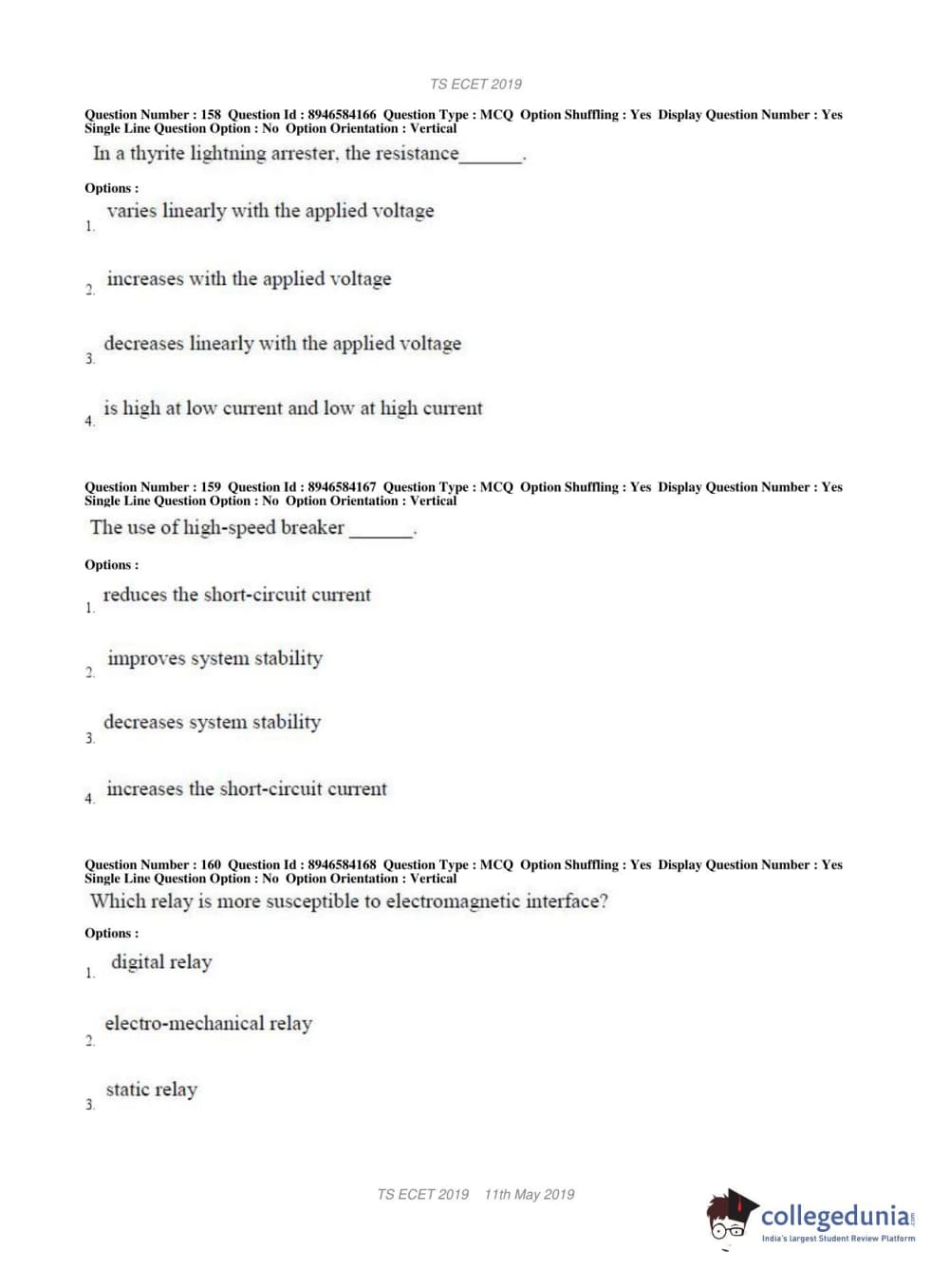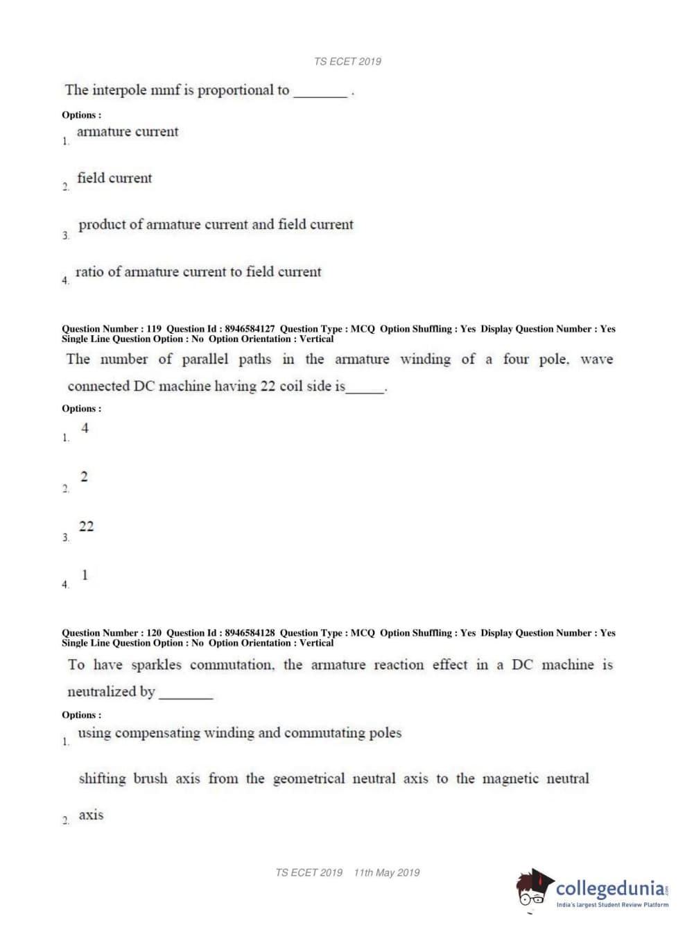 TS ECET 2019 ELECTRICAL & ELECTRONICS ENGINEERING Question Paper with Answer Key PDFs Shift 1