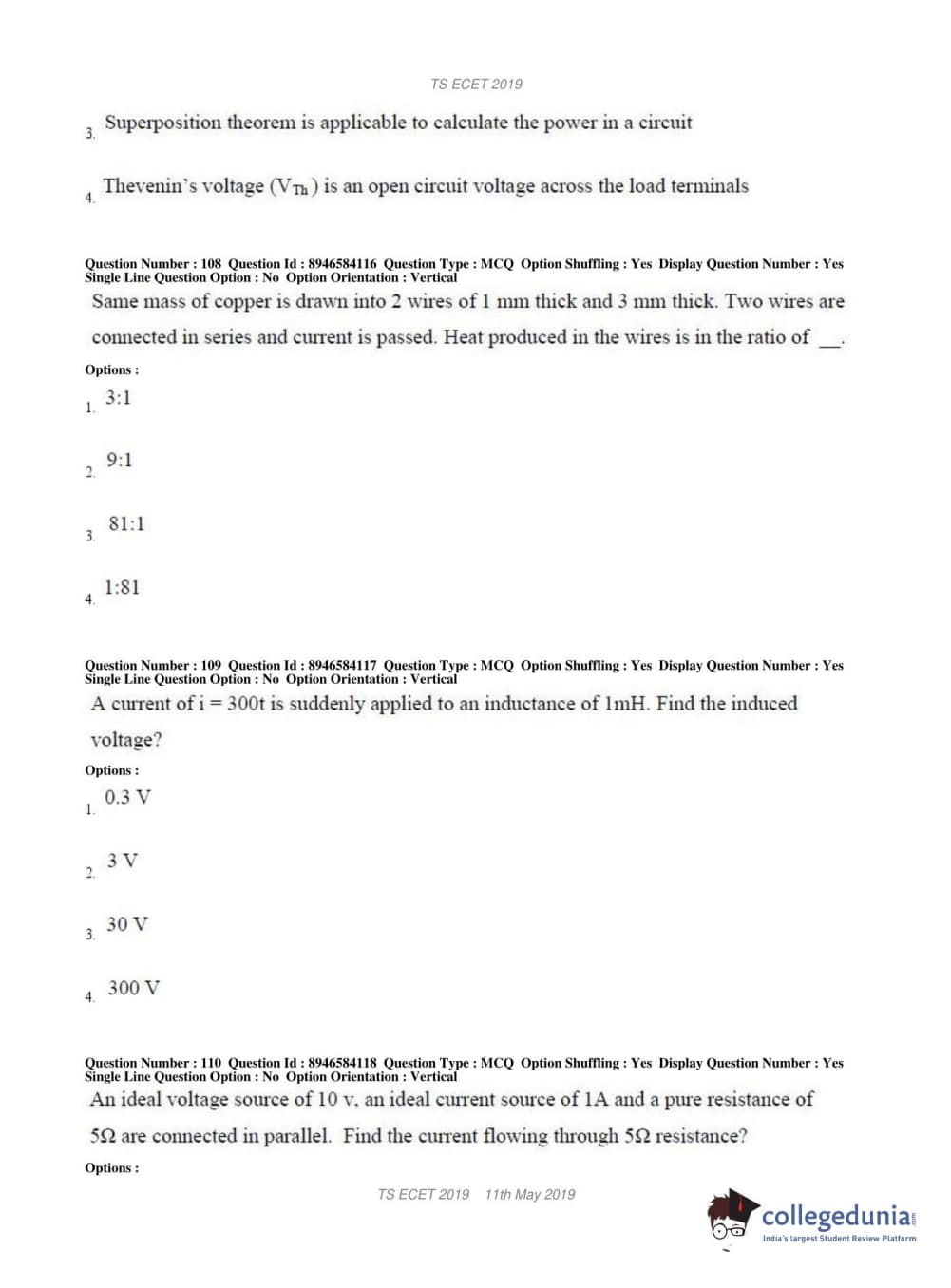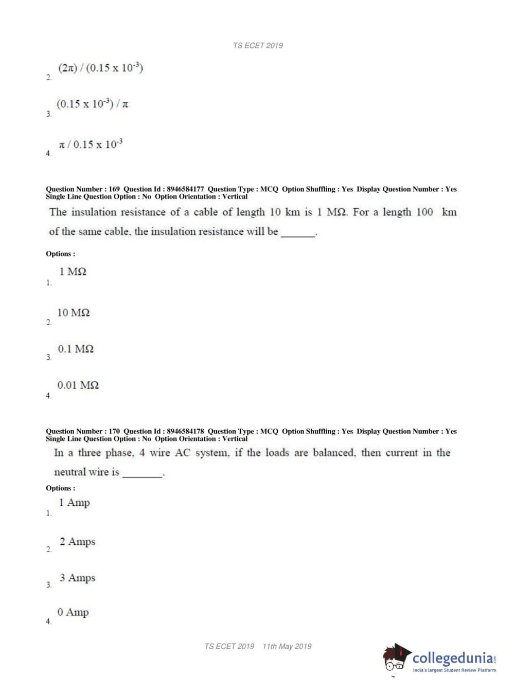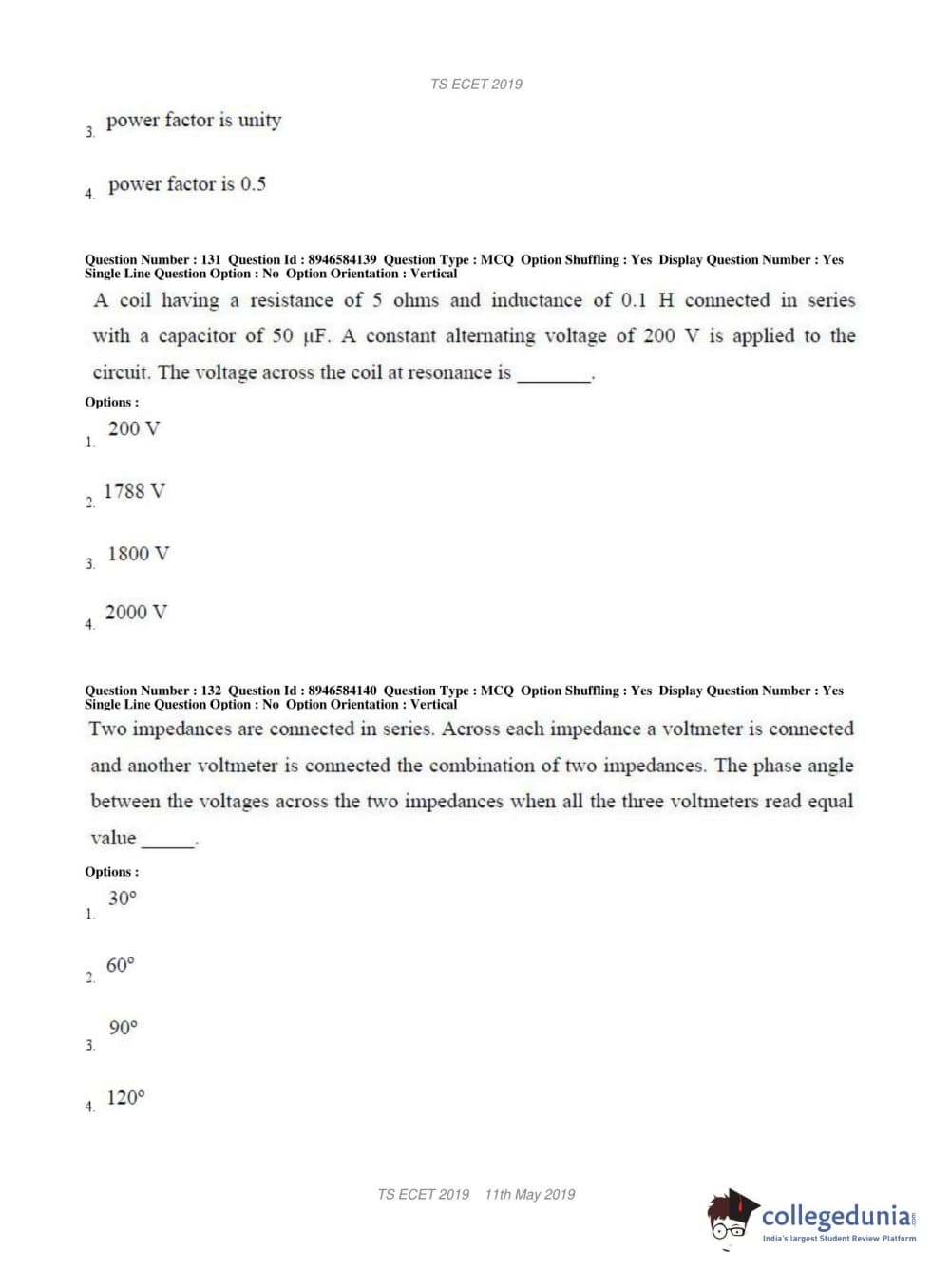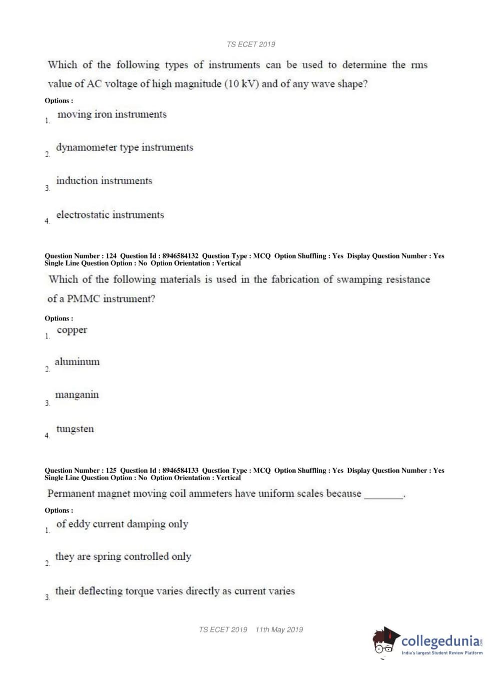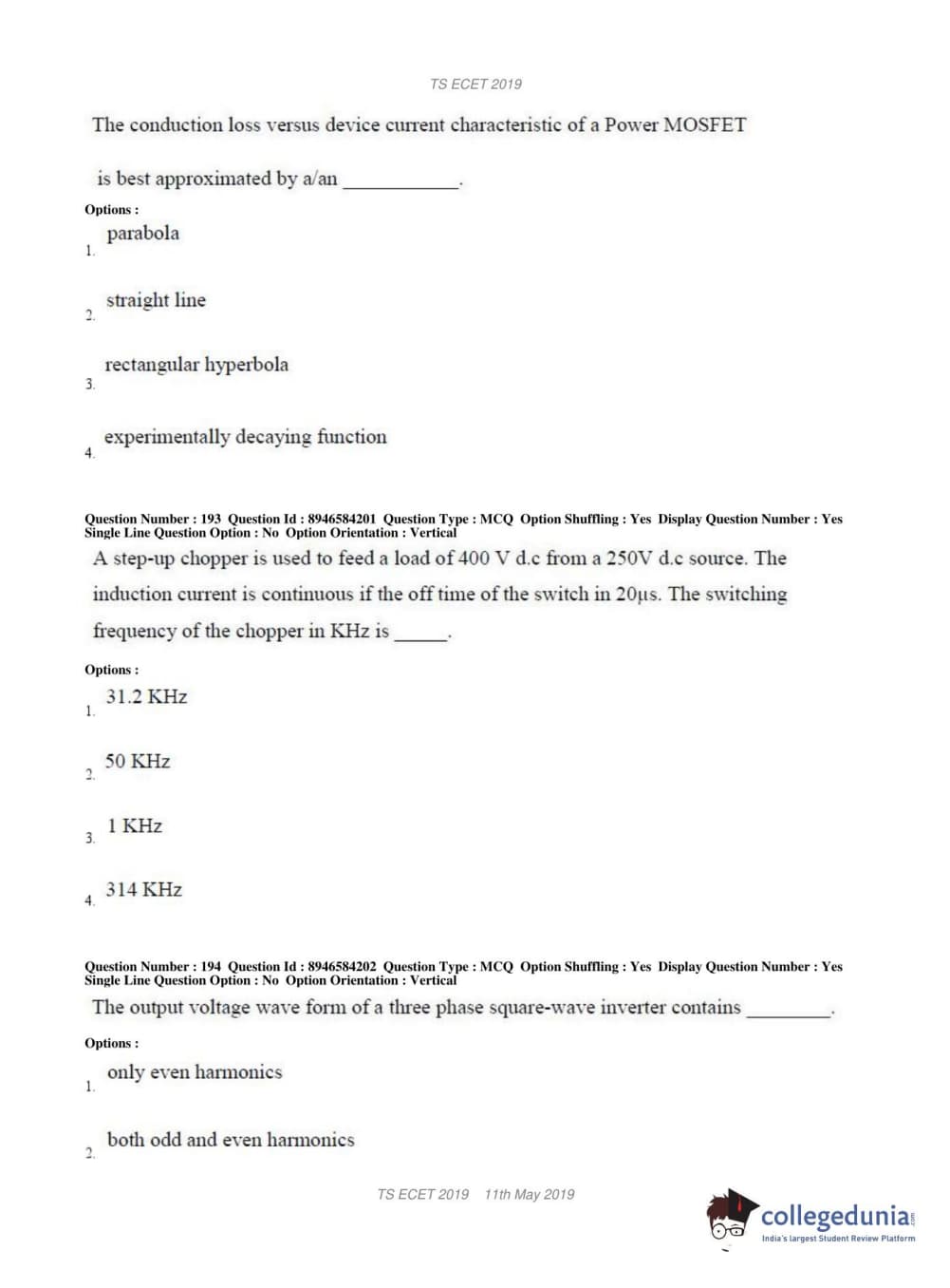 TS ECET 2019 ELECTRICAL & ELECTRONICS ENGINEERING Question Paper with Answer Key PDFs Shift 1