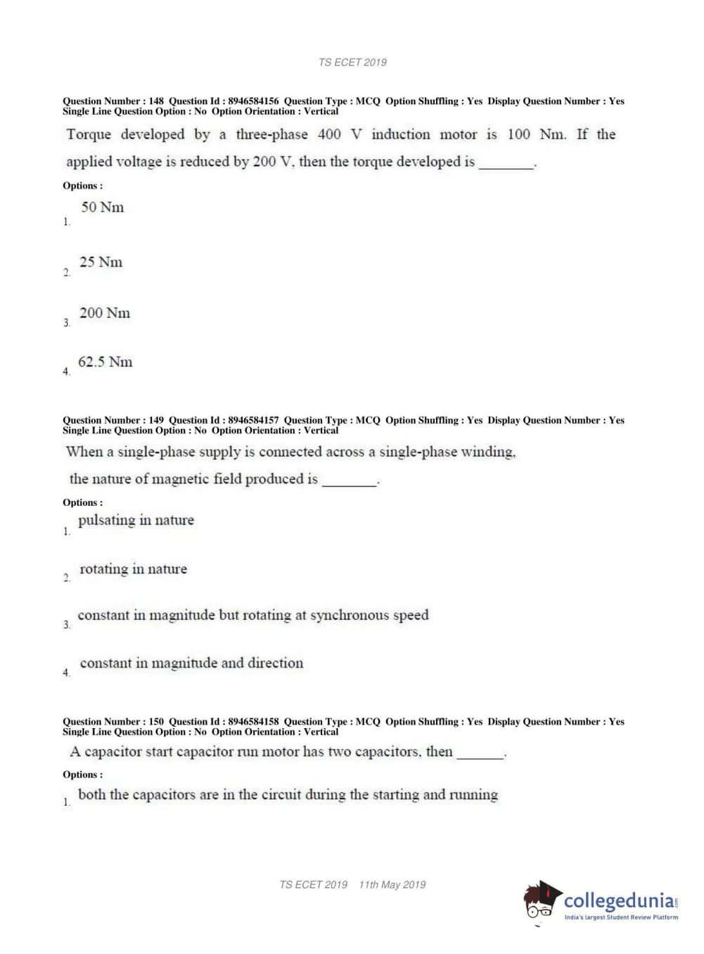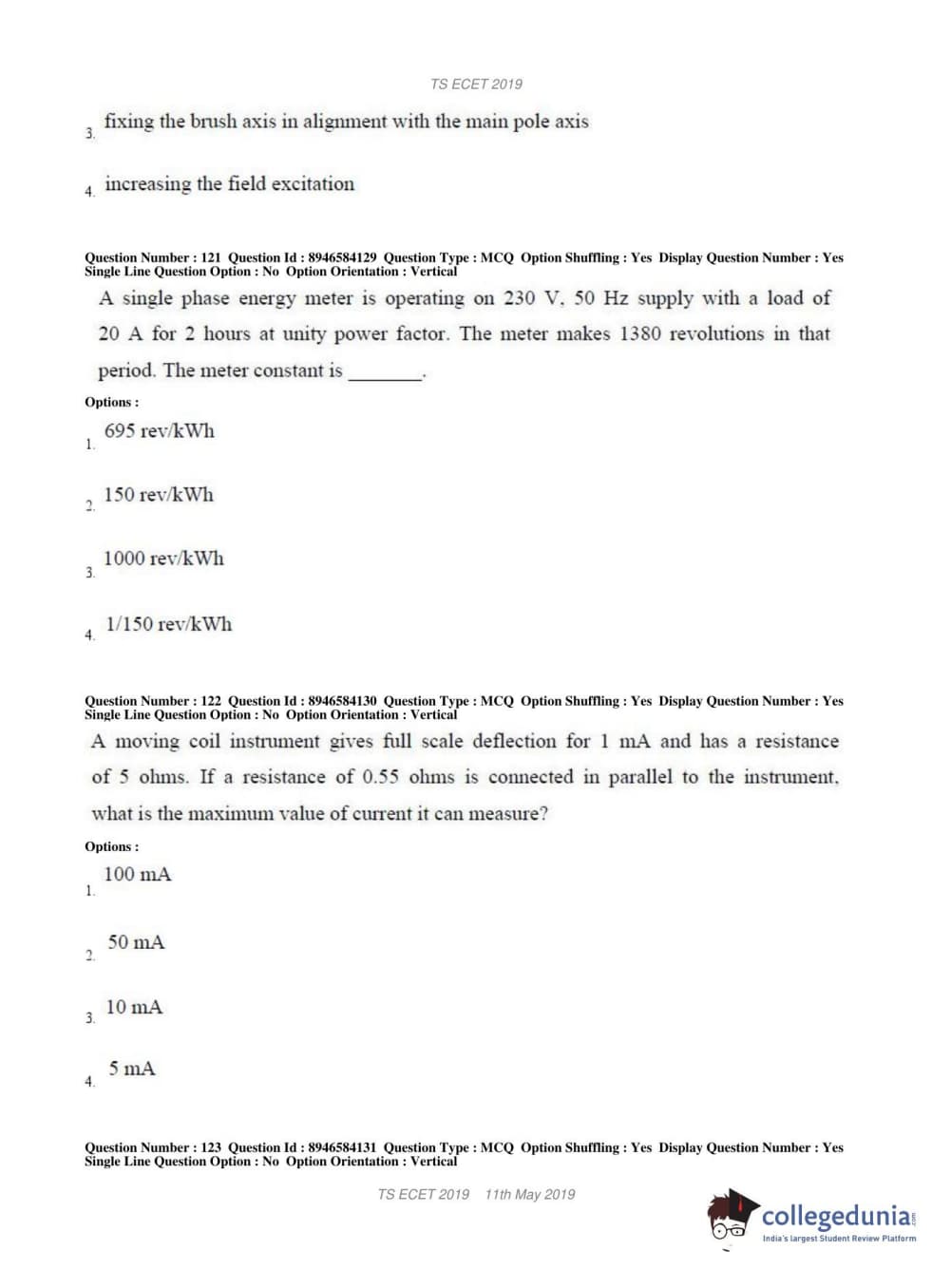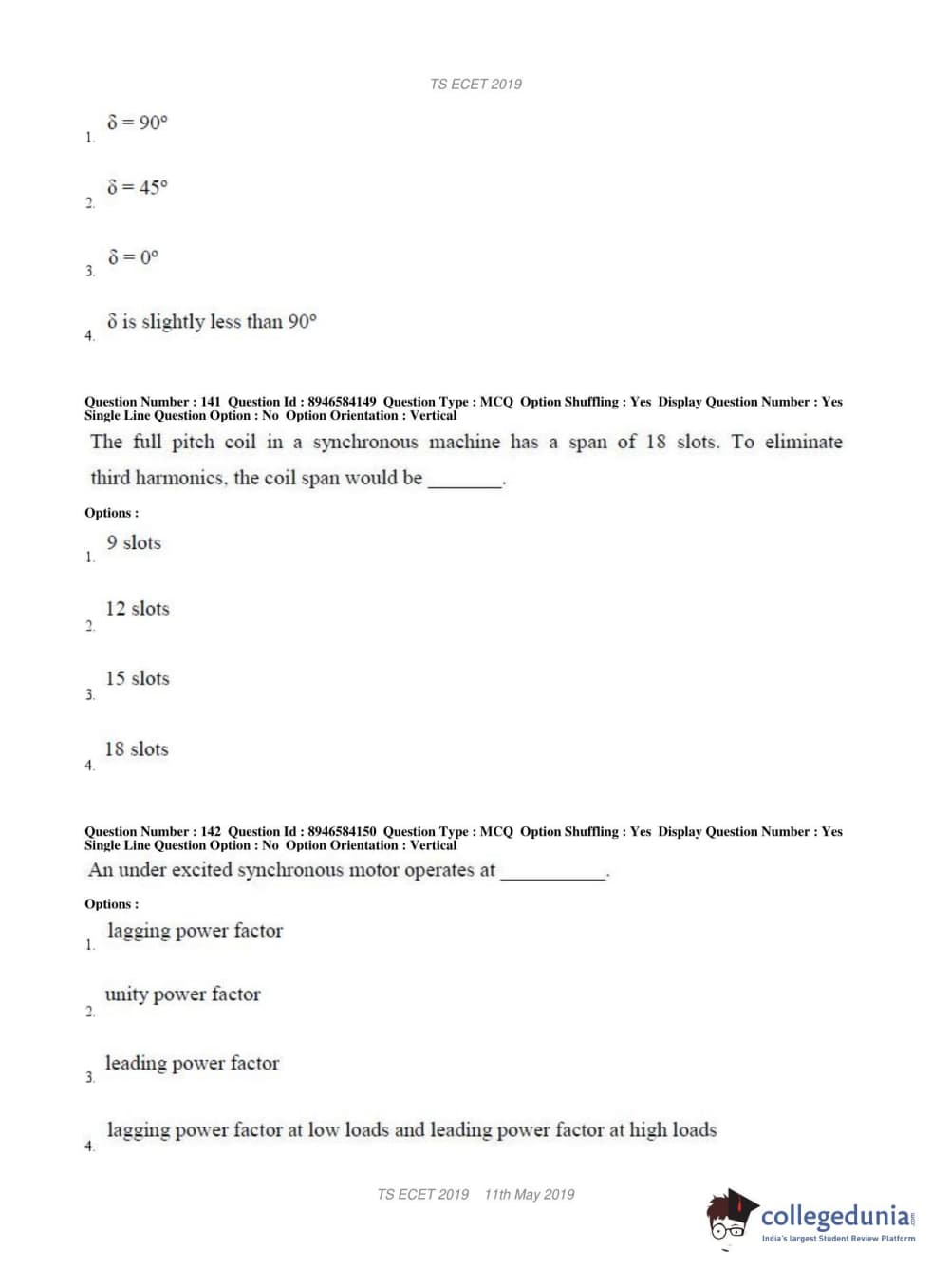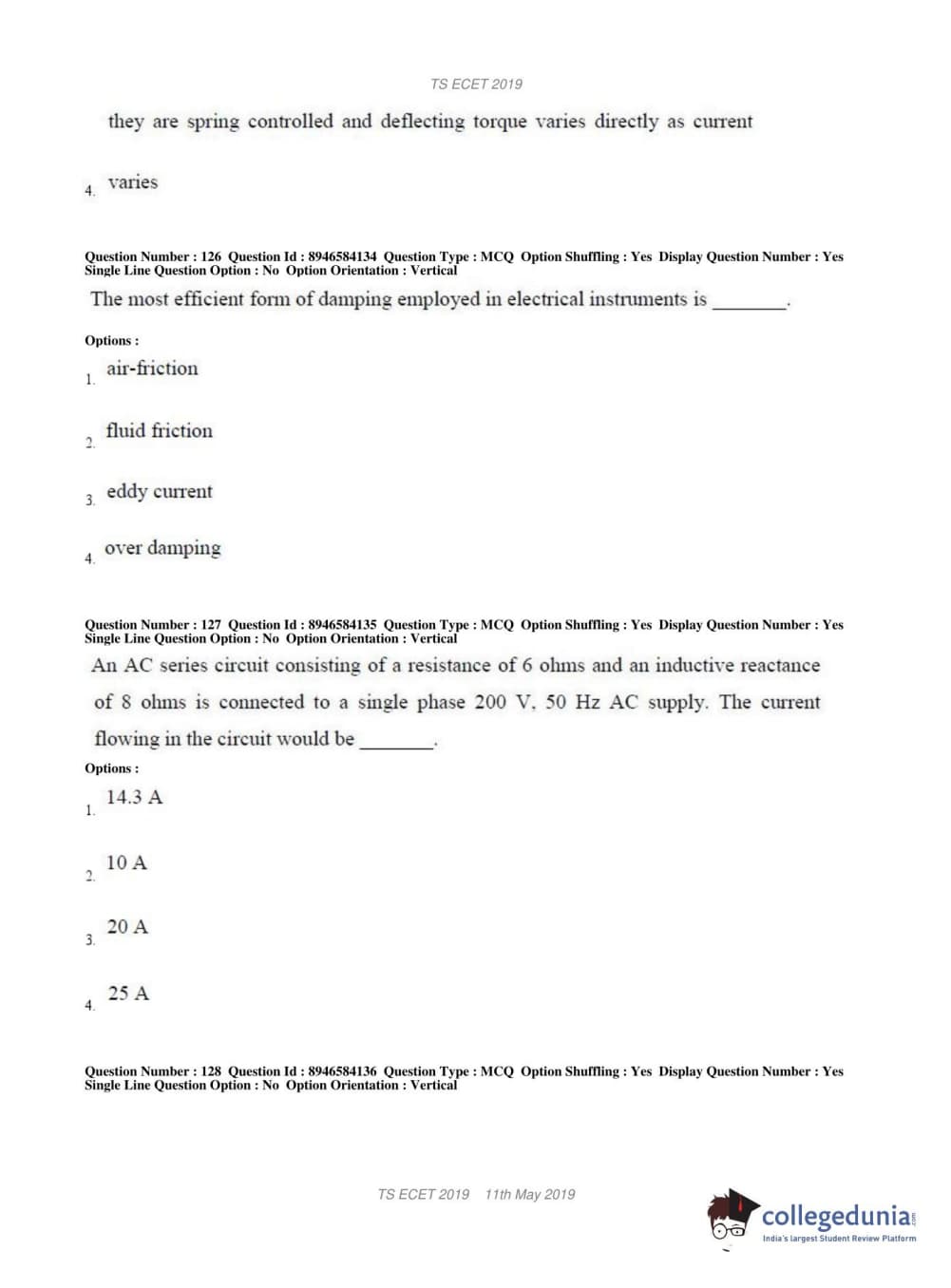 TS ECET 2019 ELECTRICAL & ELECTRONICS ENGINEERING Question Paper with Answer Key PDFs Shift 1