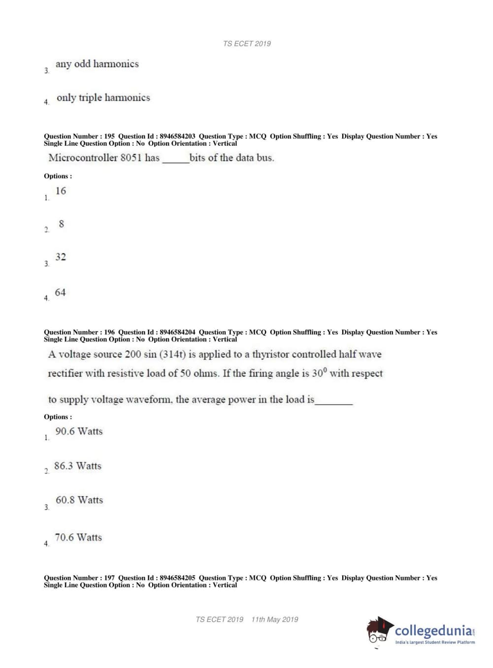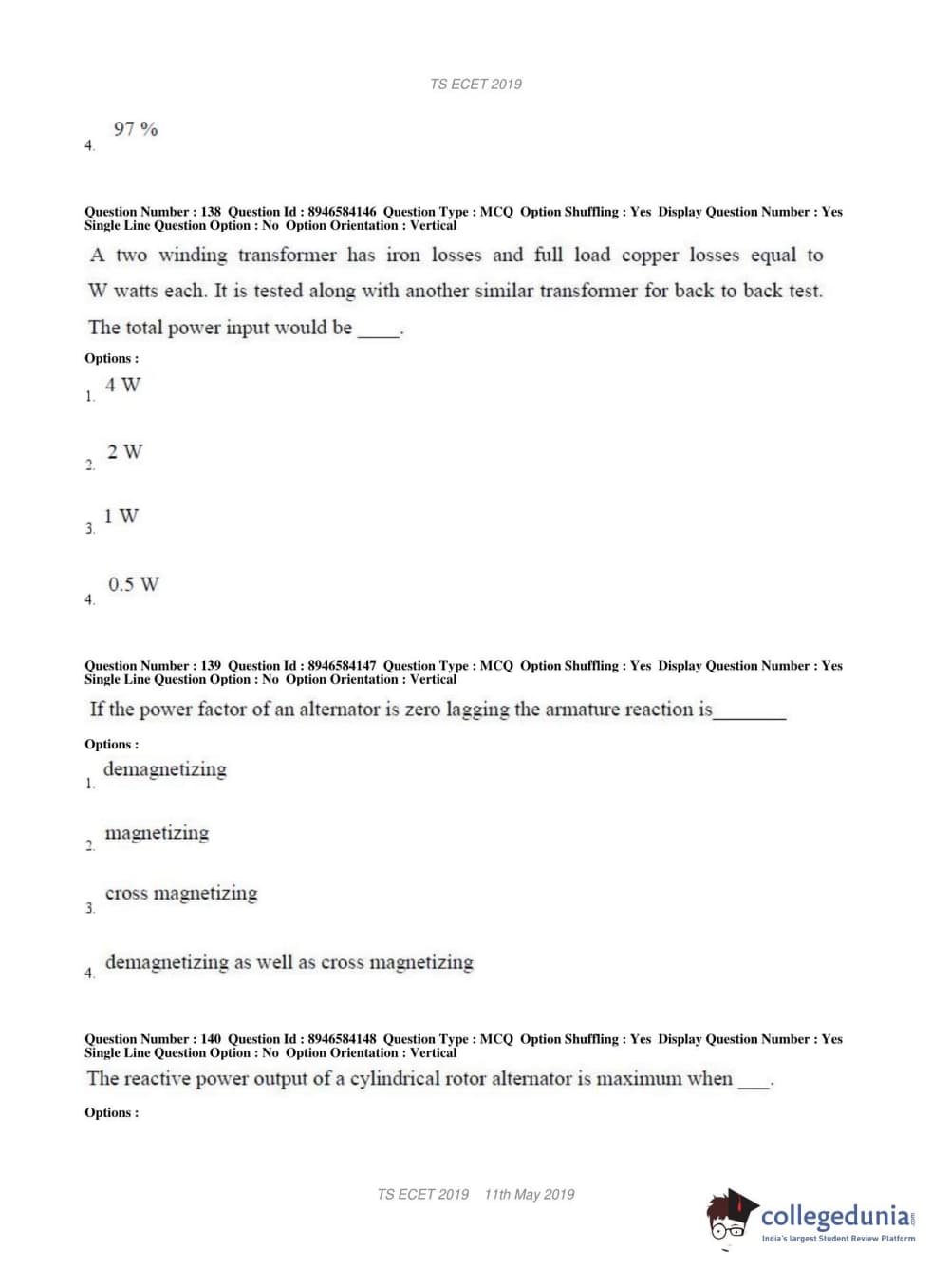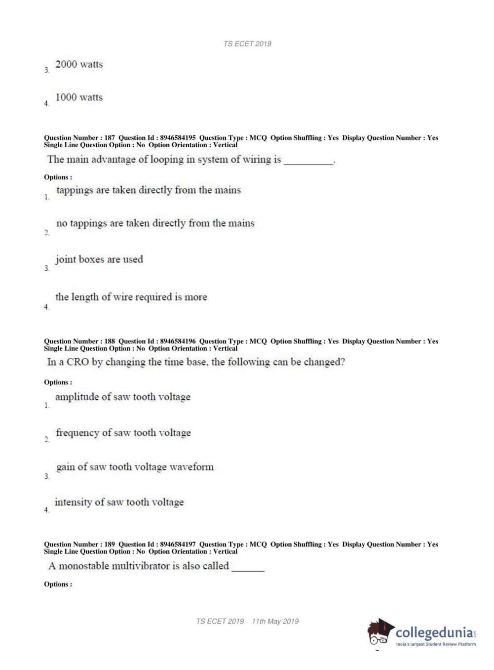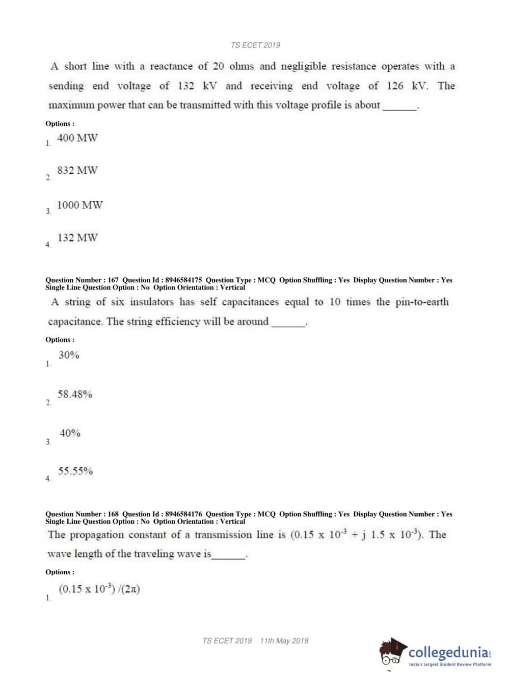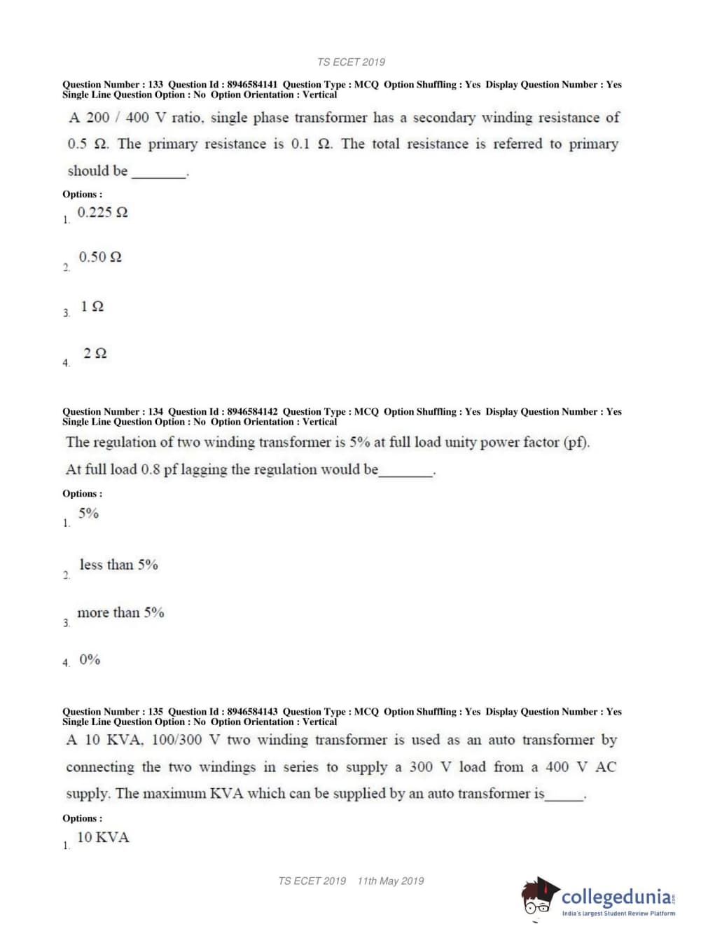 TS ECET 2019 ELECTRICAL & ELECTRONICS ENGINEERING Question Paper with Answer Key PDFs Shift 1