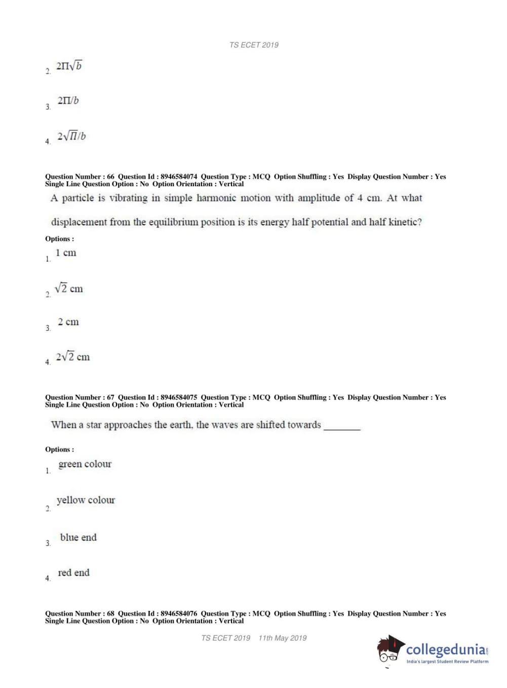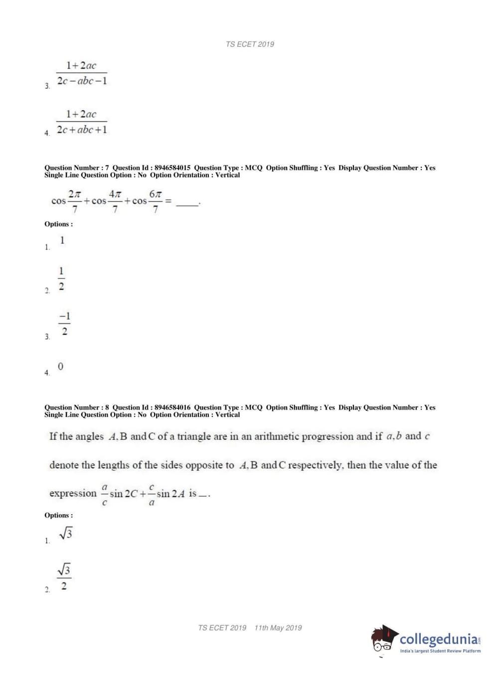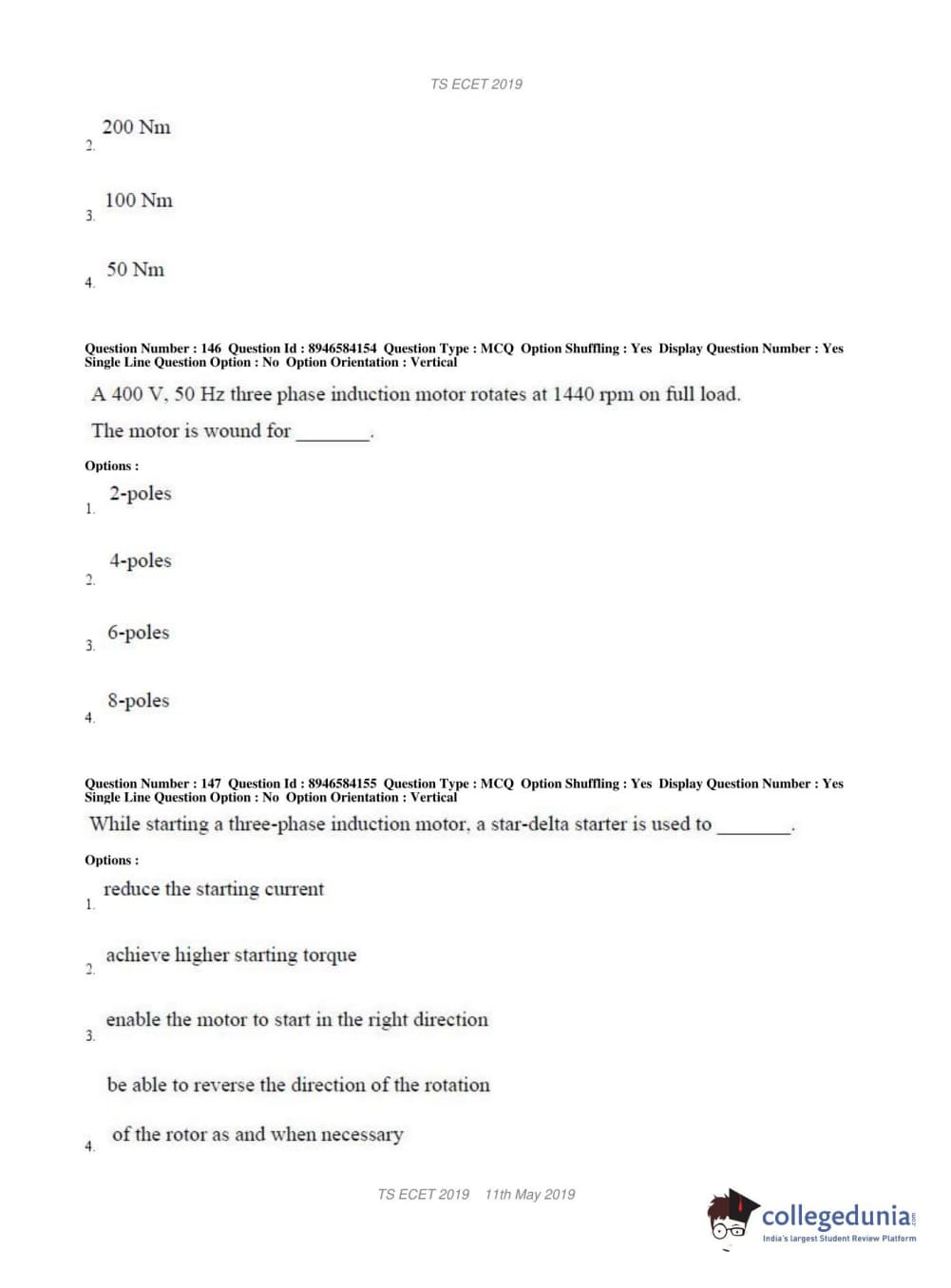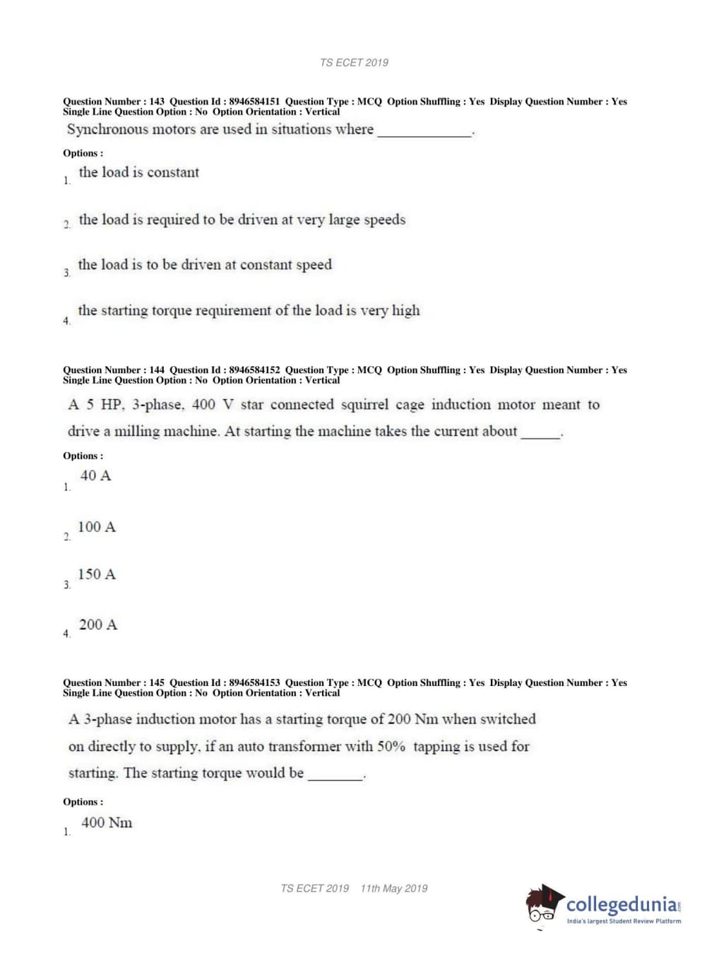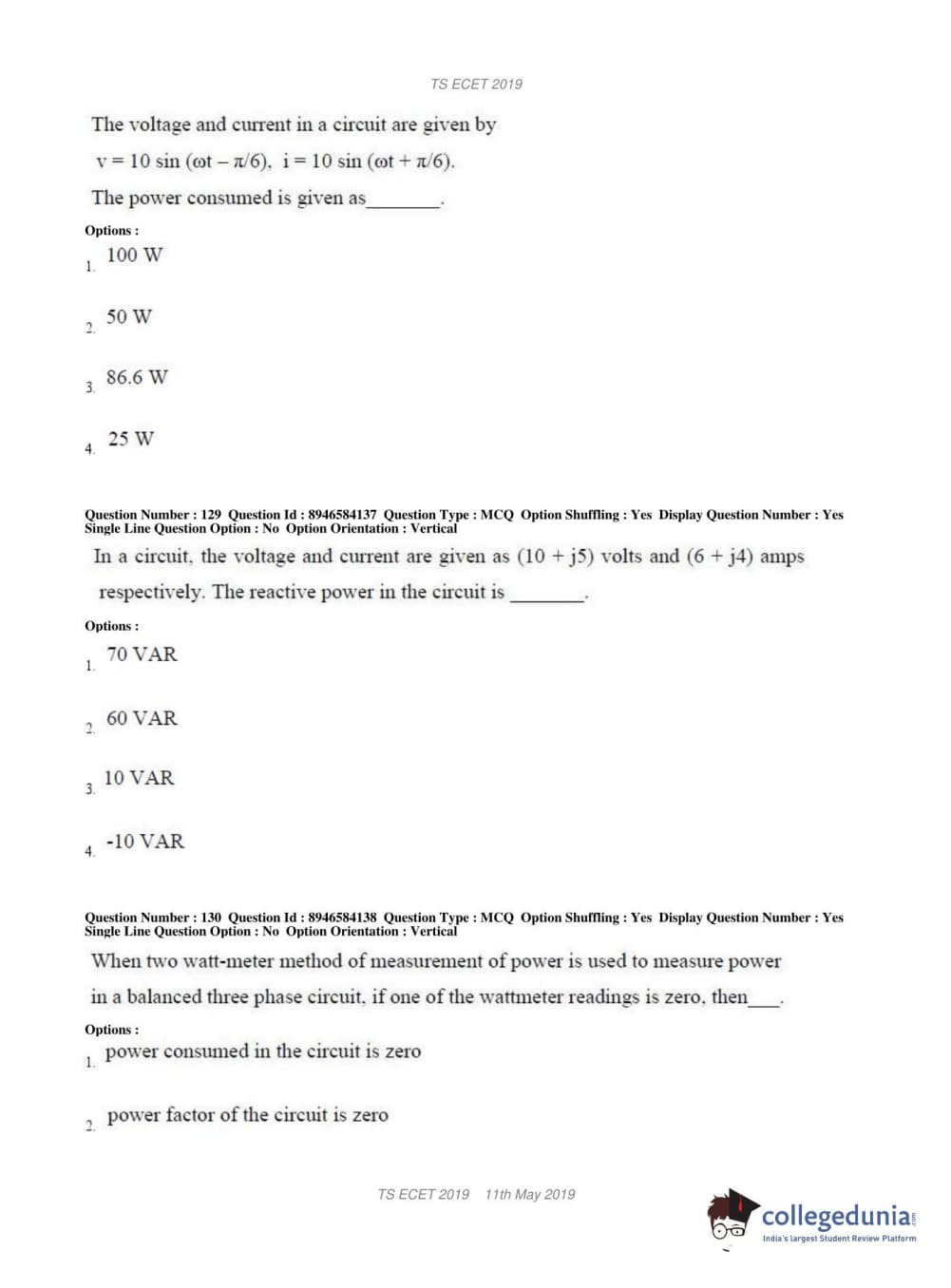 TS ECET 2019 ELECTRICAL & ELECTRONICS ENGINEERING Question Paper with Answer Key PDFs Shift 1