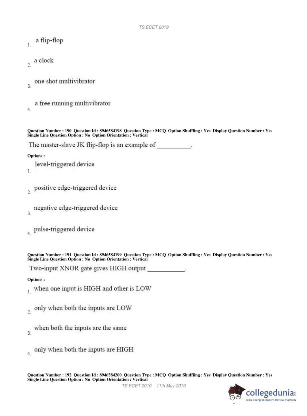TS ECET 2019 ELECTRICAL & ELECTRONICS ENGINEERING Question paper with answer key pdf conducted on May 11, 2019 in Shift 1 is available for download. The exam was successfully organized by Jawaharlal Nehru Technological University Hyderabad. The question paper comprised a total of 200 questions.