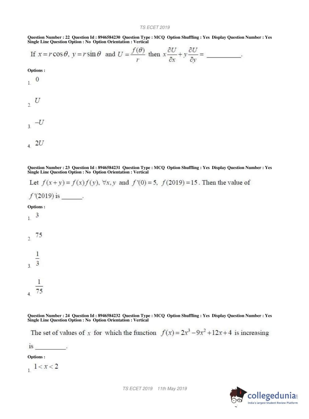 | TS ECET 2019 MECHANICAL ENGINEERING Question Paper PDF | TS ECET 2019 MECHANICAL ENGINEERING Answer Key PDF |