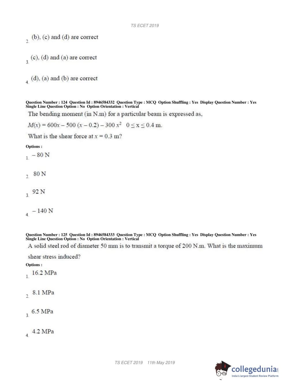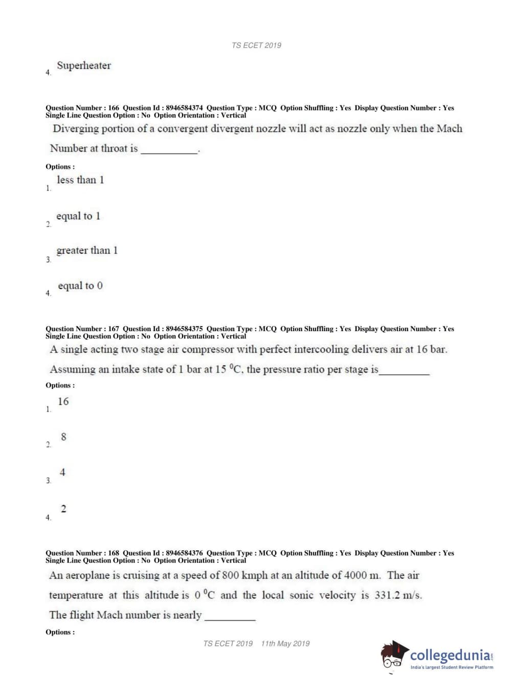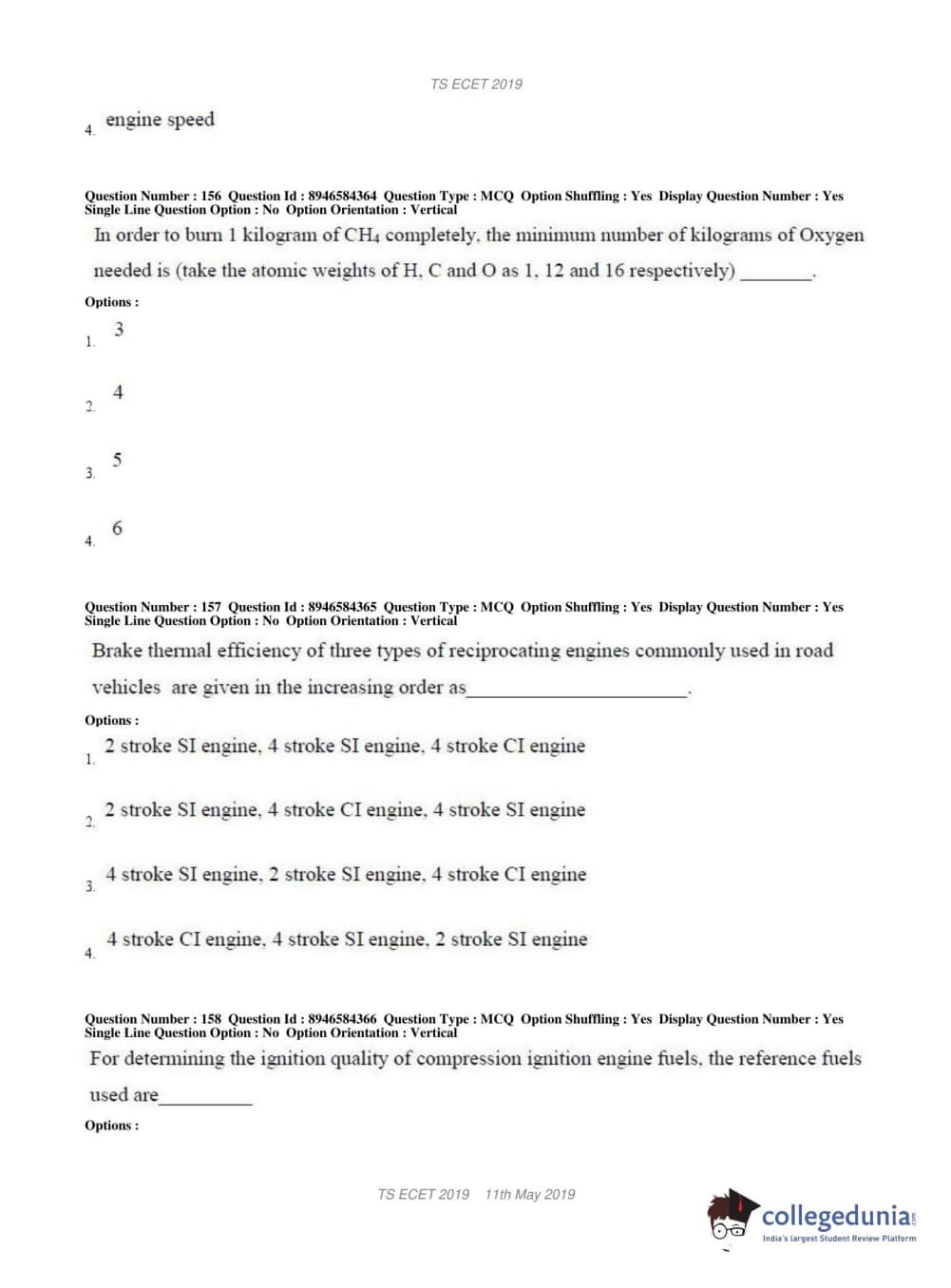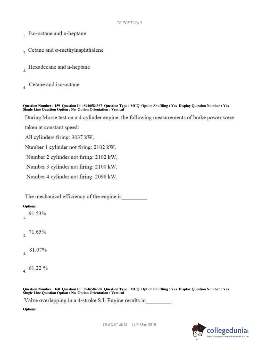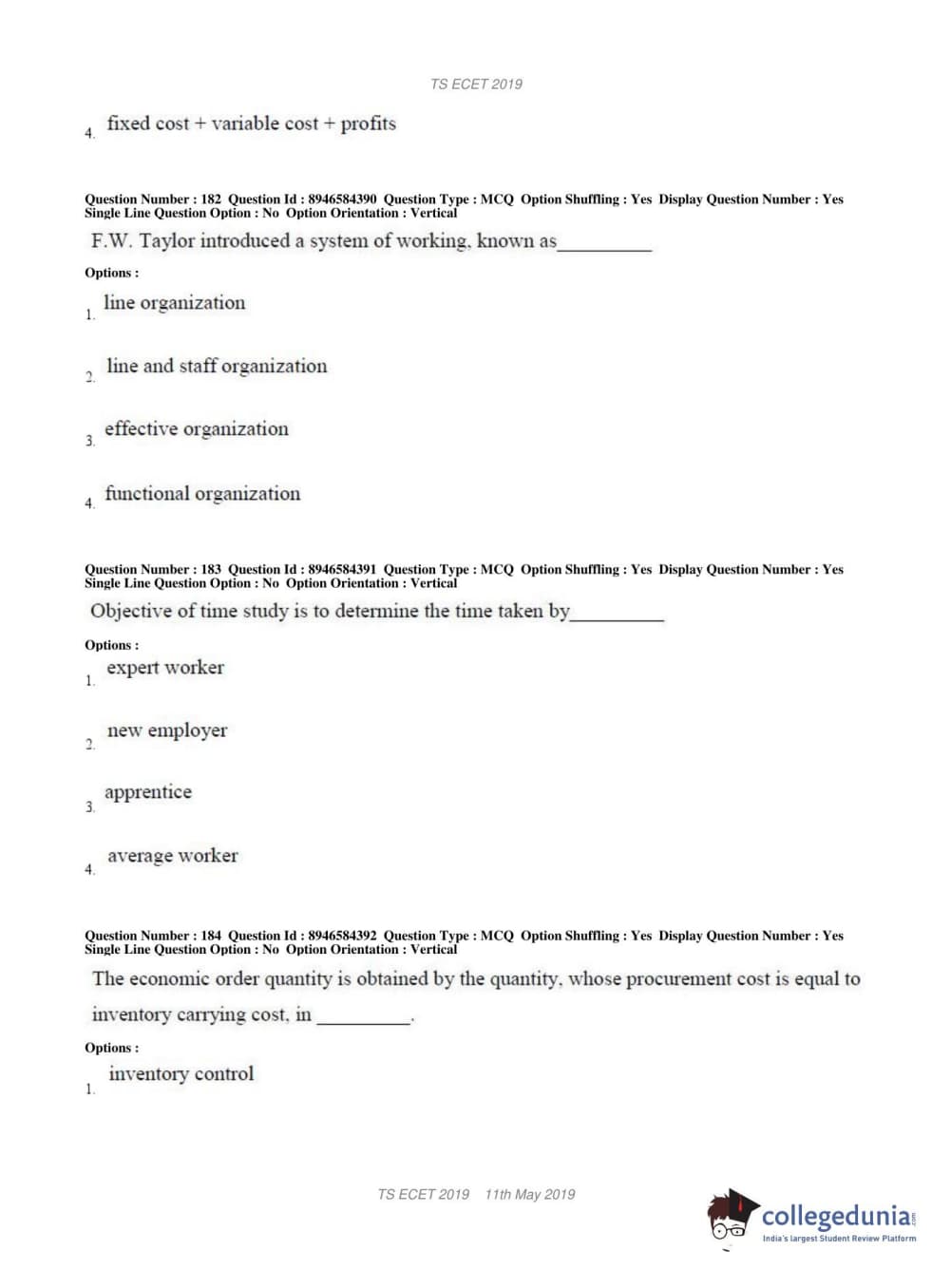 TS ECET 2019 MECHANICAL ENGINEERING Question Paper with Answer Key PDFs Shift 1