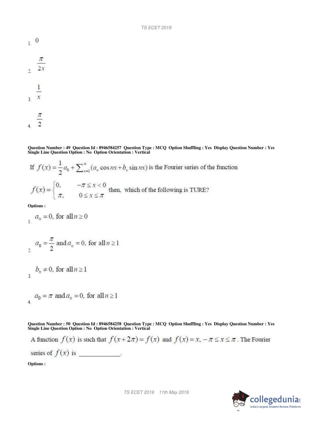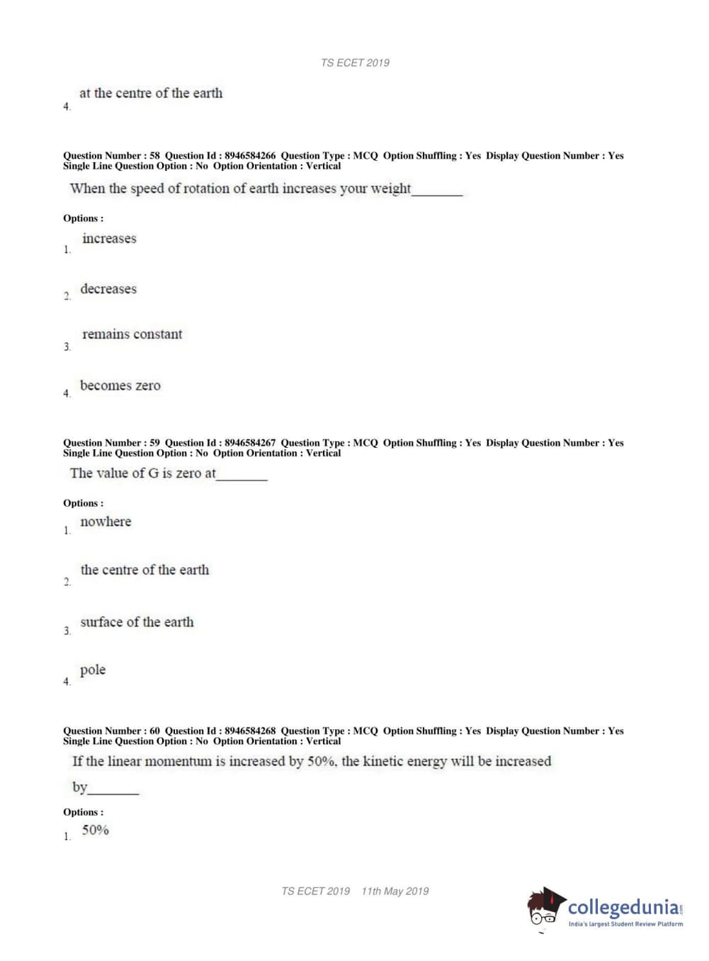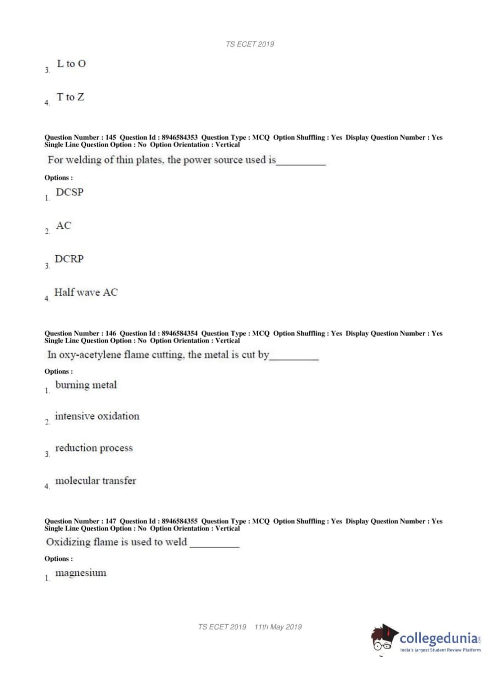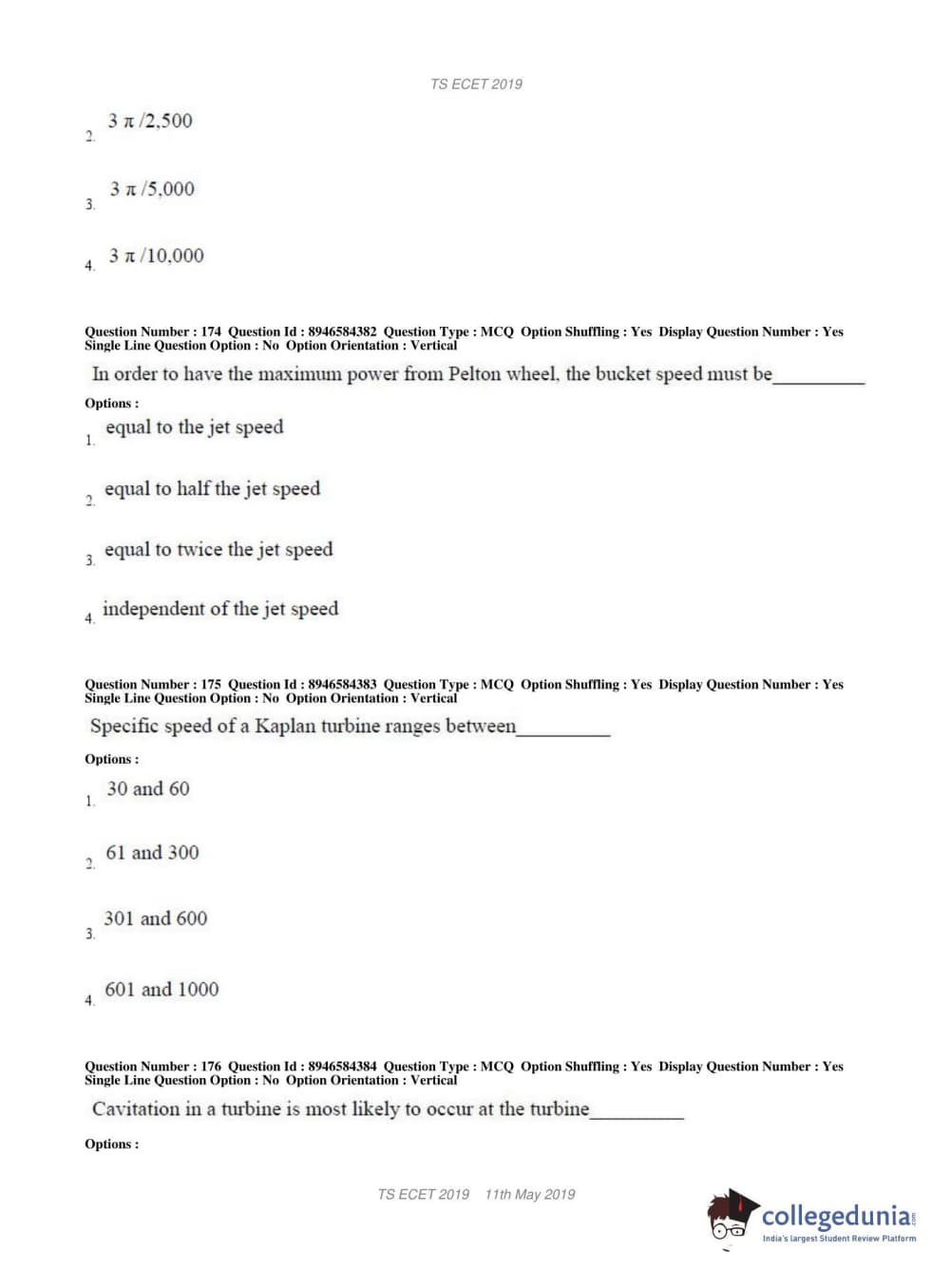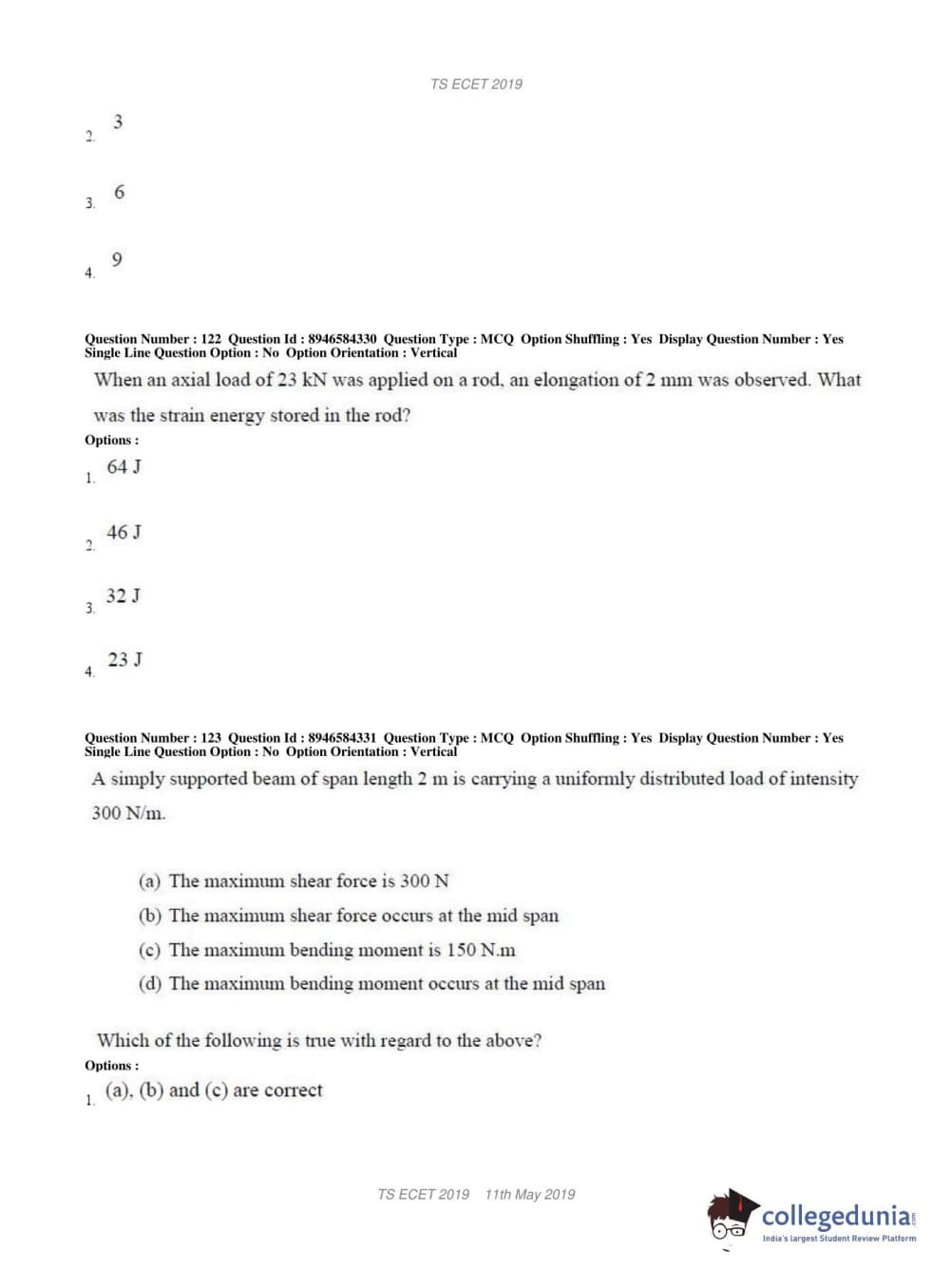 TS ECET 2019 MECHANICAL ENGINEERING Question Paper with Answer Key PDFs Shift 1