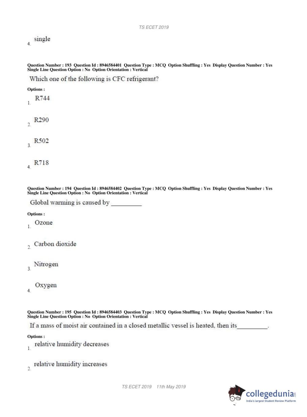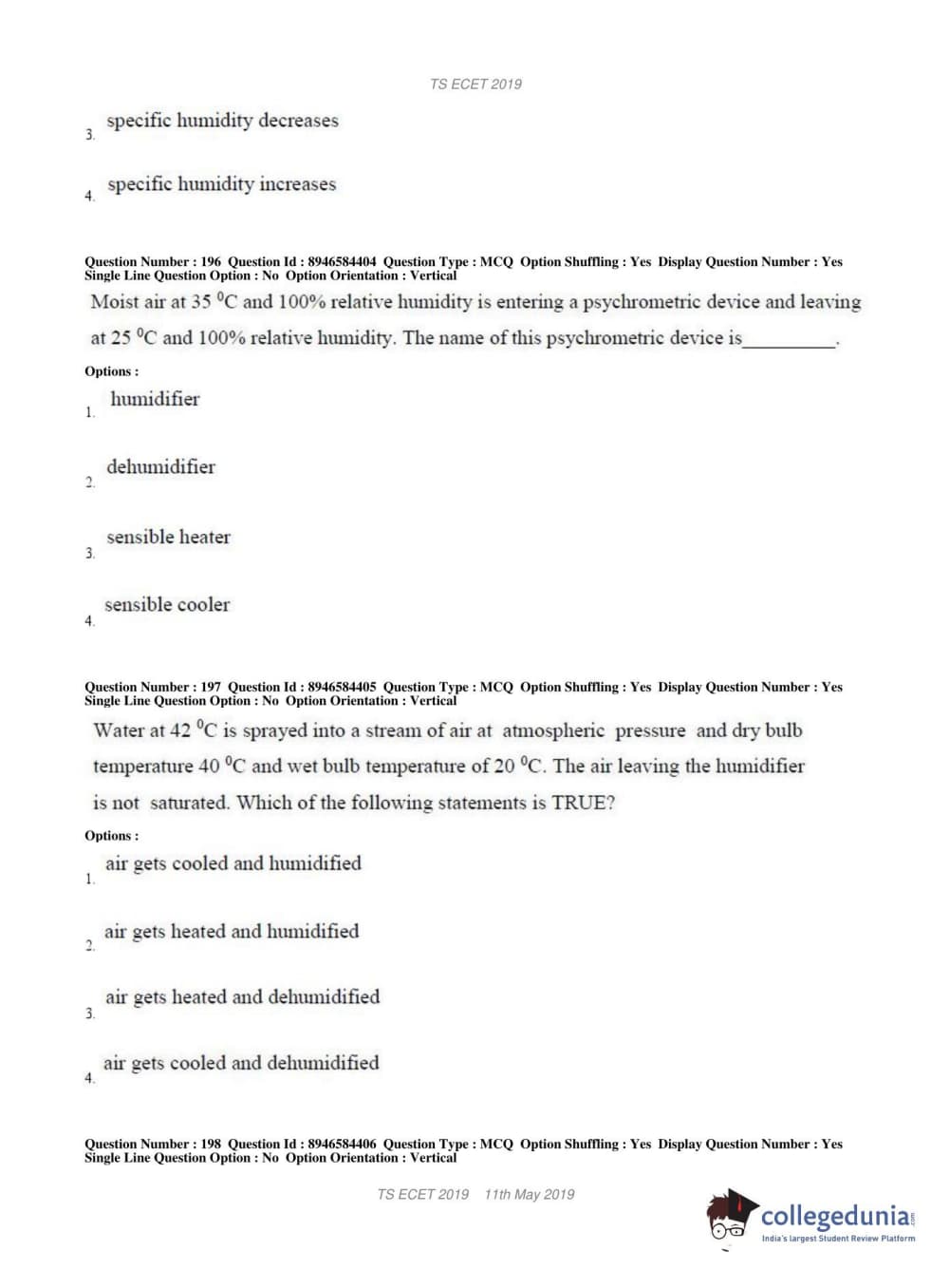 TS ECET 2019 MECHANICAL ENGINEERING Question paper with answer key pdf conducted on May 11, 2019 in Shift 1 is available for download. The exam was successfully organized by Jawaharlal Nehru Technological University Hyderabad. The question paper comprised a total of 200 questions.