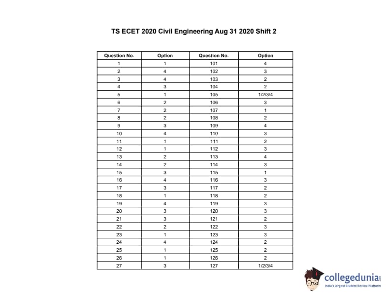 | TS ECET 2020 CIVIL ENGINEERING Question Paper PDF | TS ECET 2020 CIVIL ENGINEERING Answer Key PDF |