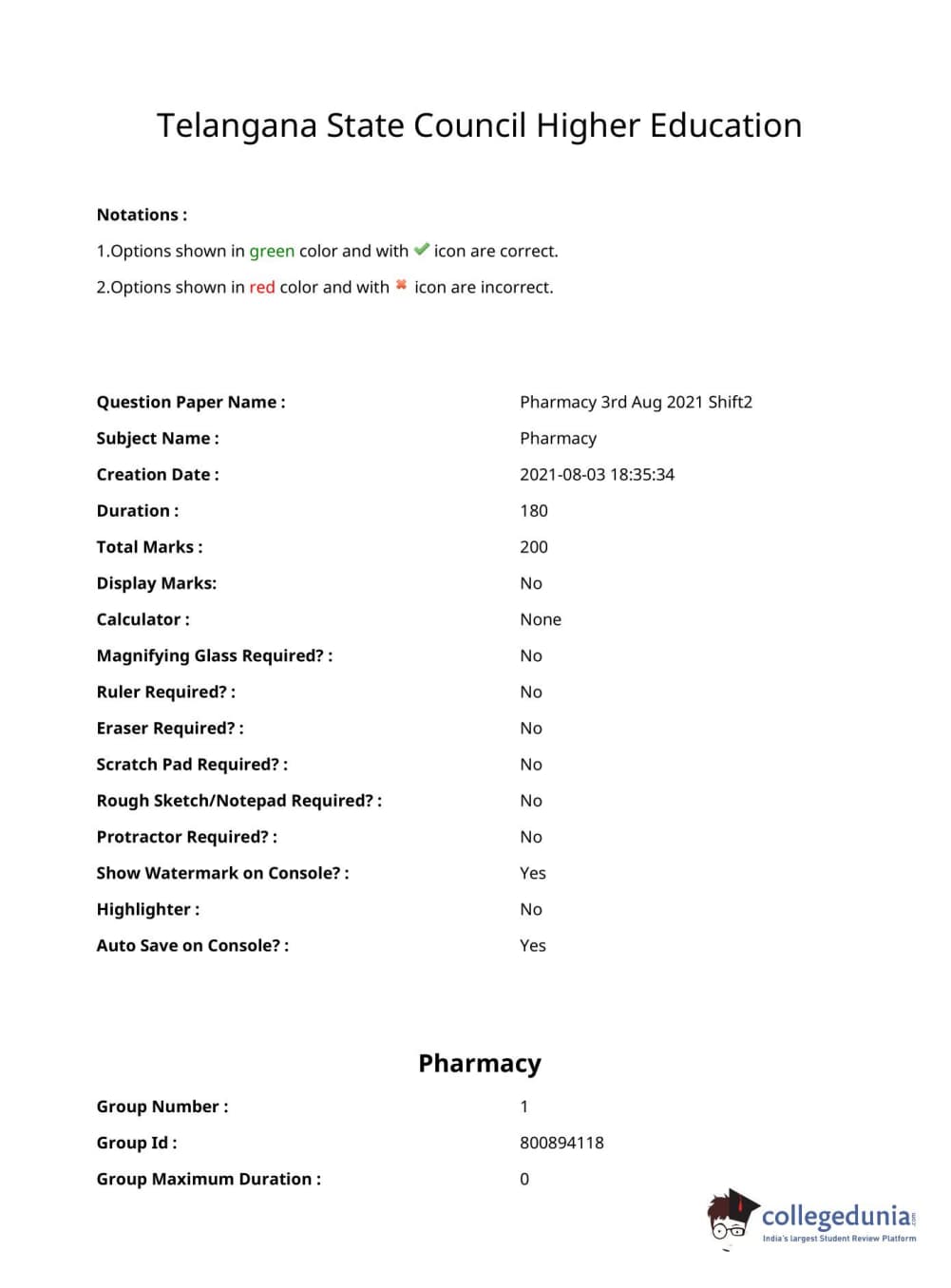TS ECET 2021 Pharmacy Question Paper with Answer Key PDFs Shift 2