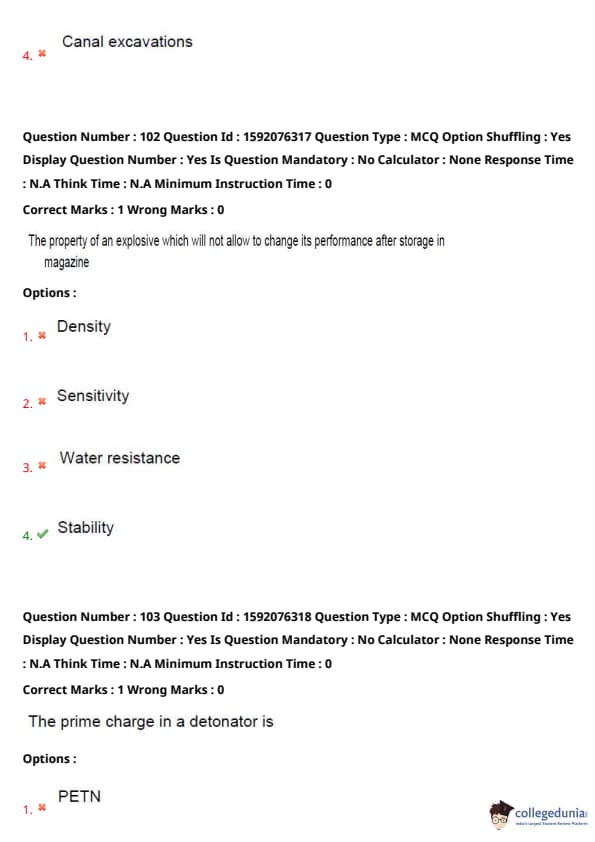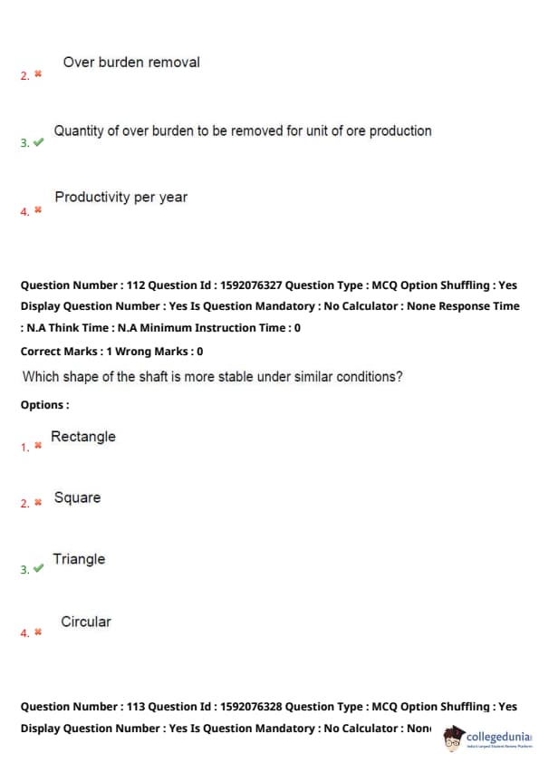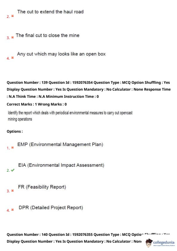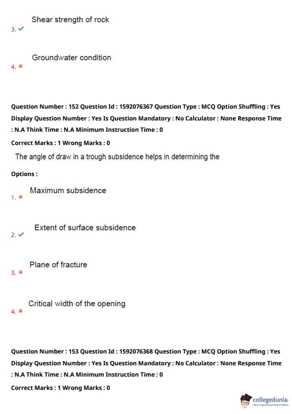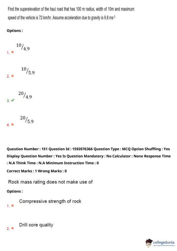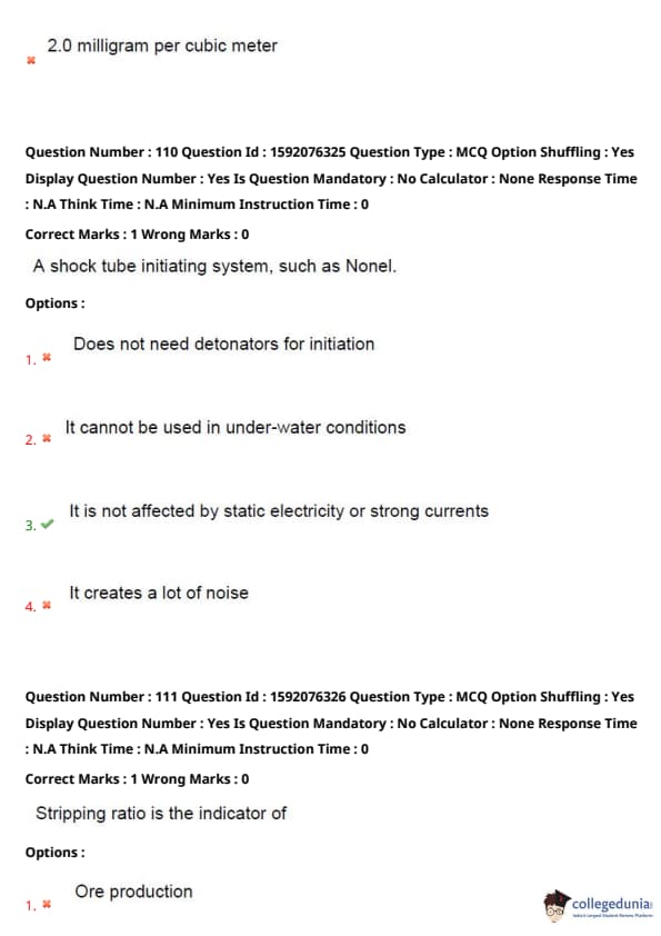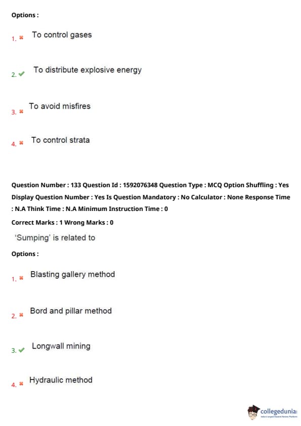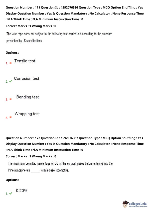 TS ECET 2023 Mining Engineering Question Paper with Answer key PDF is available here for download. TS ECET 2023 was conducted by Osmania University on behalf of TSCHE on May 20, 2023. TS ECET 2023 Mining Engineering Question Paper consisted of 200 questions carrying 1 mark for each. TS ECET 2023 Question Paper for Mining Engineering included four subjects. Mathematics section included 50 questions while Physics and Chemistry included 25 questions each and Mining Engineering topics had 100 questions.