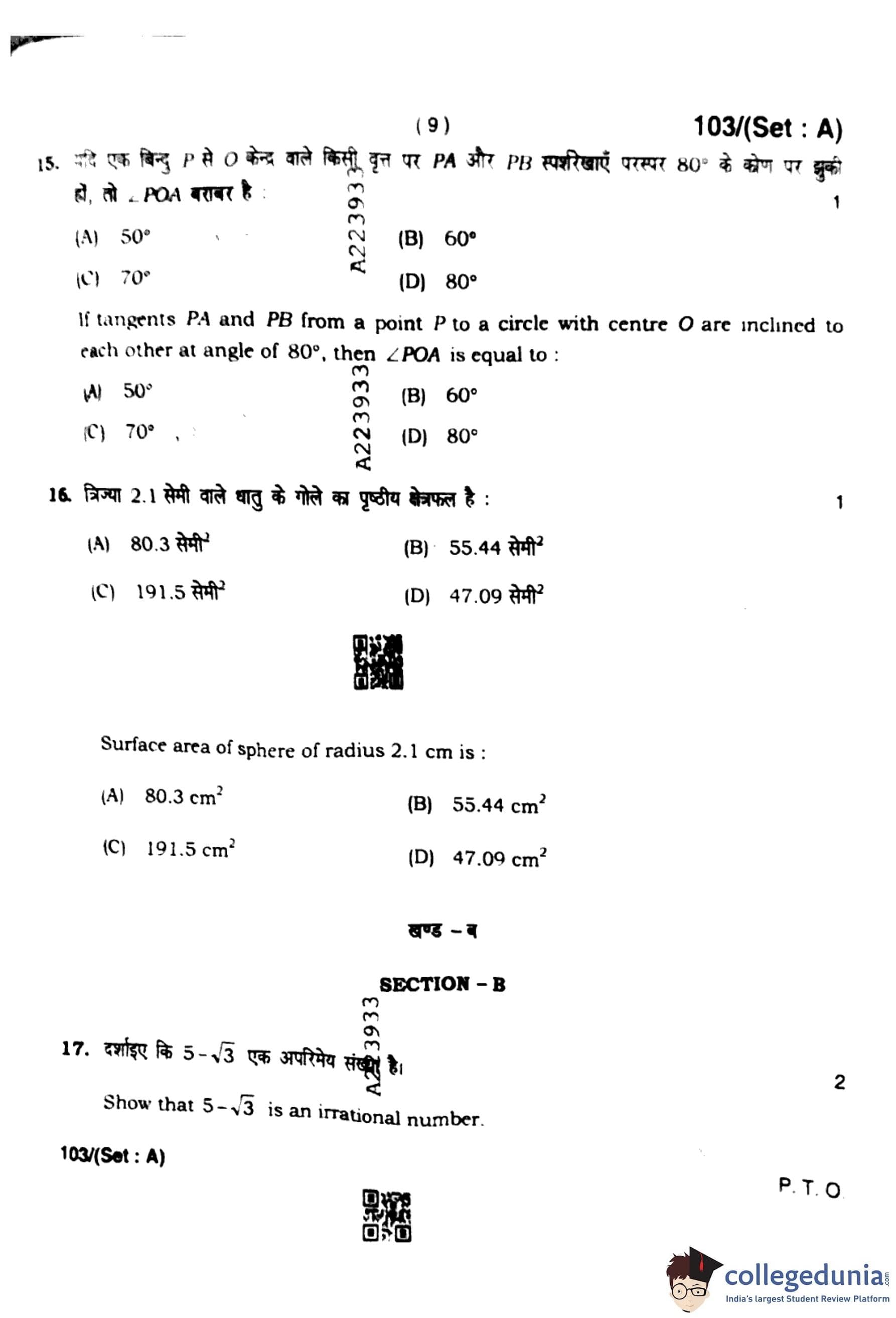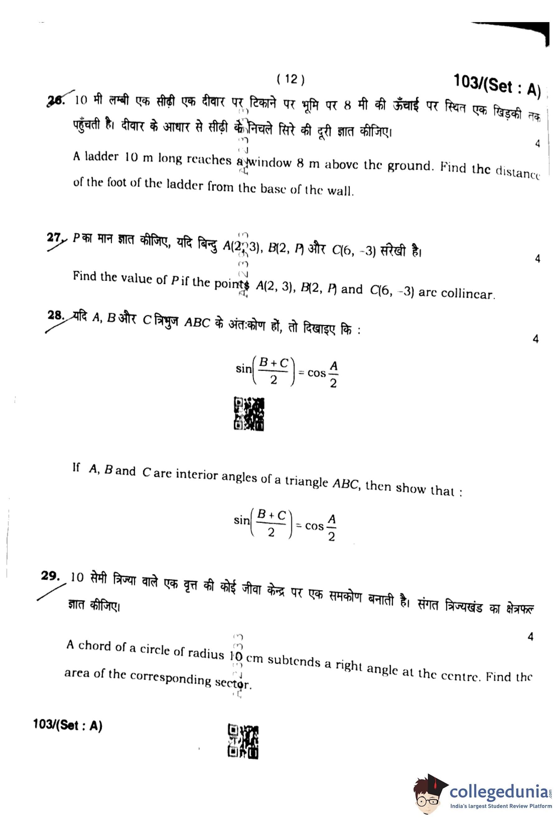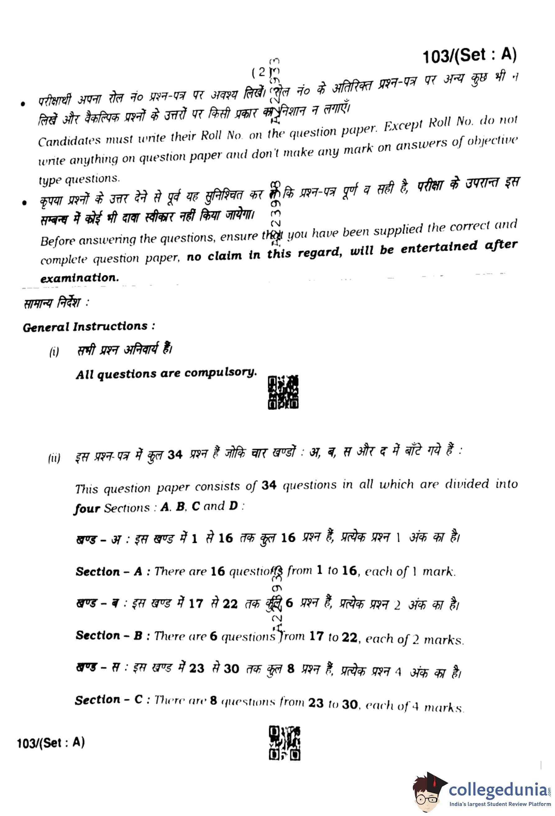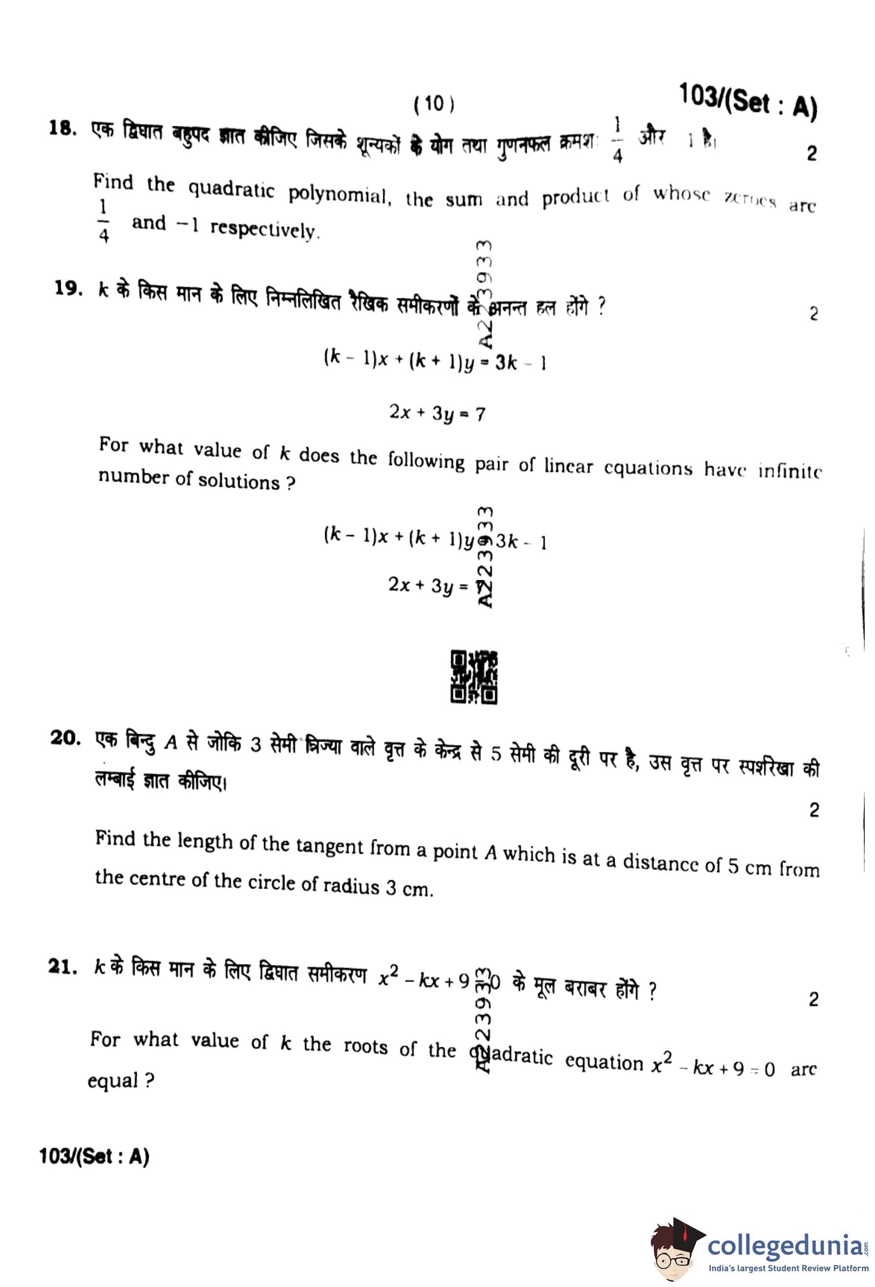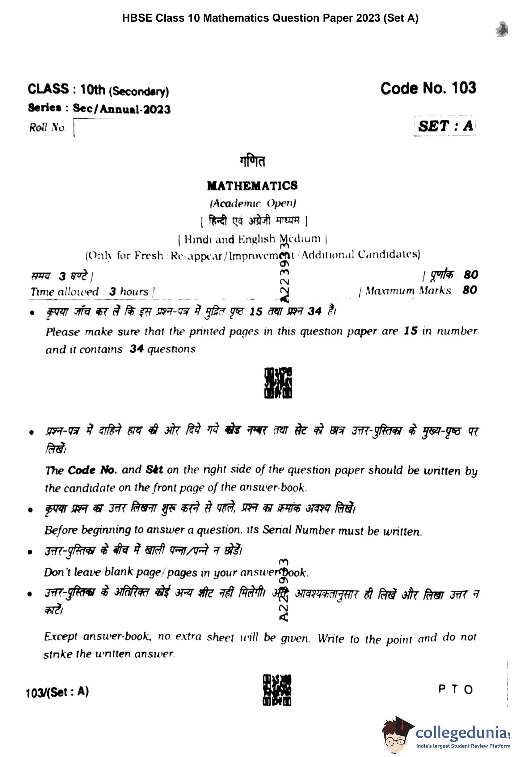 HBSE Class 10 Mathematics Set A Question Paper 2023 with Answer Key pdf is available for download here. The exam was conducted by Board of School Education Haryana (BSEH) on March 13, 2023. The question paper comprised a total of 34 questions divided among 4 sections.