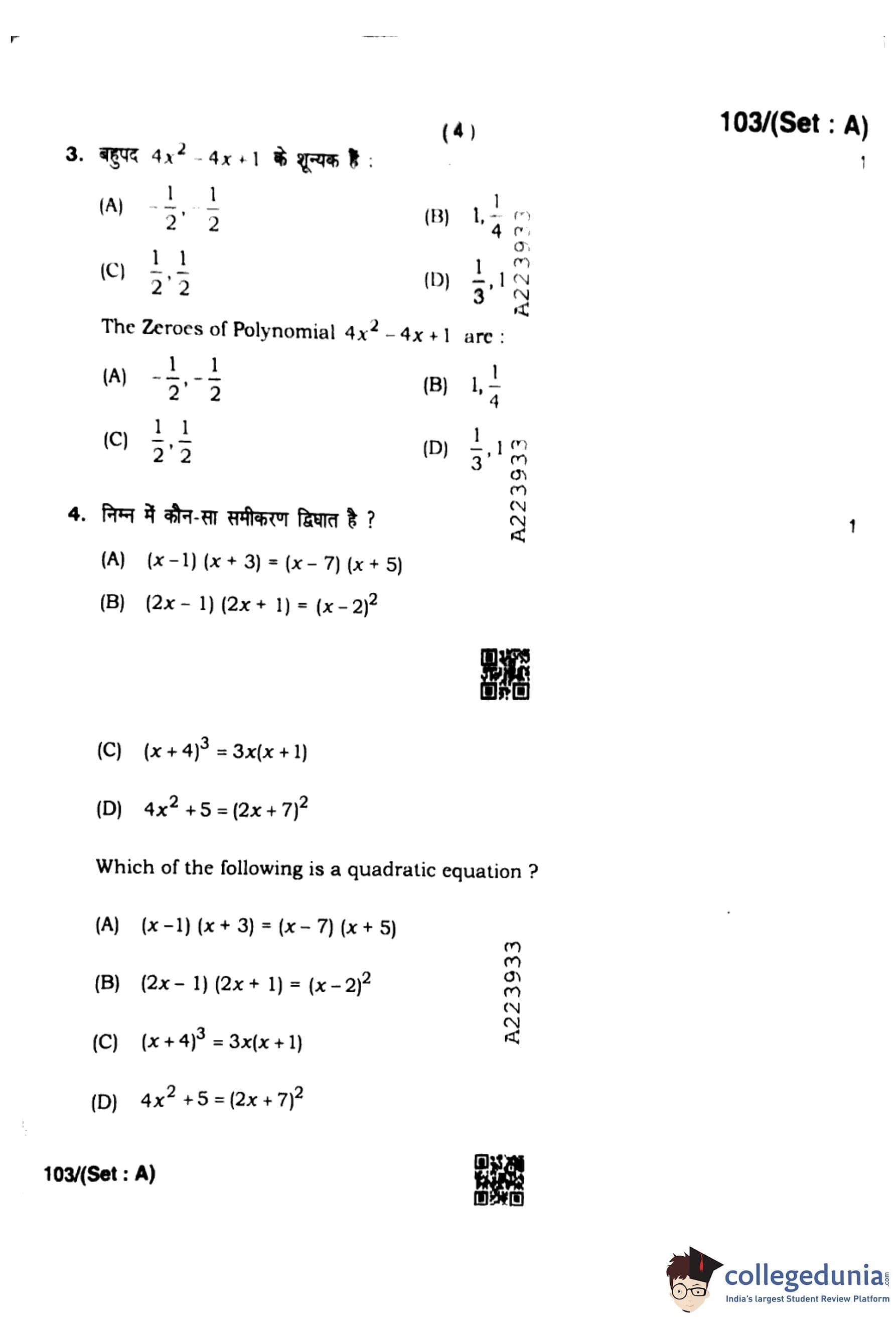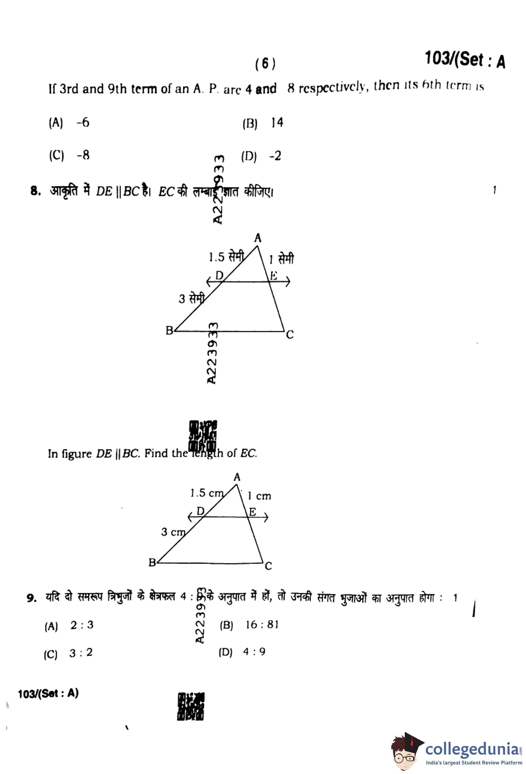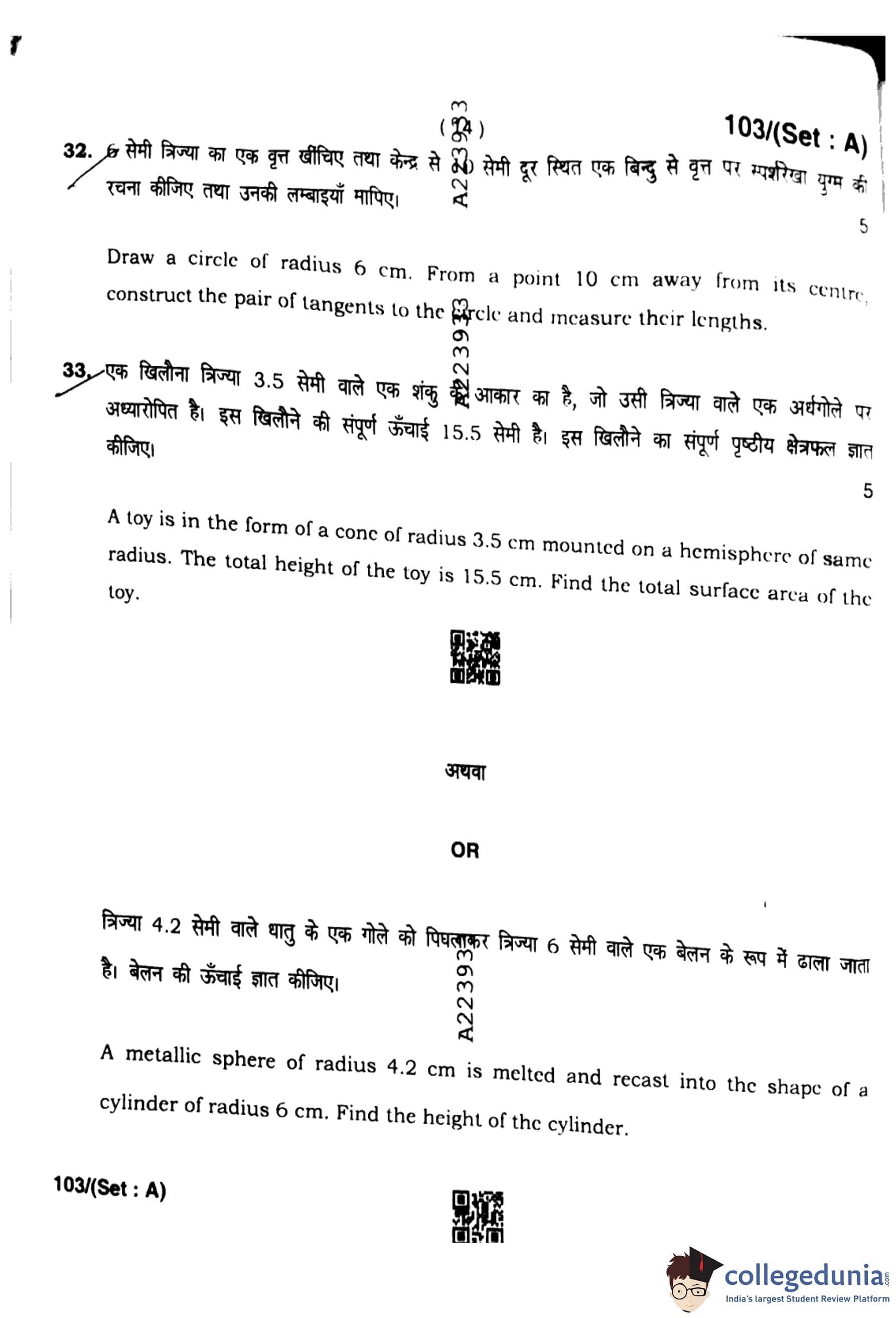 HBSE Class 10 Mathematics Set A Question Paper 2023 with Answer Key