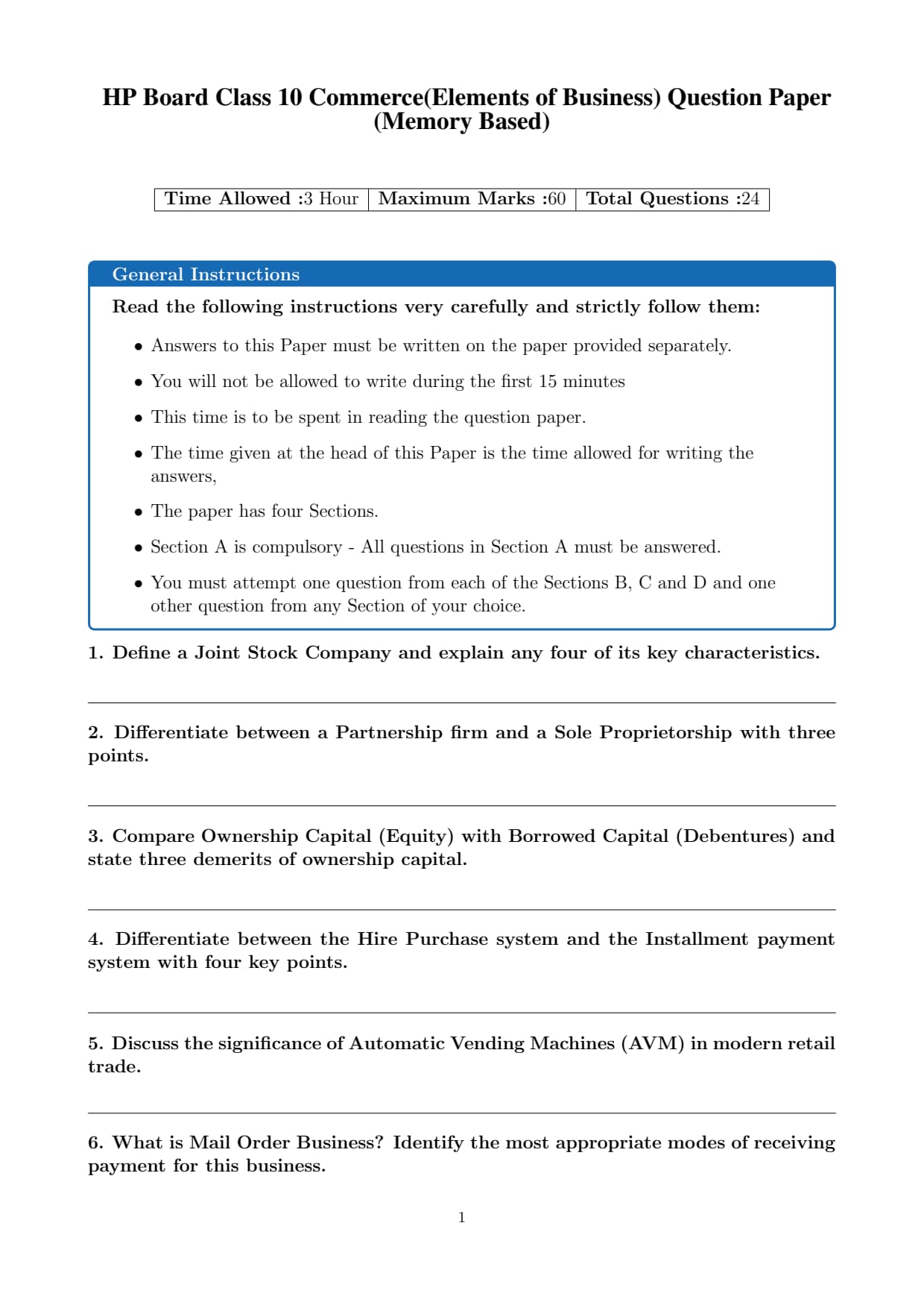 | HP Board Class 10 Commerce (Elements of Business) Question Paper 2026 | Download PDF | Check Solution |