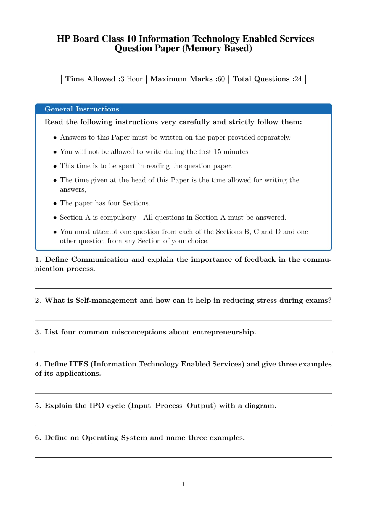 | HP Board Class 10 Information Technology Enabled Services Question Paper 2026 | Download PDF | Check Solution |