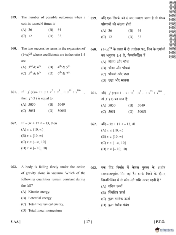 UPCET 2019 PAPER 8 Question Paper with Answer Key PDFs