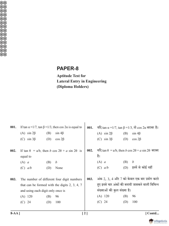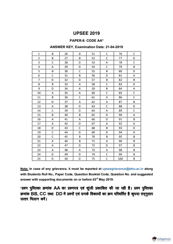 UPCET 2019 PAPER 8 Question paper with answer key pdf conducted on April 21, 2019 for Code AA is available for download. The exam was successfully organized by Dr. APJ Abdul Kalam Technical University, Uttar Pradesh (AKTU). The question paper comprised a total of 100 questions.