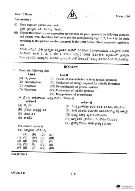 | AP EAPCET 2013 Agriculture and Medical Question Paper PDF | AP EAPCET 2013 Agriculture and Medical Answer Key PDF |