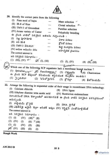 AP EAPCET 2013 Agriculture and Medical Question paper with answer key pdf conducted on May 10, 2013 is available for download. The exam was successfully organized by Jawaharlal Nehru Technological University, Kakinada (JNTUK). The question paper comprised a total of 160 questions divided among 4 sections.