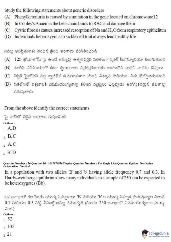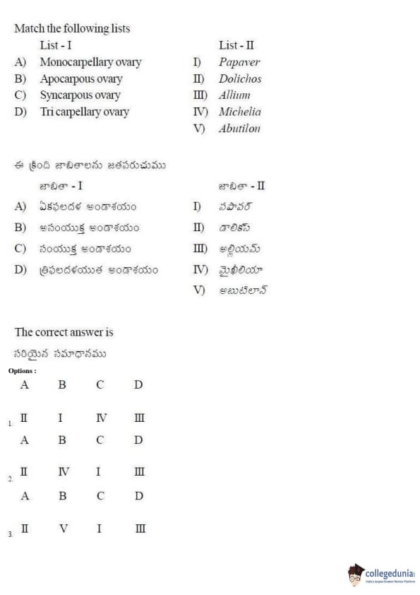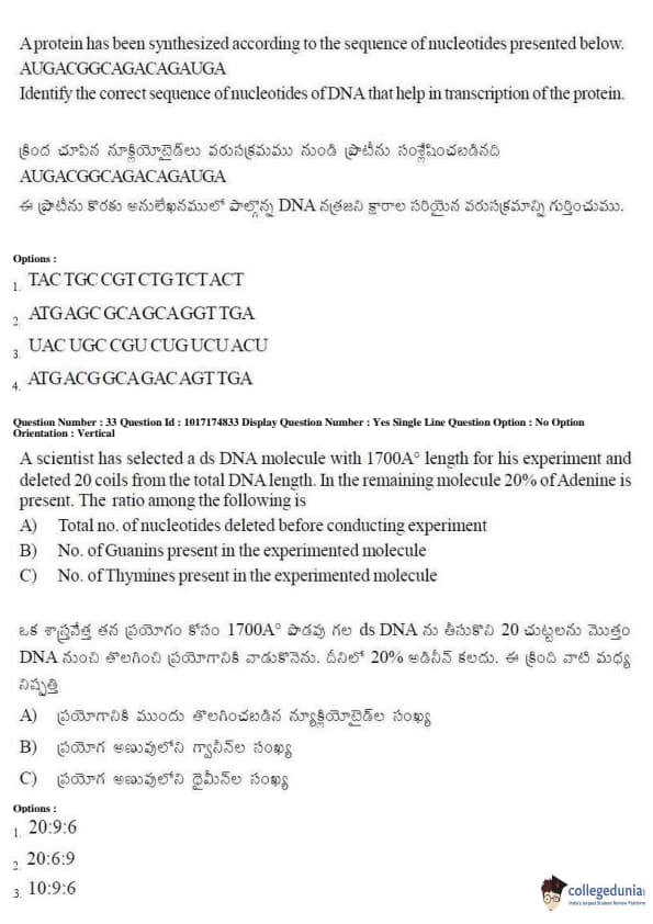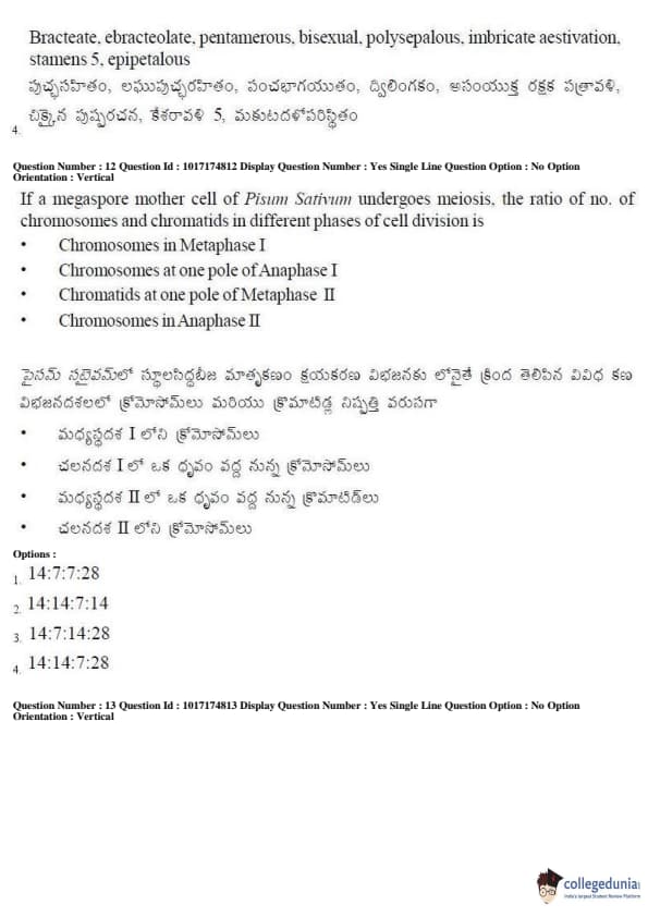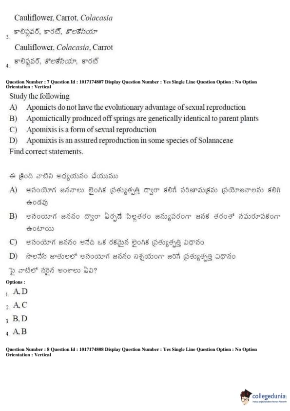 AP EAPCET 2017 Agriculture and Medical Question Paper with Answer Key PDFs Forenoon Session