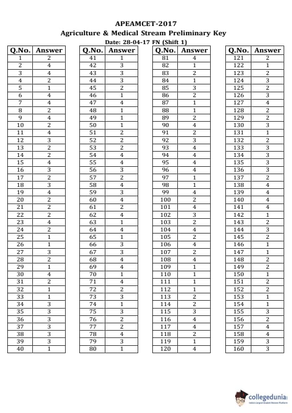 | AP EAPCET 2017 Agriculture and Medical Question Paper PDF | AP EAPCET 2017 Agriculture and Medical Answer Key PDF |
