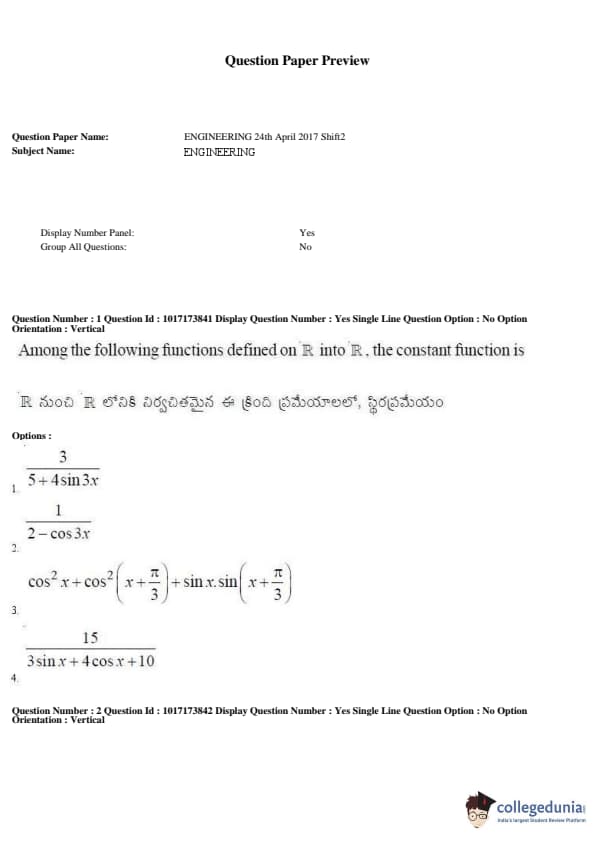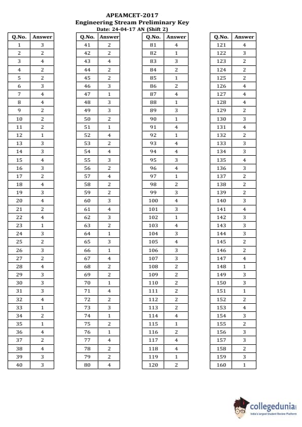 | AP EAPCET 2017 Engineering Question Paper PDF | AP EAPCET 2017 Engineering Answer Key PDF |