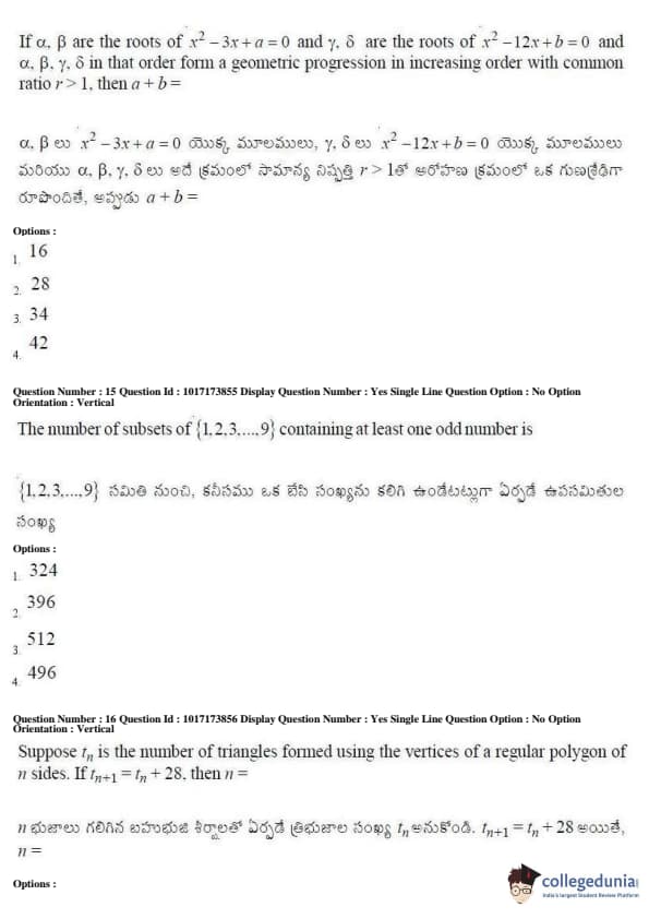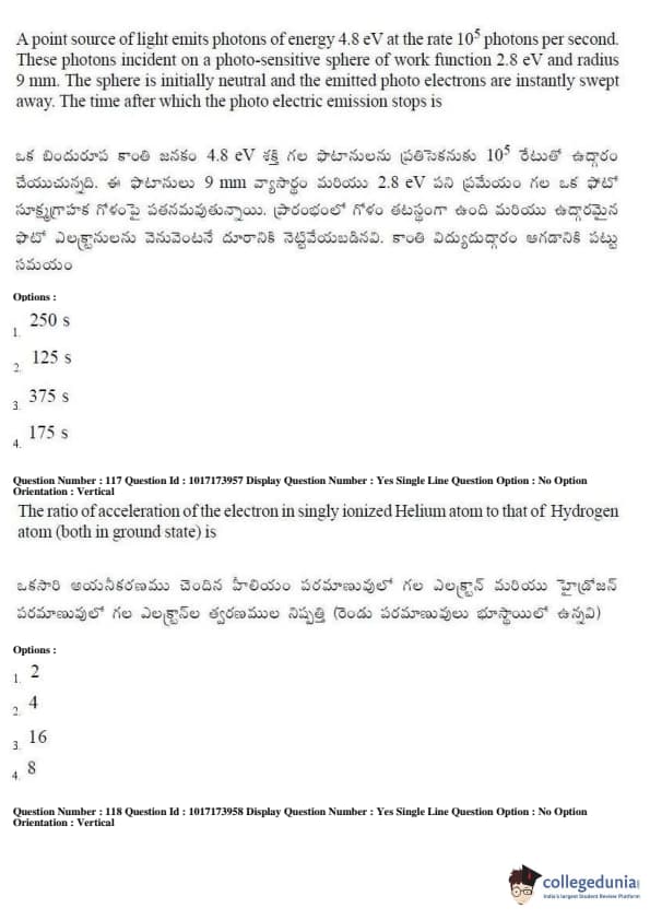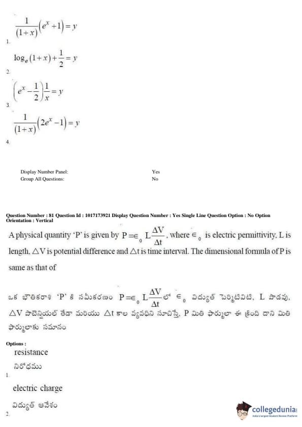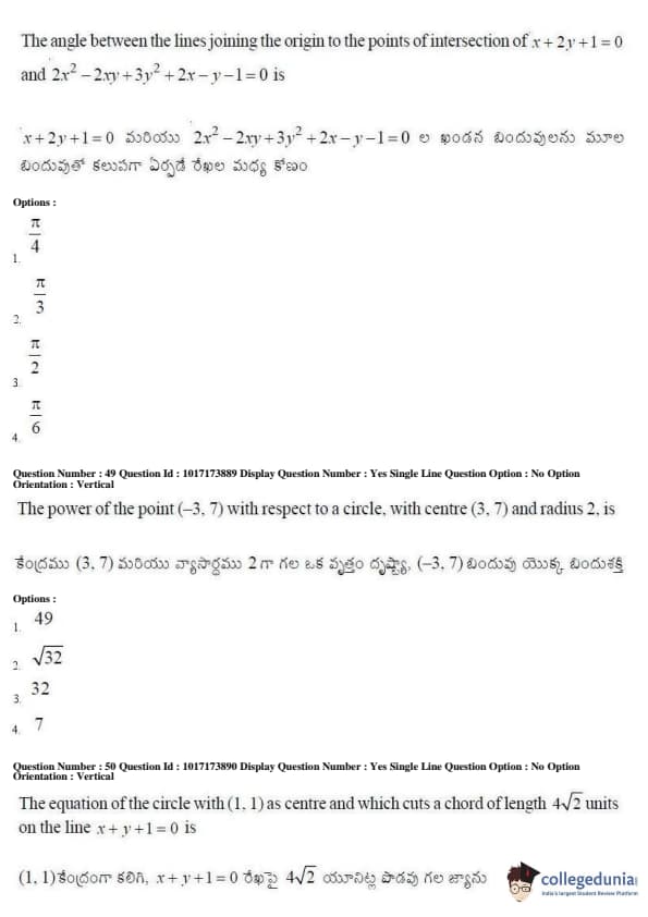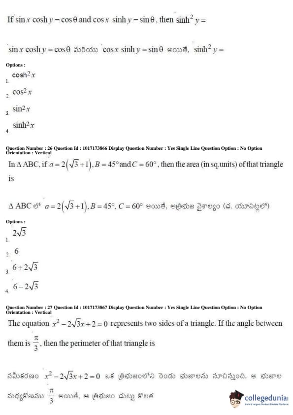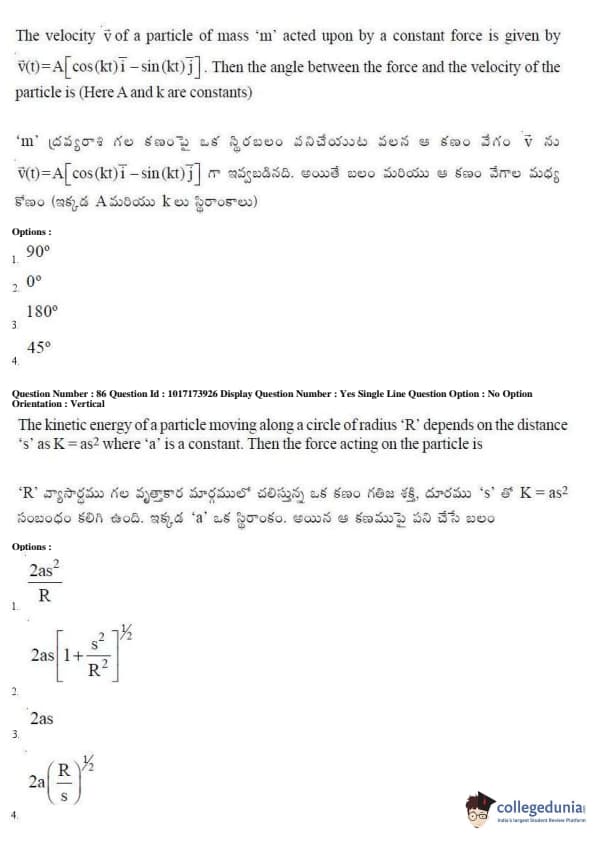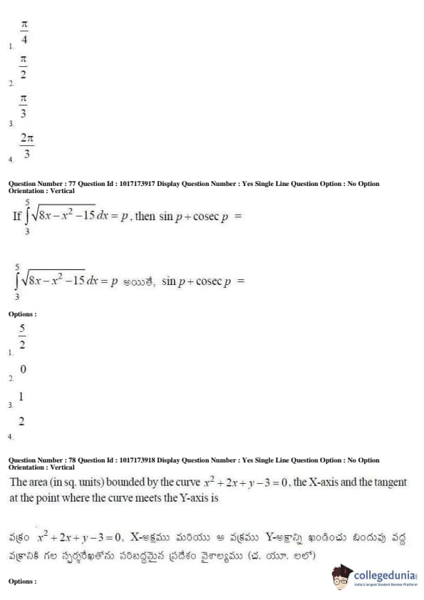 AP EAPCET 2017 Engineering Question Paper with Answer Key PDFs Afternoon Session