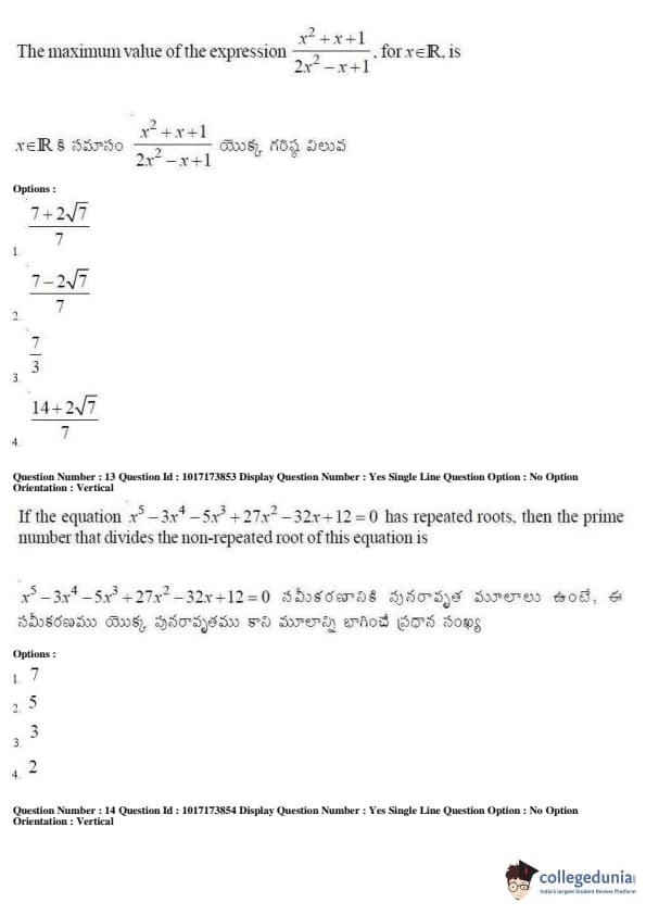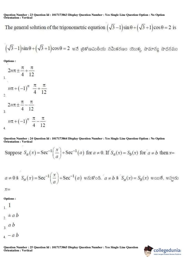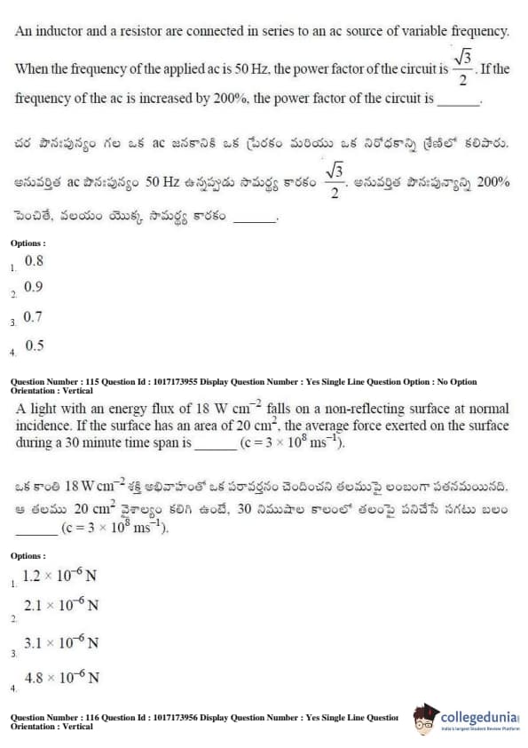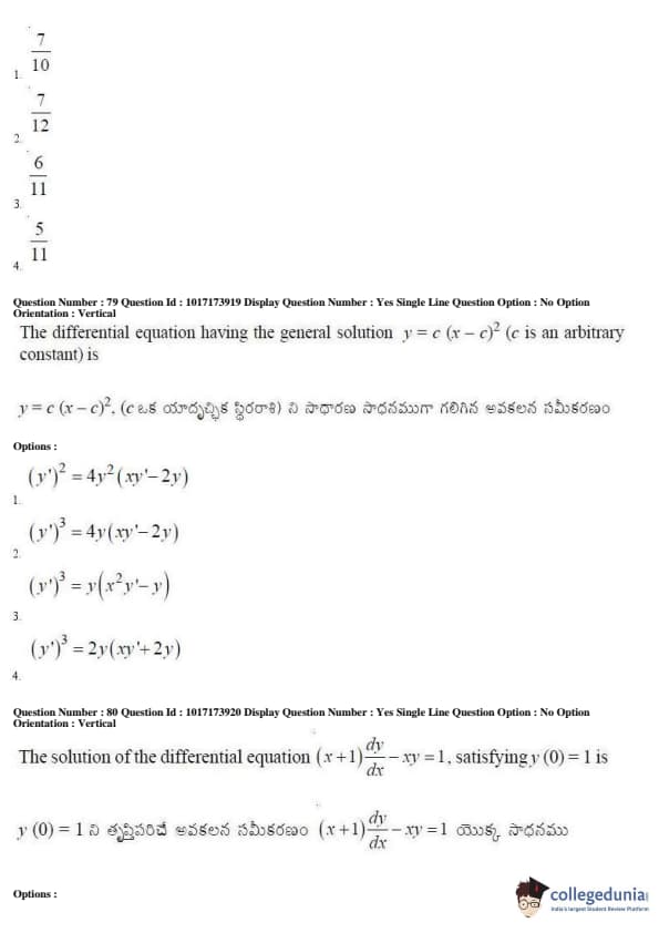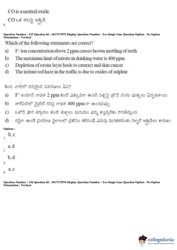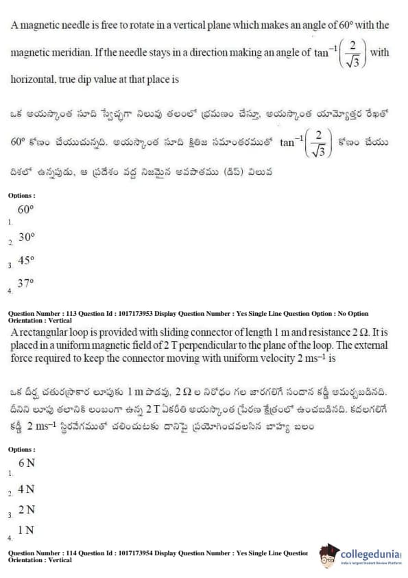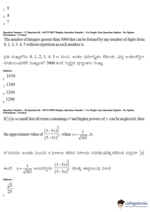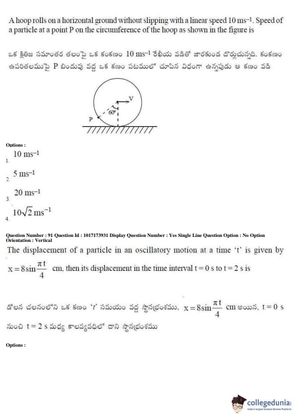 AP EAPCET 2017 Engineering Question Paper with Answer Key PDFs Afternoon Session