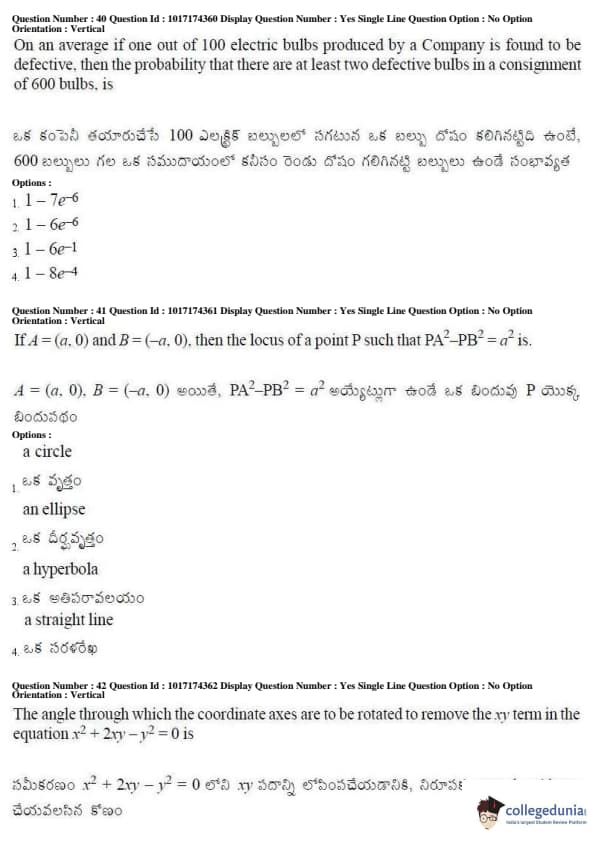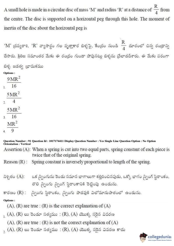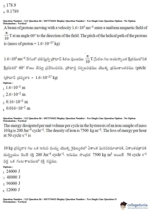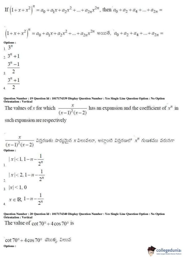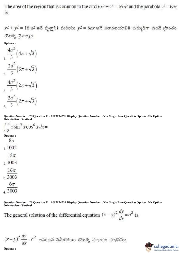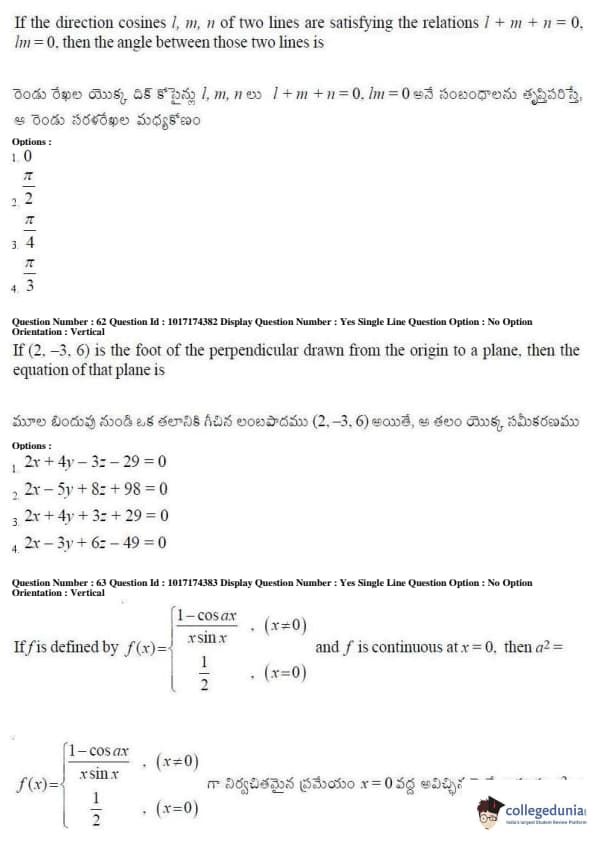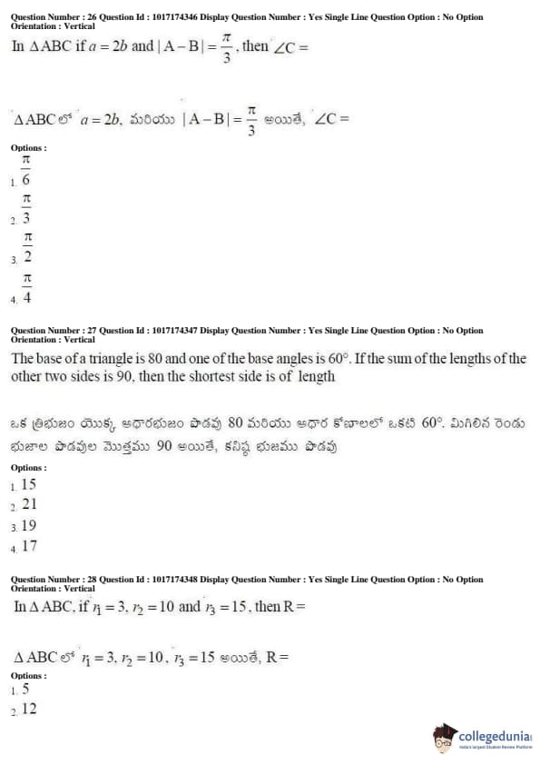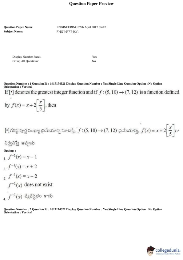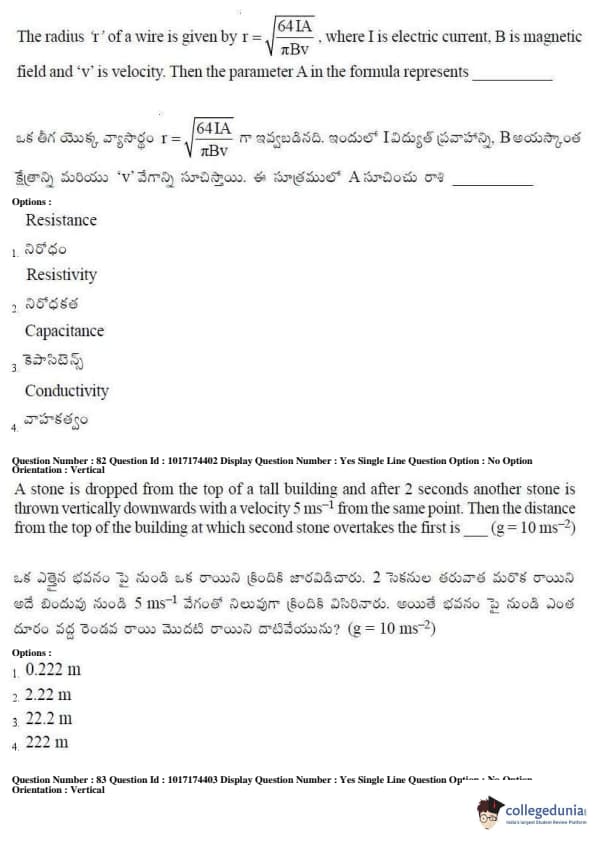 AP EAPCET 2017 Engineering Question Paper with Answer Key PDFs Afternoon Session