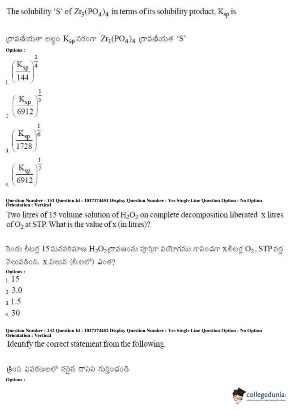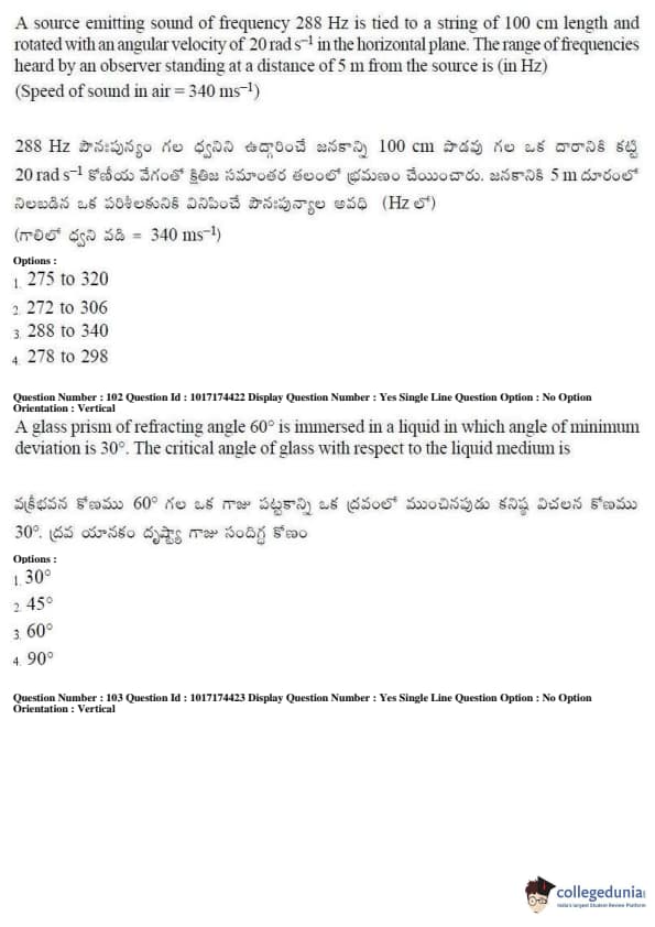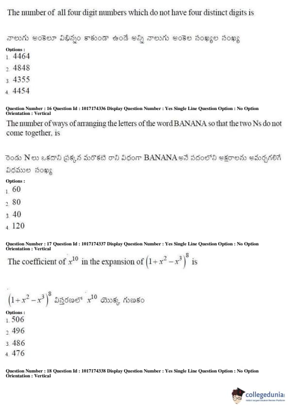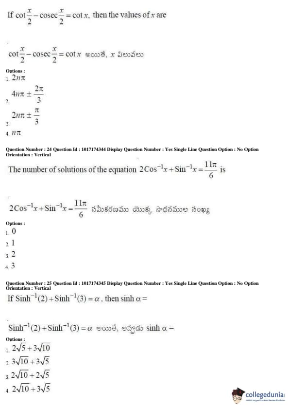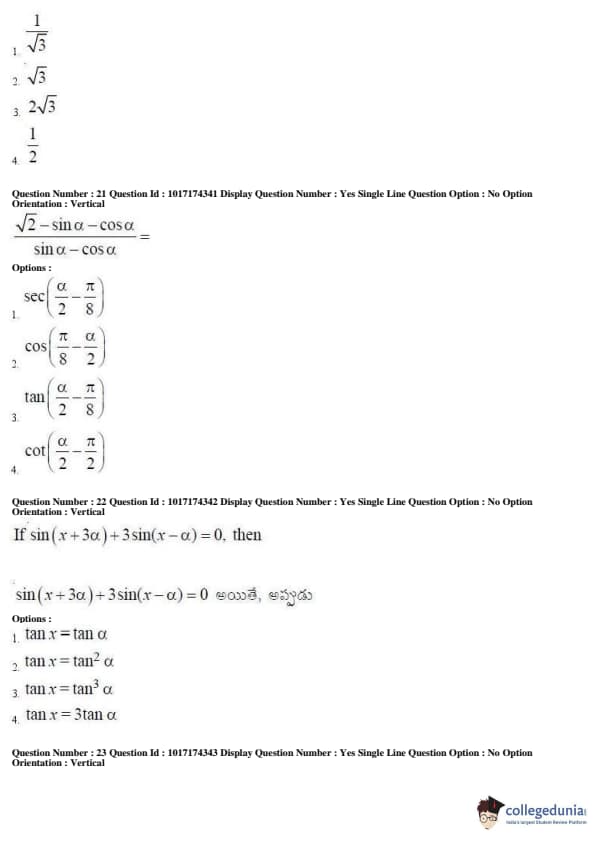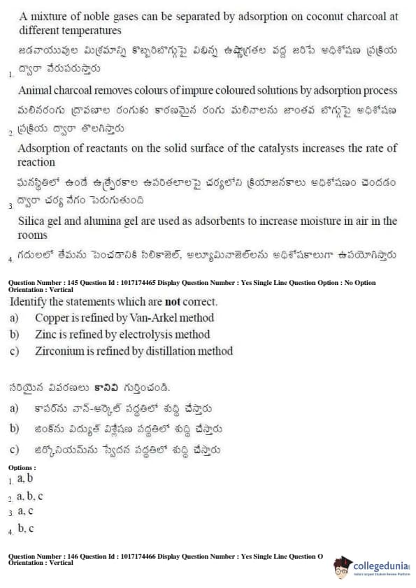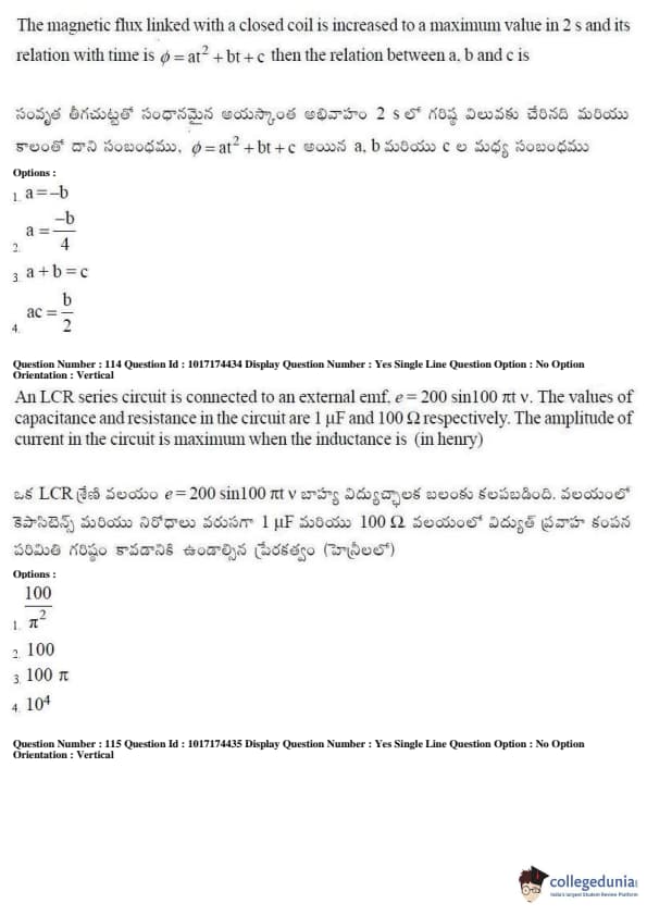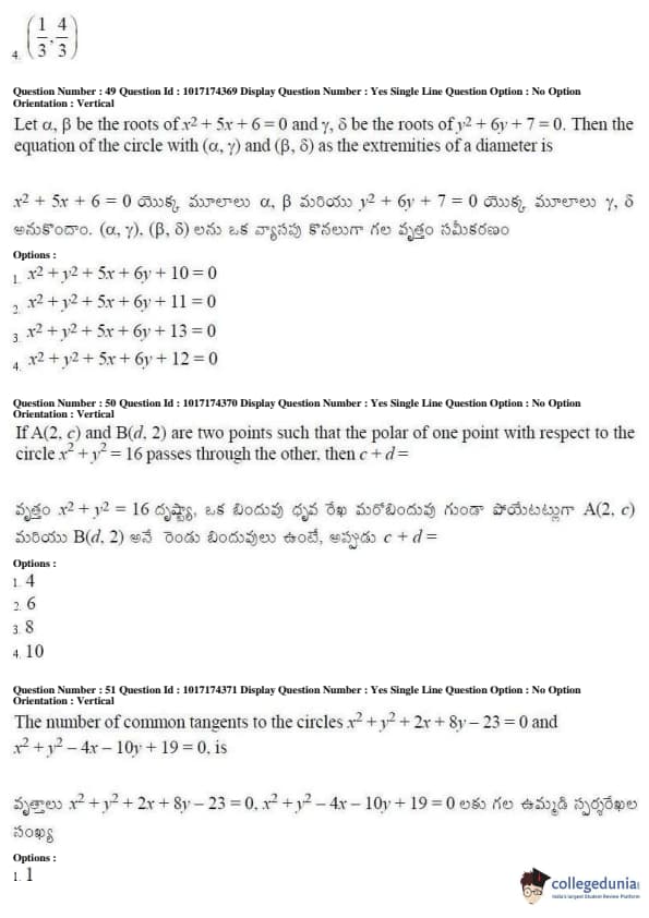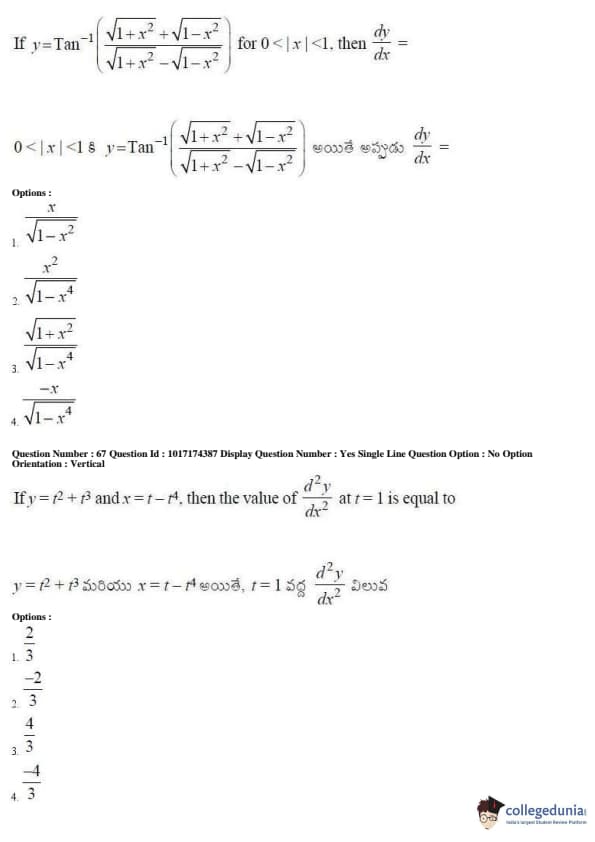 AP EAPCET 2017 Engineering Question Paper with Answer Key PDFs Afternoon Session