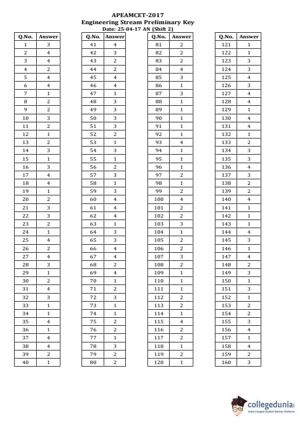 | AP EAPCET 2017 Engineering Question Paper PDF | AP EAPCET 2017 Engineering Answer Key PDF |