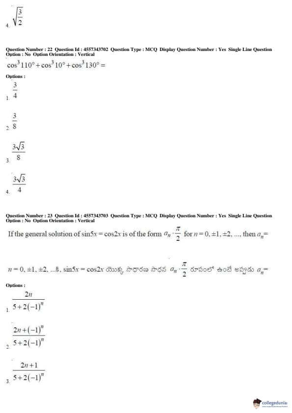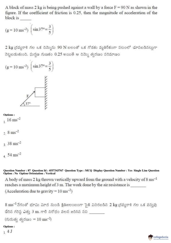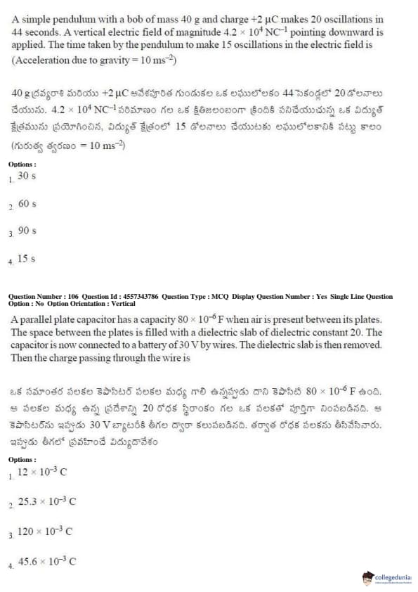 AP EAPCET 2018 Engineering Question Paper with Answer Key PDFs Forenoon Session